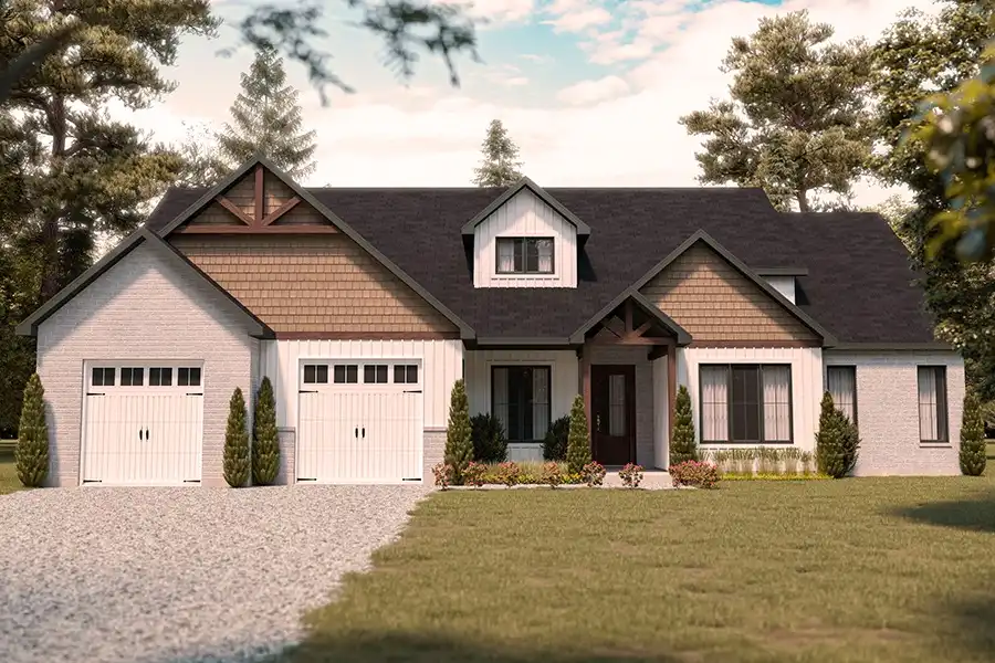 This three-bedroom, 2.5 bath craftsman style home has everything a family needs. The highlight is the large open-concept living room, dining room and kitchen with magnificent vaulted, beamed ceiling. A primary bedroom features an ensuite bath with dual vanities, and two secondary bedrooms share a large bath with separate shower and garden tub. An office privately located off the main living area can also serve as an extra bedroom. A mudroom accessed from the garage is the perfect location to keep your home organized.
