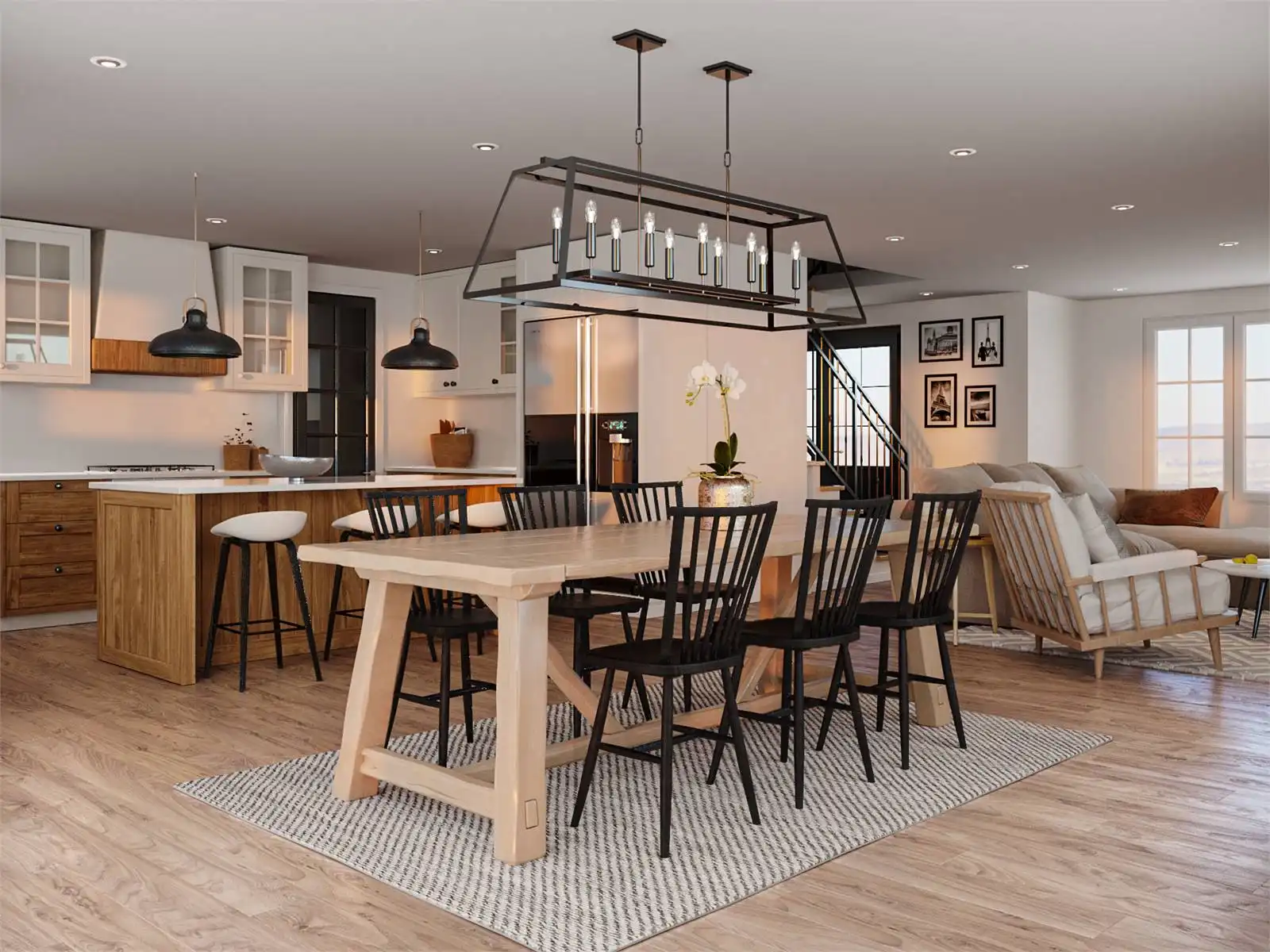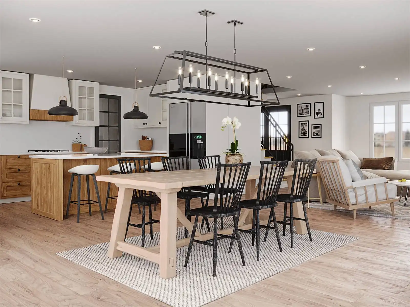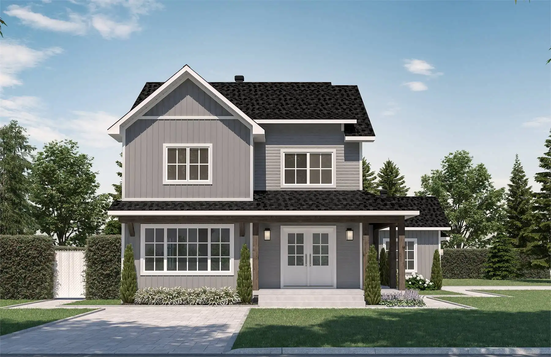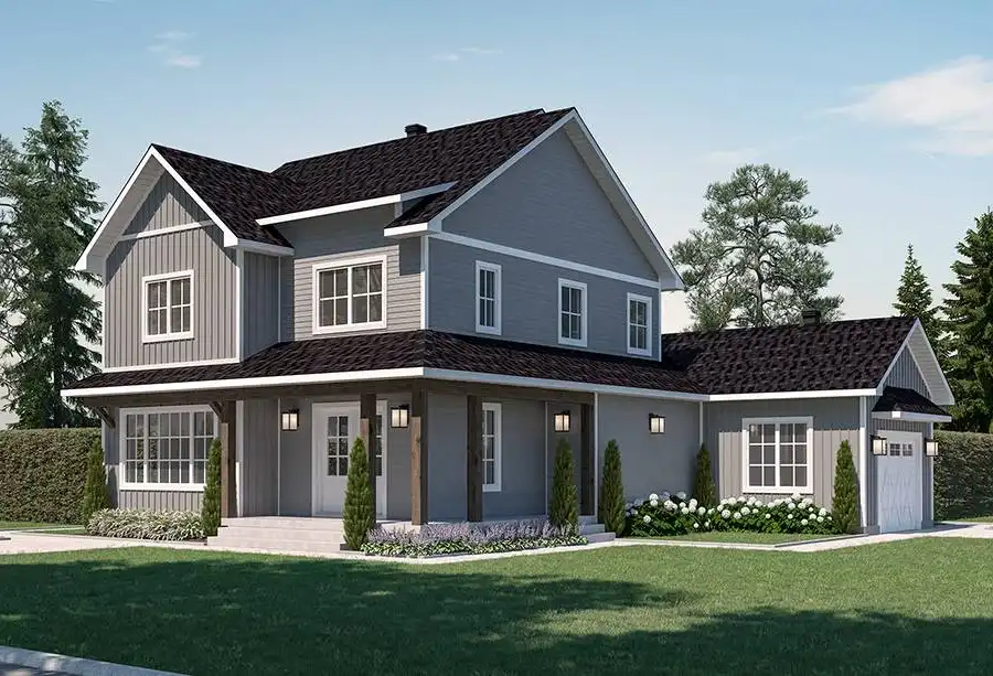 Experience this charming 3-bedroom, 1,914 square foot Farmhouse that seamlessly blends classic lines with modern updates. Begin your journey as you open the double doors, revealing a welcoming interior with a powder bath and a conveniently located coat closet. To the right, the living room bathes in natural light, effortlessly flowing into the open-concept eat-in kitchen. Anchored by a spacious island, the kitchen combines traditional charm with modern functionality, featuring a walk-in pantry and easy access to the garage for stress-free grocery unloading. Through sliding doors off the dining room, a generous terrace awaits, encouraging you to enjoy outdoor dining or leisurely lounging. Ascend to the second level, where four bedrooms and a strategically placed laundry room provide comfort and convenience. The deluxe master bedroom takes center stage, accompanied by an ensuite featuring a linen closet for added practicality. This residence skillfully marries traditional charm with contemporary updates, fashioning a welcoming space for modern family living. From the open-concept main level to the considerate touches like the mudroom and second-level laundry, every facet of this home is crafted to meet the needs and comforts of today's lifestyle.