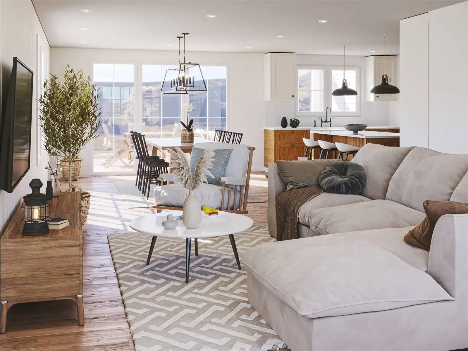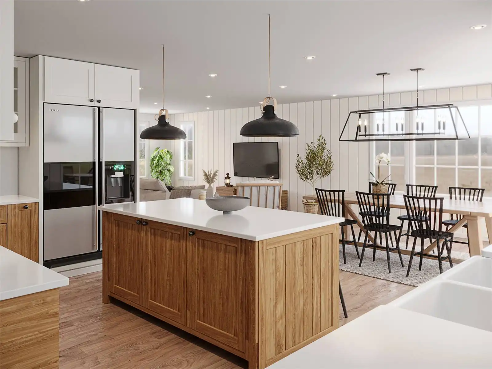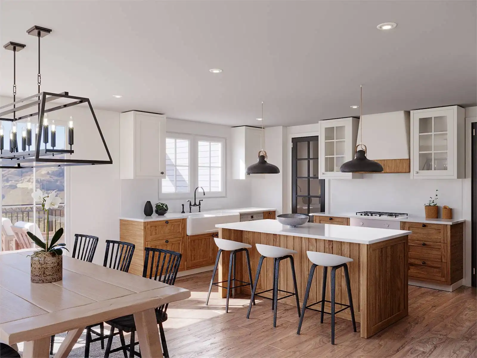 Experience this charming 3-bedroom, 1,914 square foot Farmhouse that seamlessly blends classic lines with modern updates. Begin your journey as you open the double doors, revealing a welcoming interior with a powder bath and a conveniently located coat closet. To the right, the living room bathes in natural light, effortlessly flowing into the open-concept eat-in kitchen. Anchored by a spacious island, the kitchen combines traditional charm with modern functionality, featuring a walk-in pantry and easy access to the garage for stress-free grocery unloading. Through sliding doors off the dining room, a generous terrace awaits, encouraging you to enjoy outdoor dining or leisurely lounging. Ascend to the second level, where four bedrooms and a strategically placed laundry room provide comfort and convenience. The deluxe master bedroom takes center stage, accompanied by an ensuite featuring a linen closet for added practicality. This residence skillfully marries traditional charm with contemporary updates, fashioning a welcoming space for modern family living. From the open-concept main level to the considerate touches like the mudroom and second-level laundry, every facet of this home is crafted to meet the needs and comforts of today's lifestyle.