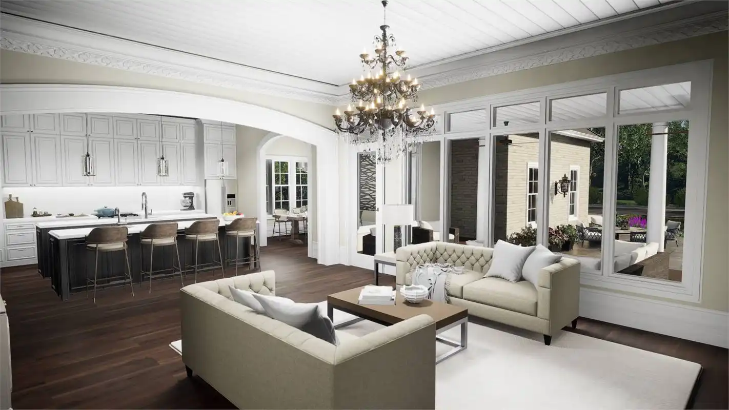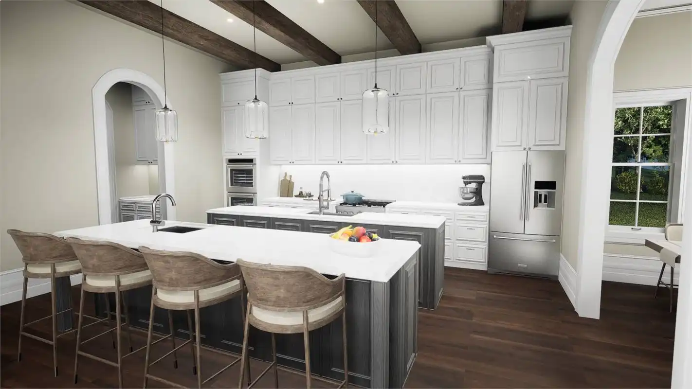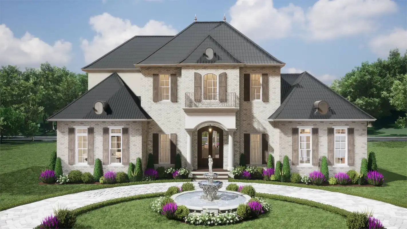 House Plan 6635 is an amazing luxury home with formal features in addition to modern amenities that today's families demand. First, check out that gorgeous European curb appeal with symmetry and hipped rooflines. The two-car garage is hidden away in back to preserve this view from the street. Inside, you'll find common areas laid out in a unique T shape; the spacious family room is open to the double-island kitchen--perfect for hosting gatherings--and the formal dining room and sunny breakfast nook sit on opposite sides of the kitchen the other way. House Plan 6635 has four split bedrooms and places the fully loaded master suite on the main level. The ensuite bath is a sight to behold with ample space, a walk-through shower, and the ability to add skylights. The three bedrooms upstairs include another private bedroom suite and a pair of Jack-and-Jill bedrooms. But that's still not all! You'll also find a common loft, den, and exercise room. This home boasts all sorts of living and hosting possibilities in its 3,760 square feet! View the original Plan 7526.