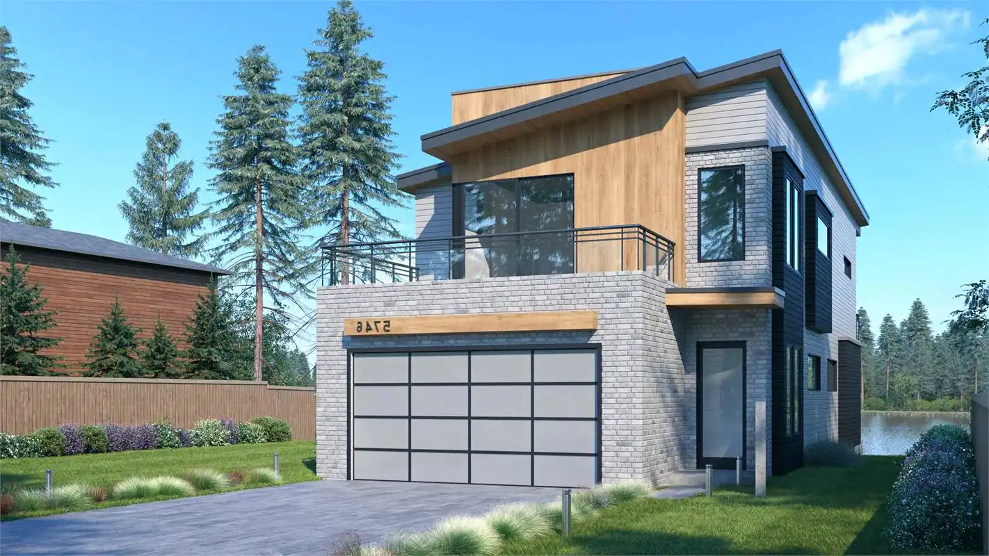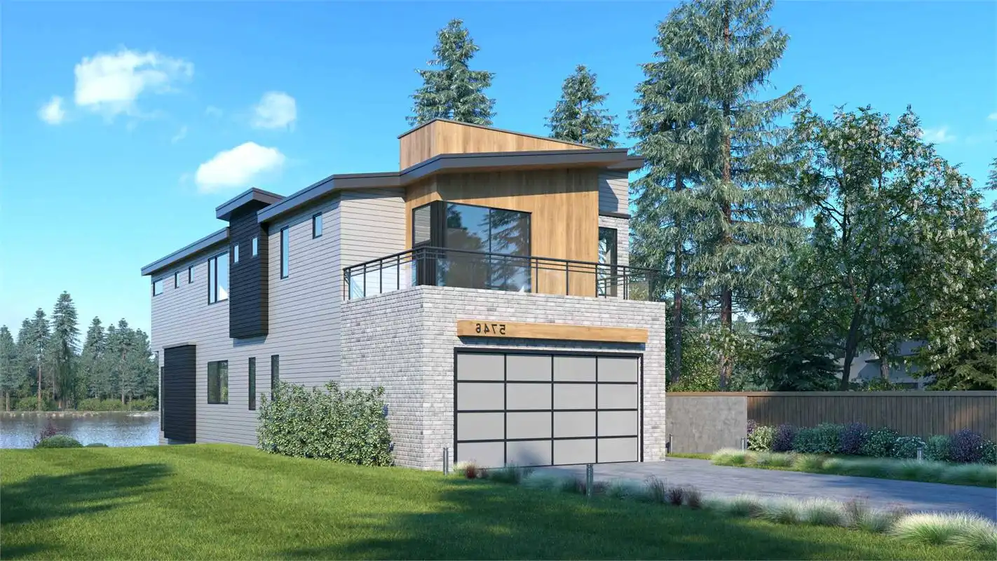 House Plan 6636 is an amazing narrow contemporary home that delivers 2,774 square feet with three bedrooms and three-and-a-half bathrooms on two stories. The main level places the two-car garage in front and the open-concept living in back. Make sure not to miss the powder room in the hallway with the garage entry or the unique walk-in pantry with a desk. There's also a covered patio off the great room to extend into the fresh air. The entire upstairs is vaulted, and all the bedrooms are also private suites! The primary suite in back and the smaller suite in front both have private weatherdecks. The laundry is also located up here for convenience!
