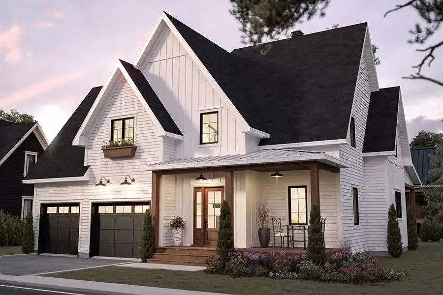 This delightful country farmhouse offers six bedrooms and three and a half bathrooms spread over three levels, including a finished lower level, providing ample space for both family and guests. The main level features a welcoming front porch that leads to a spacious foyer with a convenient home office. An open floor plan seamlessly flows from the great room to the kitchen and dining area, creating an inviting space perfect for entertaining guests. The L-shaped kitchen boasts a large center island, walk-in pantry, and access to a covered porch, providing an ideal setting for outdoor dining and relaxation. The upper level offers four bedrooms, a laundry room, and a master suite, creating a private retreat for the homeowner. The lower level features a large recreation and family room, two additional bedrooms, and a full bath, offering additional living space for a growing family or mult-generational living.