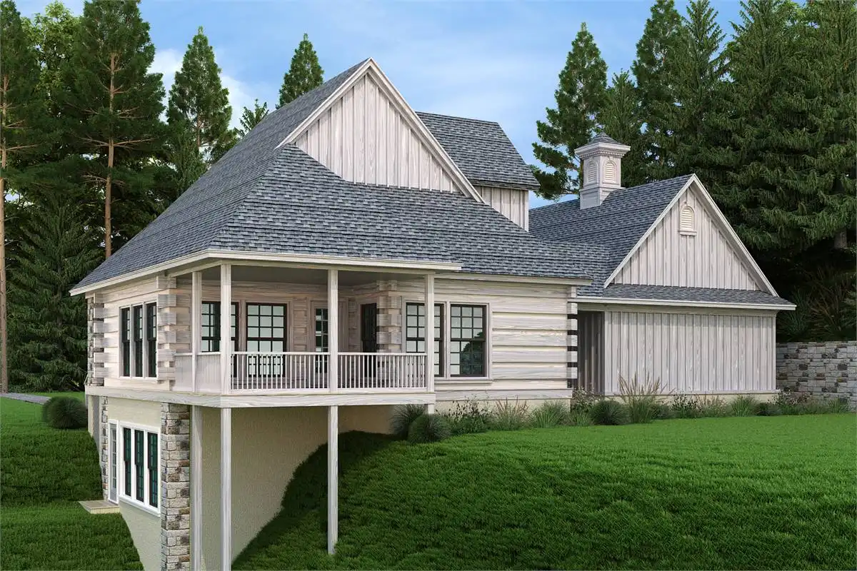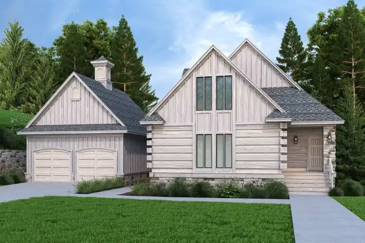 This mountain log home has 1,550 square feet of living area. The three spacious bedrooms and 2.5 bathrooms provide the ideal balance of comfort and style. The kitchen, the center of the house, is outfitted with an island that is ideal for cooking and hosting visitors. The living room features open ceilings with optional railings to the bedroom or flexible space upstairs. The master suite is a true sanctuary, a peaceful and serene space that offers isolation and relaxation. Upstairs has two huge bedrooms that share a large bathroom. A small breezeway connects to a two-car garage.