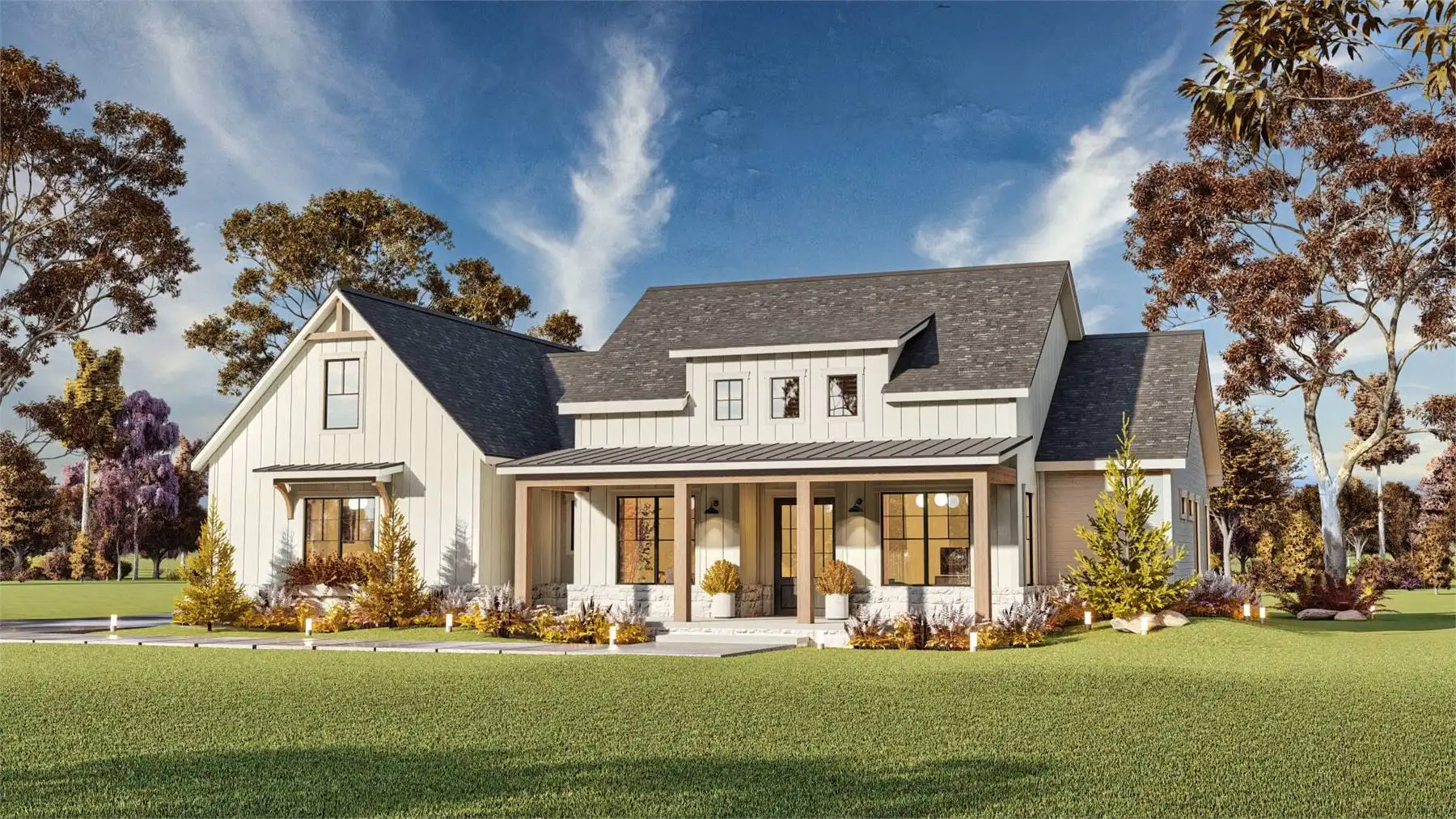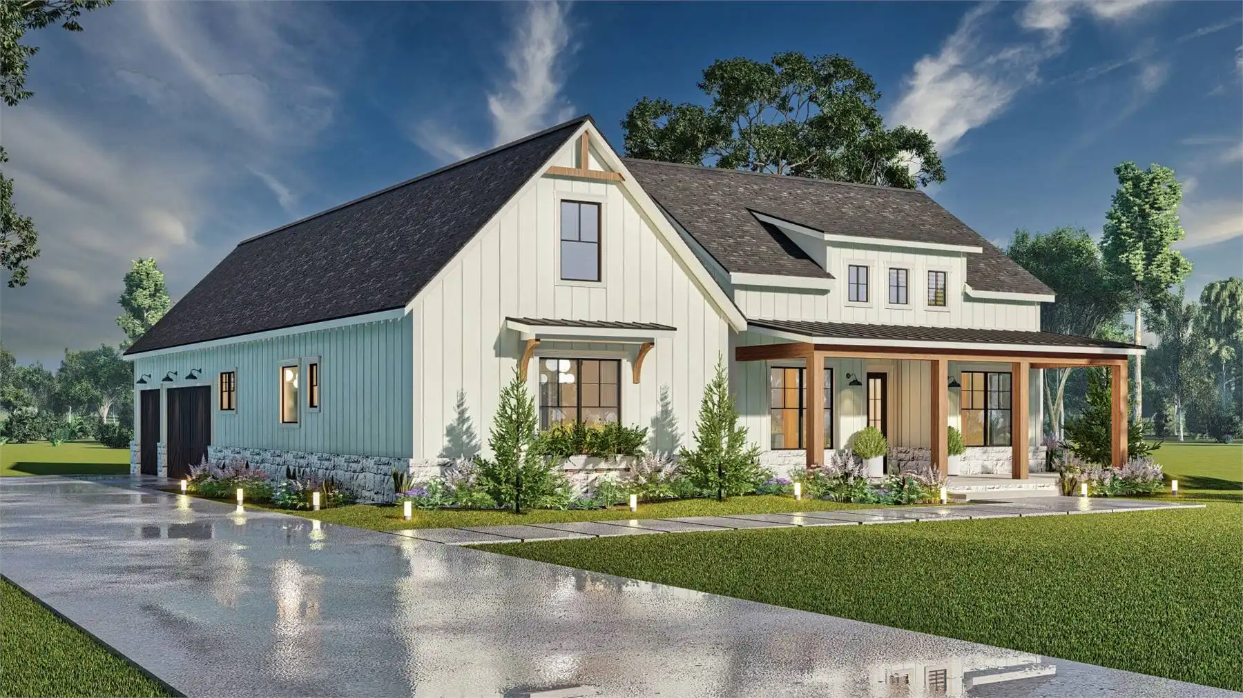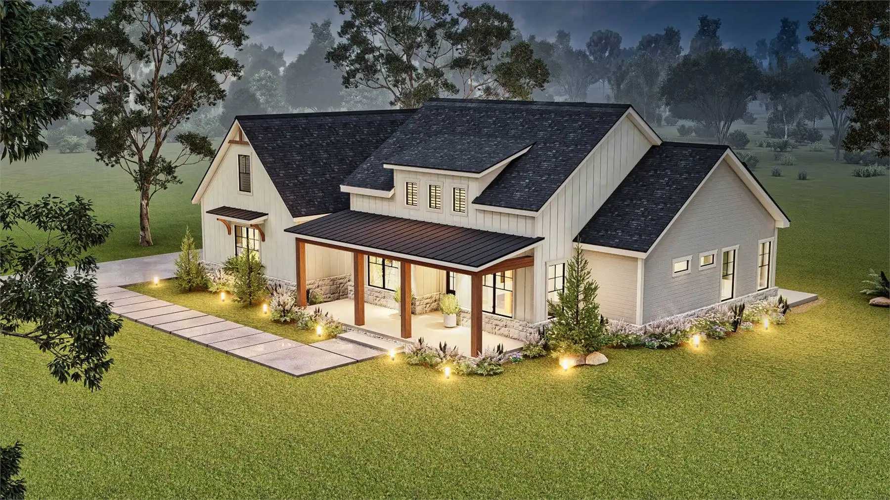 Welcome to this striking one story country house design featuring 2,473 square feet. Upon entering through the double front doors, a foyer establishes the charming ambiance of the residence. To the right, a formal dining room with a beamed ceiling beckons, creating an inviting space for hosting guests and enjoying celebratory gatherings. The core of the home lies in the open floor plan, featuring lofty ceilings in both the kitchen and great room. The great room boasts a fireplace with built-in shelves, fostering a cozy atmosphere. Double doors effortlessly connect to the screened-in rear porch and expansive open patios.The kitchen, complete with a sizable island and strategically positioned walk-in pantry, serves as a culinary haven. The opulent master suite, located on the right side, features a soaking tub between a walk-in shower and a private toilet water closet. Twin sink vanities flank the entrance to a walk-in closet, while a discreet pocket door provides access to the adjacent laundry room. On the opposite side, two additional bedrooms each offer a walk-in closet and private full bath. Discover the optional upper level, featuring a full bath off the landing and a vaulted hallway leading to two bonus rooms above the garage and master suite. To the rear, a generously sized three-car garage ensures ample space for family vehicles and storage.