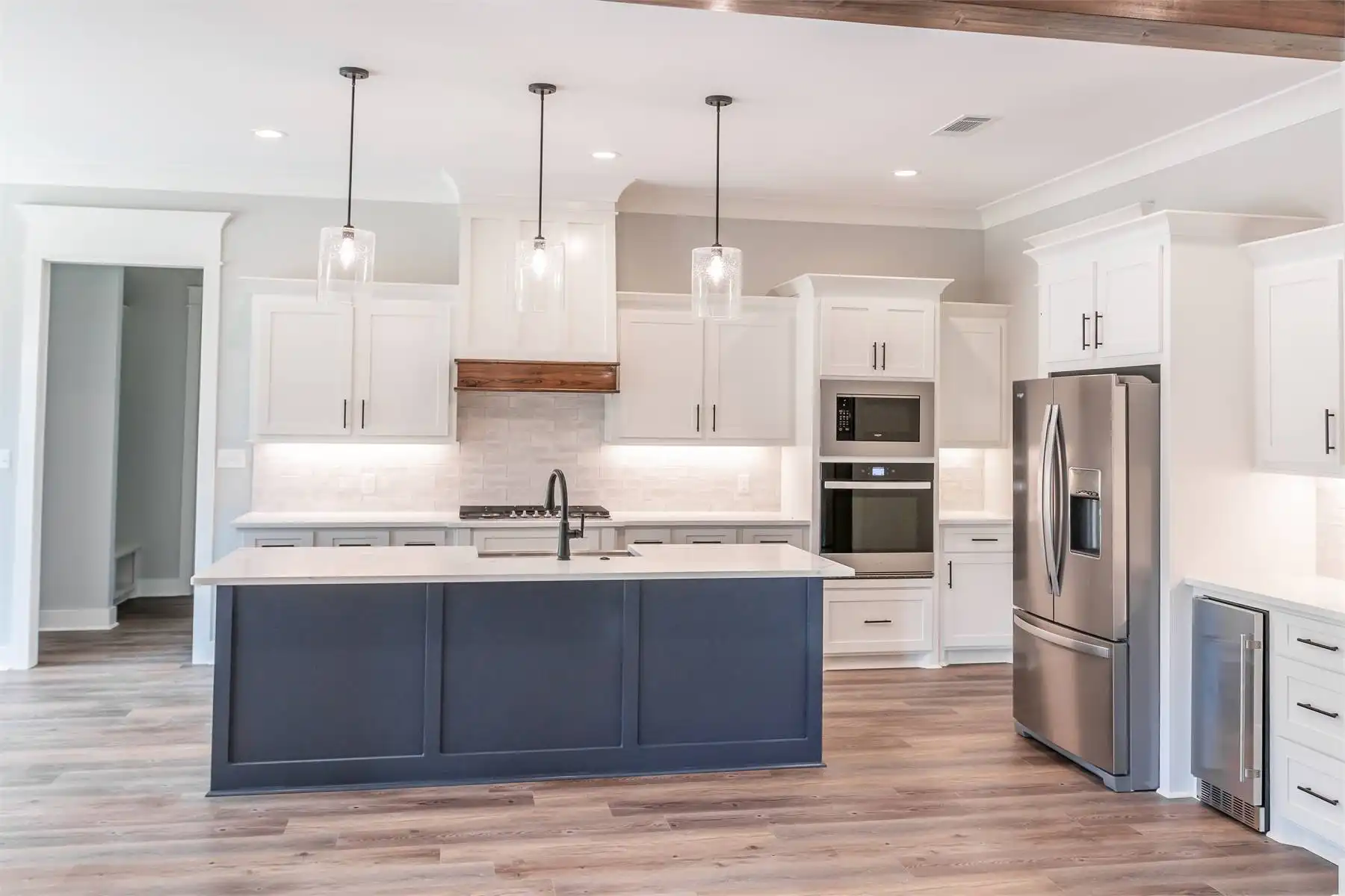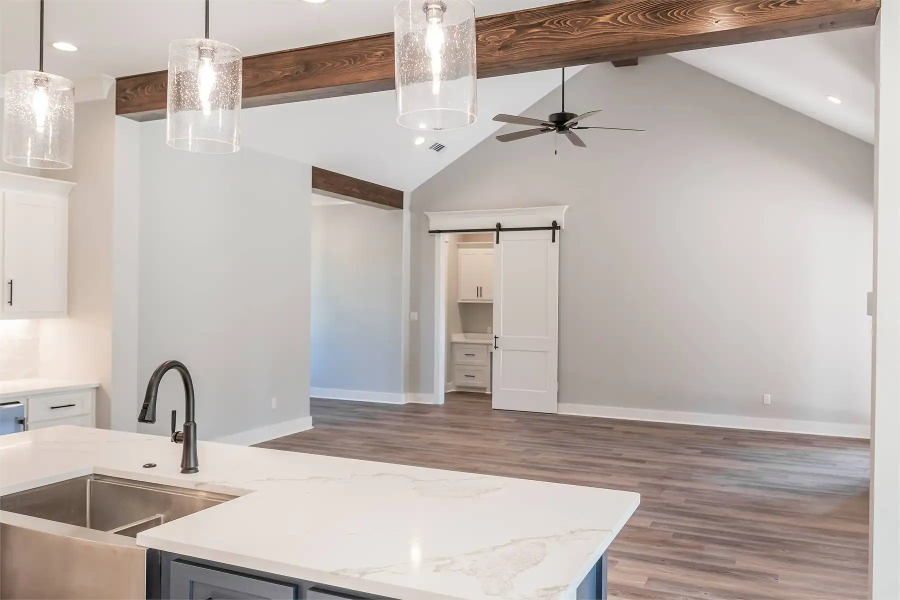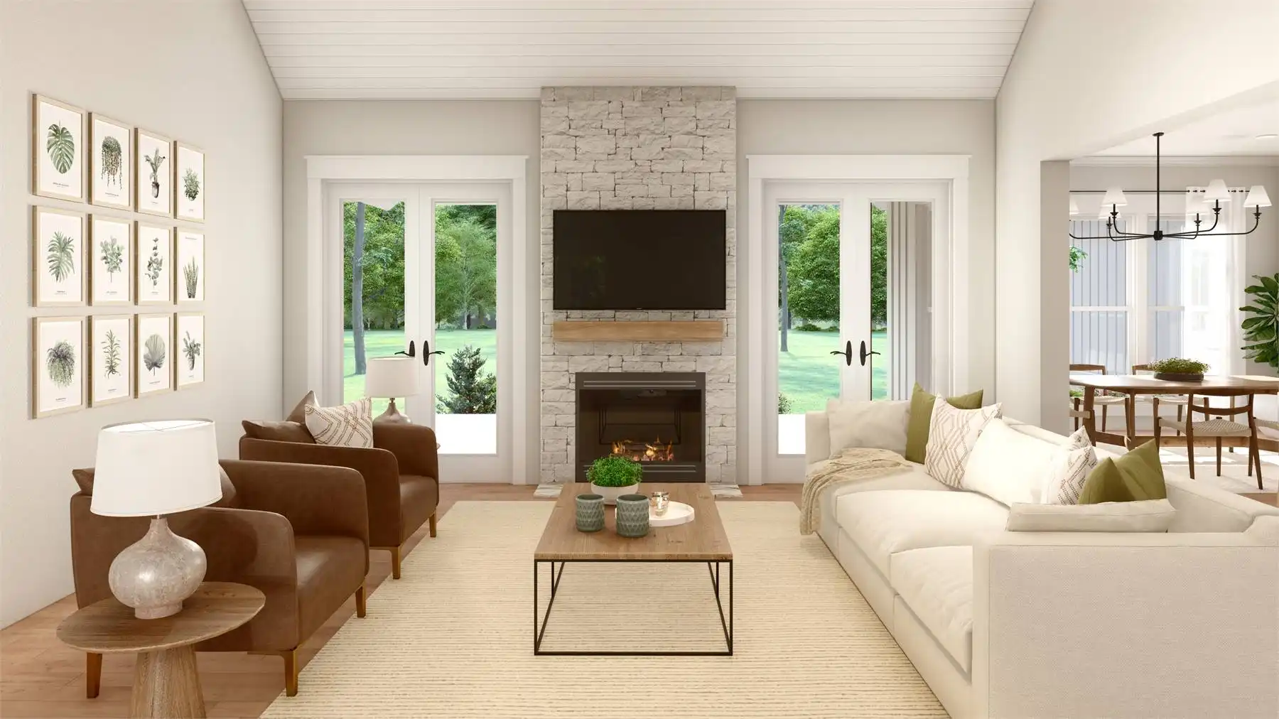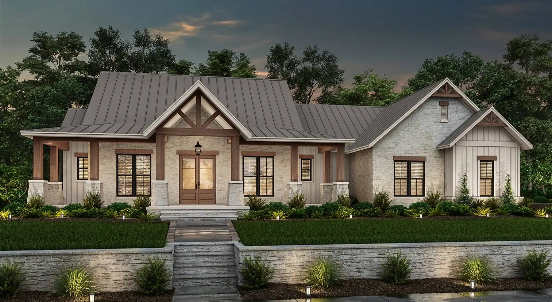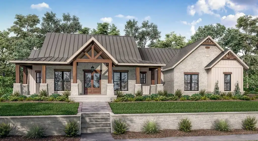 Step inside of this captivating modern farmhouse, distinguished by its wrap-around porch that elevates its curb appeal. Upon entry, French doors to the left unveil a convenient home office. Moving straight ahead, the great room beckons with a soaring 16' vaulted ceiling and a fireplace, creating a warm and inviting atmosphere. The open kitchen fosters social connections with friends and family, and the expansive walk-in pantry guarantees ample storage for all your culinary essentials. Nestled behind the 3-car garage is the master suite, boasting a sumptuous freestanding tub in the ensuite bath and a closet that seamlessly connects to the laundry room. On the opposite side of the residence, two additional bedrooms share a Jack-and-Jill bathroom. Meticulously designed, this home effortlessly blends modern farmhouse aesthetics with contemporary amenities, fashioning a comfortable and practical living space for you and your loved ones.