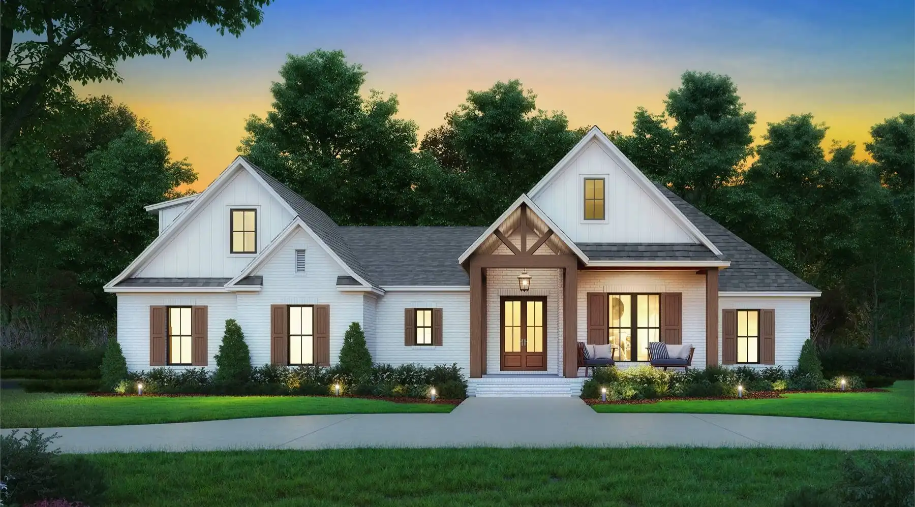Enjoy this charming Country Cottage house plan, where timeless design seamlessly blends with modern comfort. The welcoming vaulted front porch, adorned with timber accents, introduces the warmth and character that define the home. Inside, a spacious great room with a fireplace and an open-concept layout creates a welcoming atmosphere, connecting living spaces effortlessly. The kitchen, a culinary haven, boasts an oversized island and a walk-in pantry catering to all your storage needs. Next to the kitchen, the dining room offers a picturesque view of the large back porch, complete with an outdoor kitchen, enhancing your summer entertaining experience. The first-floor master suite provides a private oasis, featuring a luxurious 5-piece master bath and a walk-in closet connected to the laundry room for added convenience. On the opposite side of the home, two bedrooms share a well-appointed 4-piece bath, while a flexible fourth room can function as an office or an additional bedroom. For those seeking extra space, the optional second-floor bonus room and full bathroom present expansion possibilities. The house includes a 2-car side-entry garage, with options for a 3-car side or 2-car front garage. Welcome to a harmonious blend of comfort and style!