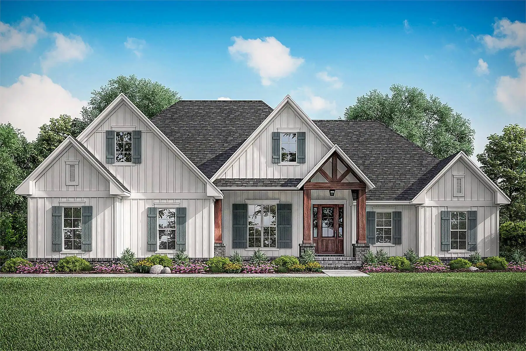 Experience this exquisite craftsman crafted in a charming style contemorary style. Stepping inside, you'll discover three bedrooms, with a private master suite that boasts a spacious closet conveniently connected to the laundry room. The main living areas feature volume ceilings, creating impressive and inviting spaces. At the heart of this home lies the gourmet kitchen, a dream for any cook, complete with an oversized pantry catering to all your storage needs. Venture outside, and the covered porches provide additional space for entertaining, offering a perfect setting for gatherings and relaxation. Take a moment to appreciate the front porch, adorned with exposed truss and beams, showcasing the meticulous craftsmanship that sets this home apart. Join me as we explore further, immersing ourselves in the charm and functionality of this contemporary farmhouse with distinctive craftsman touches.