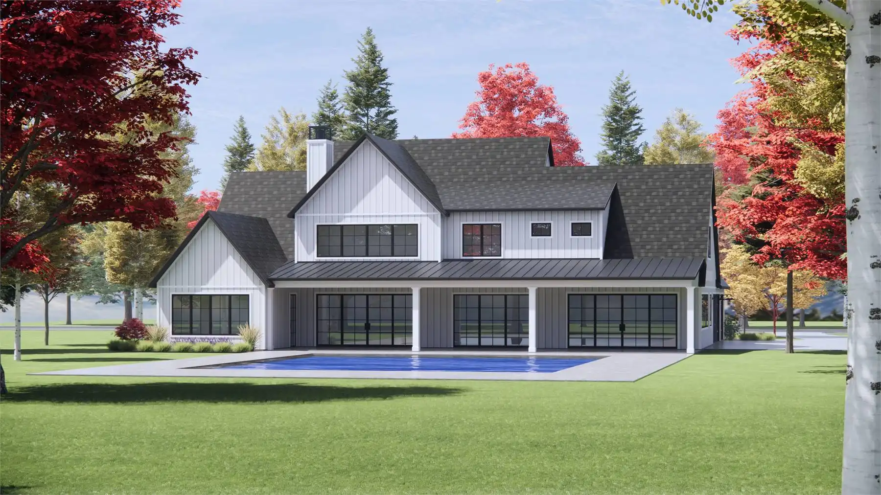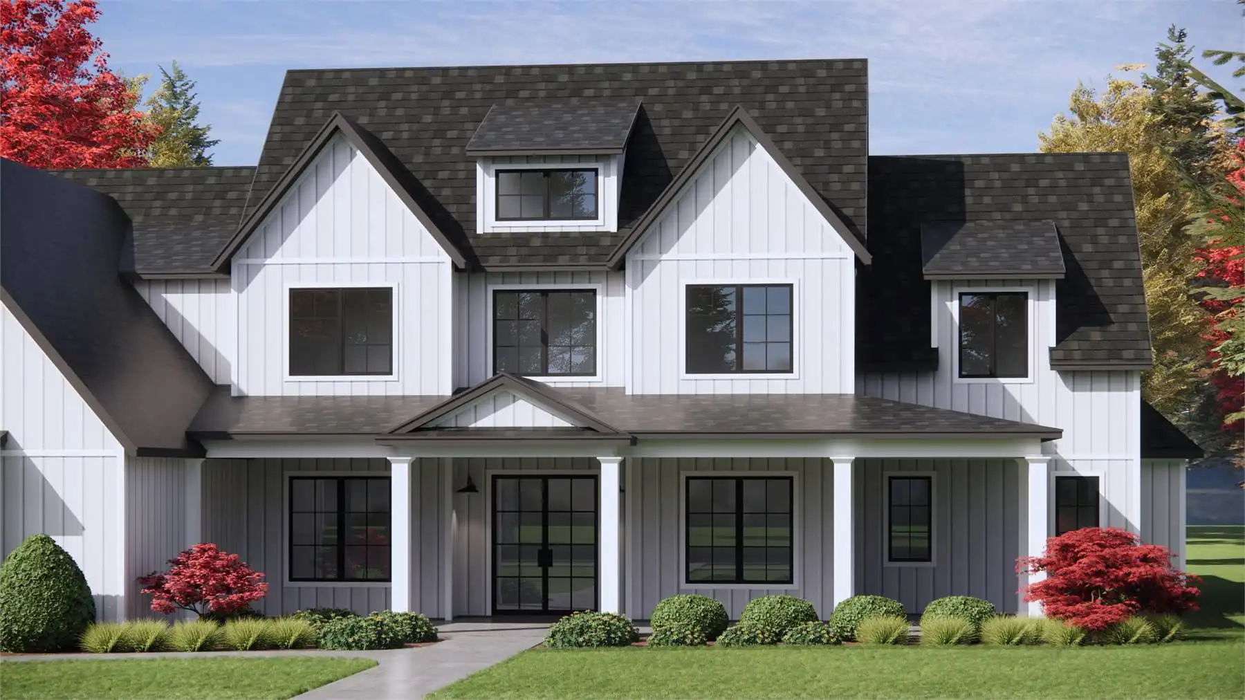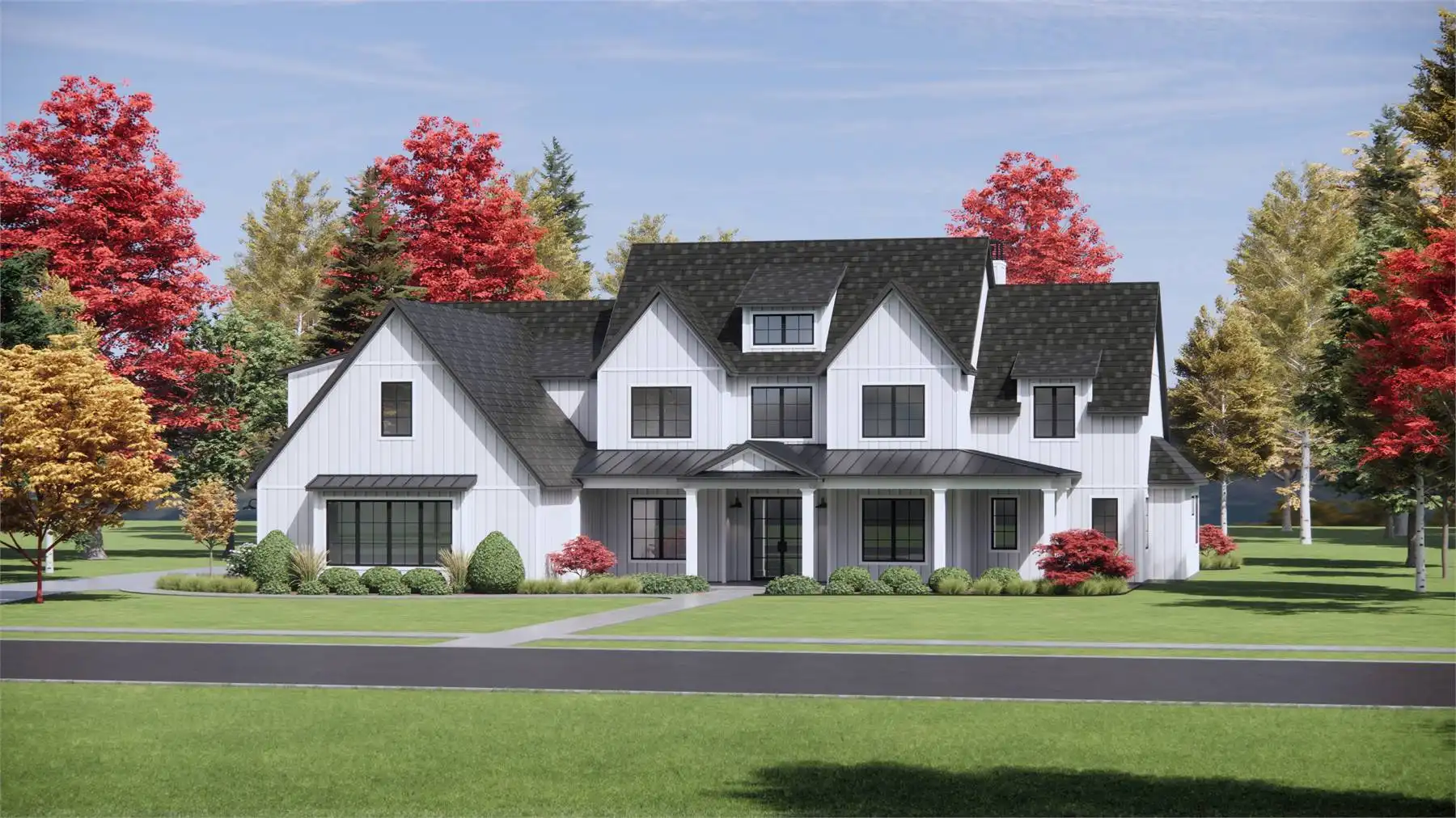 If you're in the market for a large farmhouse, give House Plan 6711 your consideration! It offers 4,164 square feet across two stories, complete with four bedroom suites that will keep the whole family comfortable. The first floor includes the open-concept areas, including the spacious kitchen with a huge pantry and the two-story family room, as well as the office and the luxe primary suite. Three more suites for the kids are upstairs along with the study loft and a bonus room that would make a great rec or media space. Just imagine how you could make this home your own!