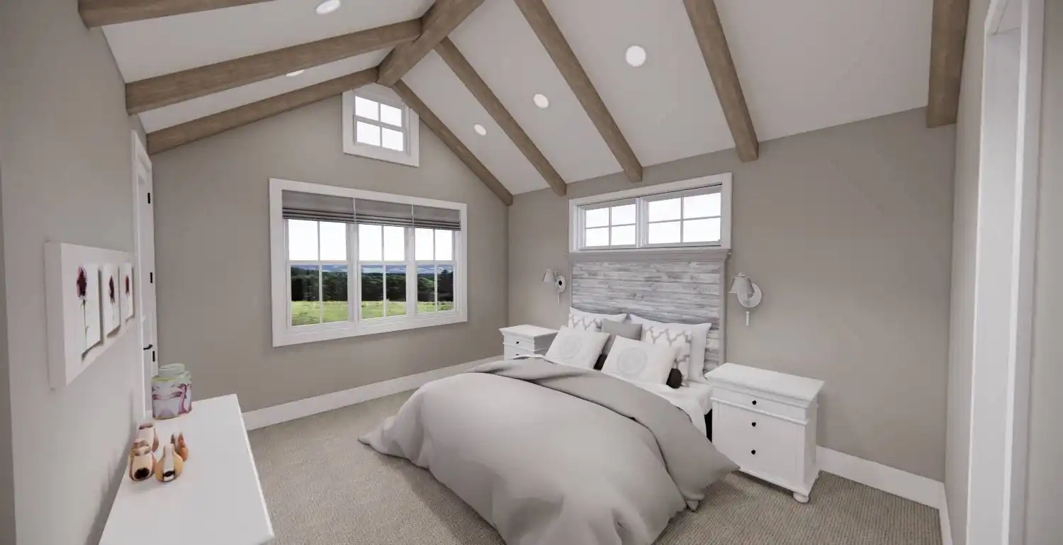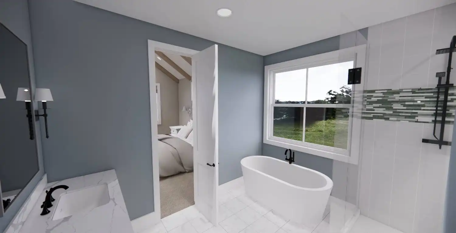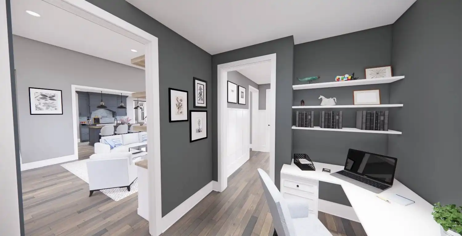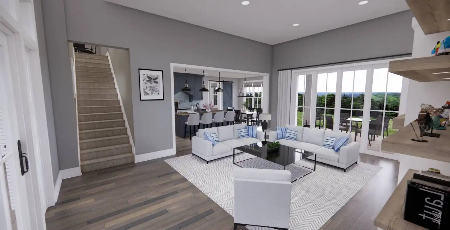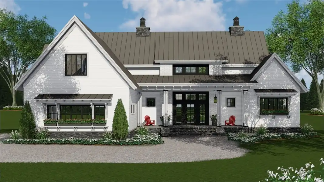 Welcome to House Plan 6713, an enchanting modern farmhouse designed to redefine your living experience. Spanning 2,125 square feet, this home seamlessly blends contemporary style with practical functionality. Upon entering, you're greeted by an open floor plan that effortlessly connects the expansive living room, dining area, and a modern kitchen adorned with sleek appliances and granite countertops. Natural light floods the space, enhancing the warm and inviting atmosphere. The main floor boasts a versatile bedroom, ideal for guests or a home office, and the luxurious master suite, complete with a spa-like bathroom featuring a soaking tub and walk-in shower. Two additional bedrooms provide ample space for family or guests. House Plan 6713 extends its allure outdoors with a covered porch, enticing you to unwind and soak in the scenic views.