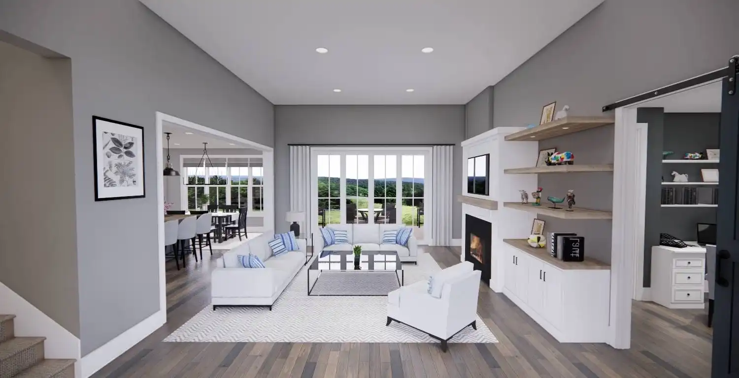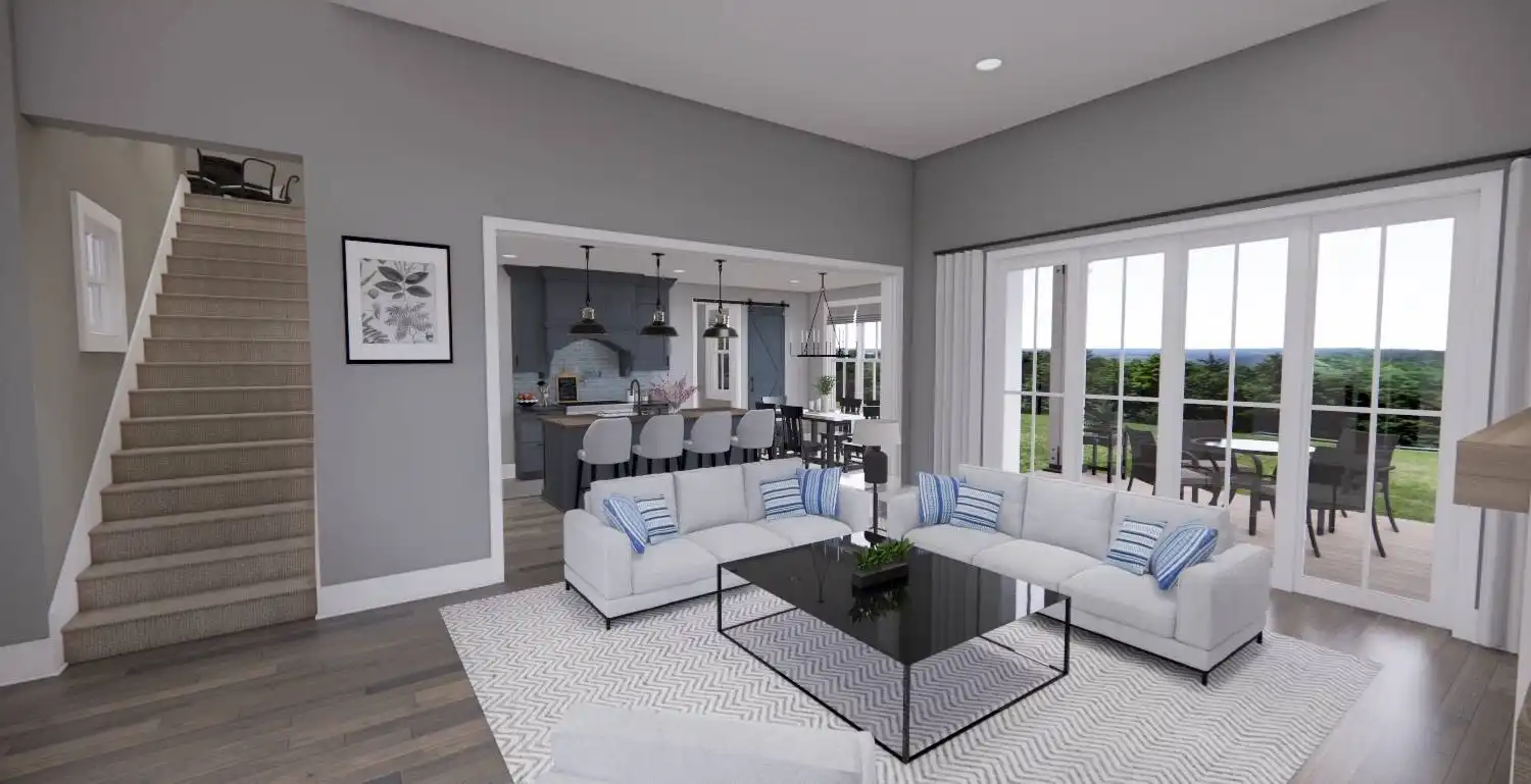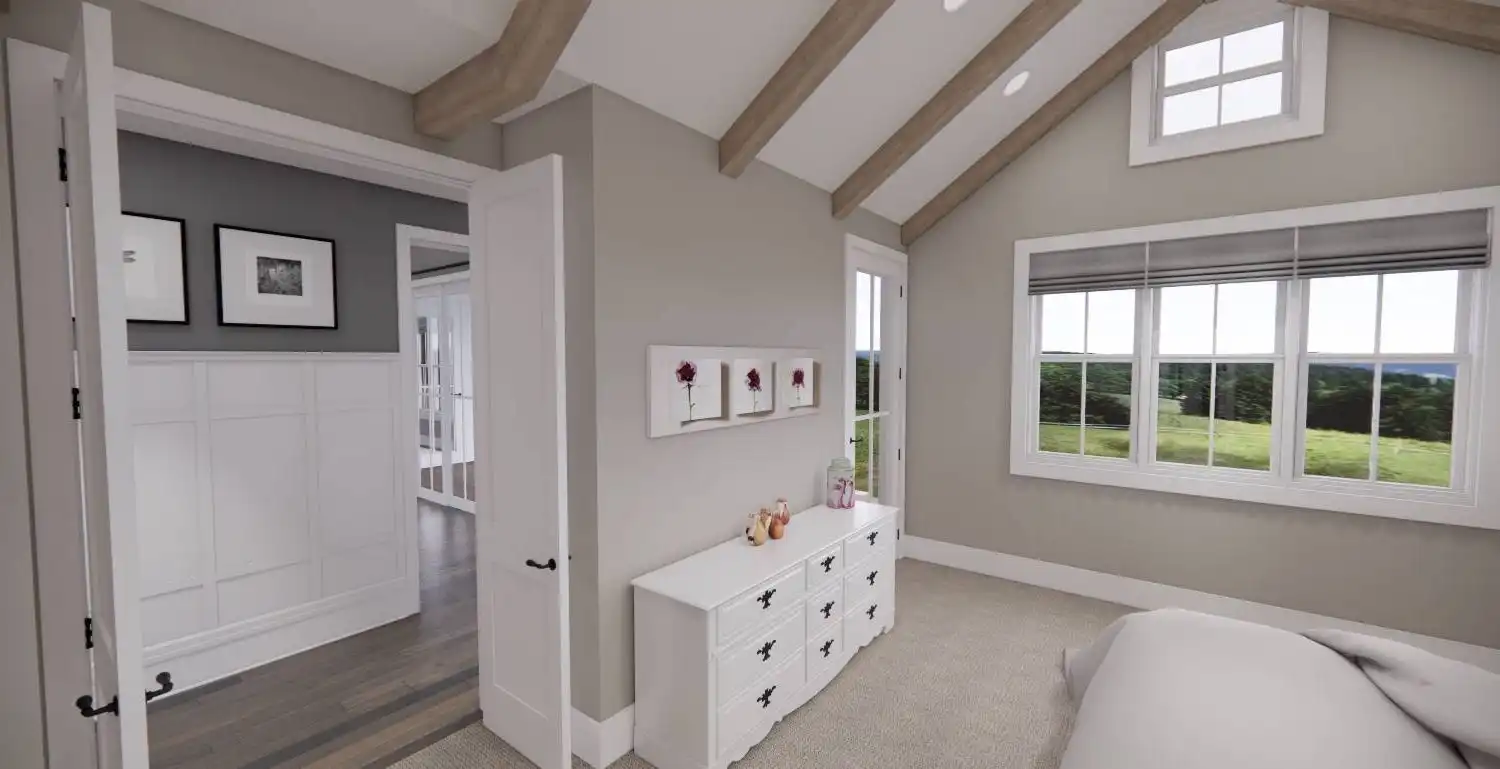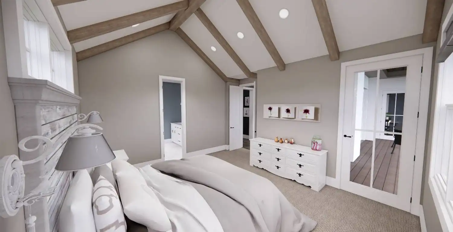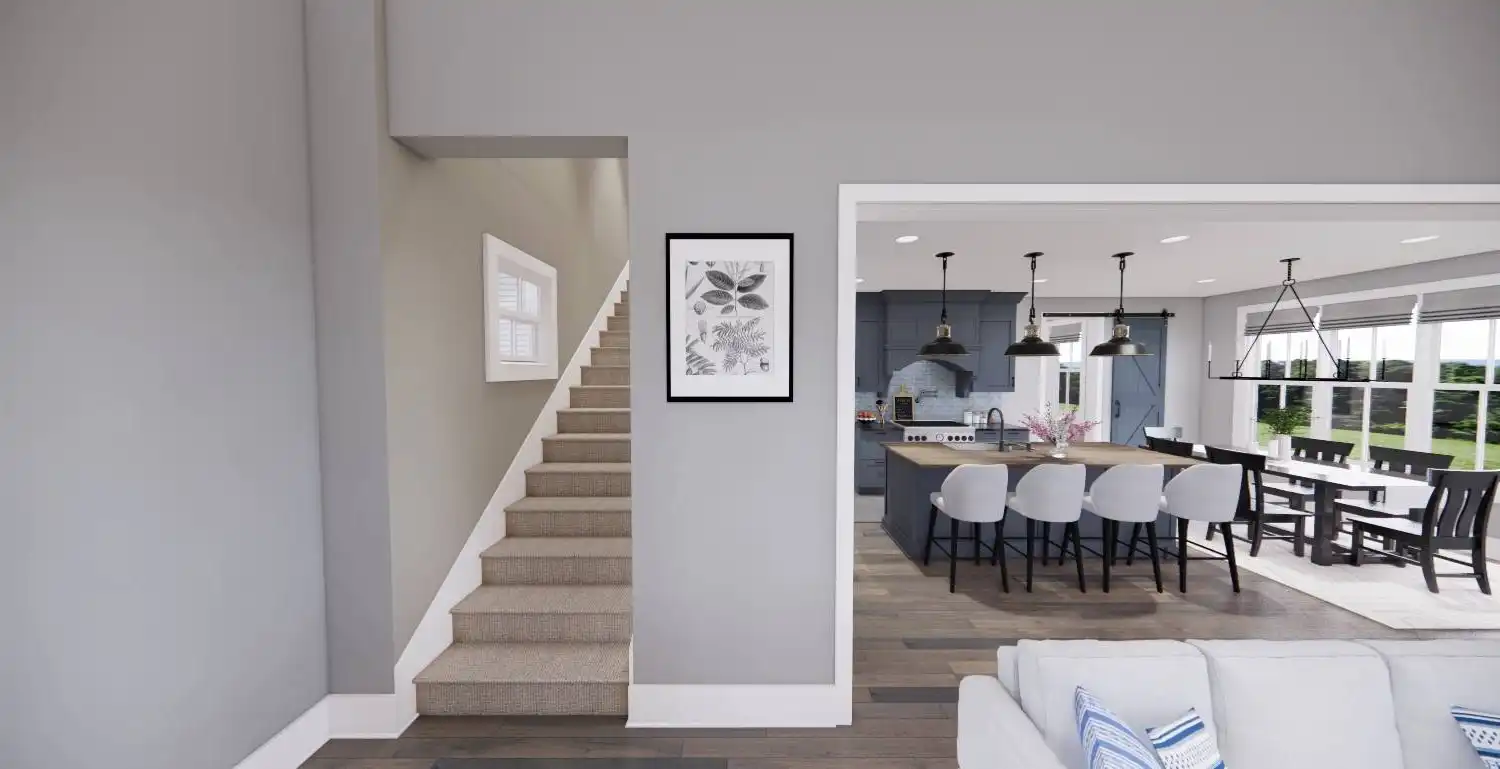 Welcome to House Plan 6713, an enchanting modern farmhouse designed to redefine your living experience. Spanning 2,125 square feet, this home seamlessly blends contemporary style with practical functionality. Upon entering, you're greeted by an open floor plan that effortlessly connects the expansive living room, dining area, and a modern kitchen adorned with sleek appliances and granite countertops. Natural light floods the space, enhancing the warm and inviting atmosphere. The main floor boasts a versatile bedroom, ideal for guests or a home office, and the luxurious master suite, complete with a spa-like bathroom featuring a soaking tub and walk-in shower. Two additional bedrooms provide ample space for family or guests. House Plan 6713 extends its allure outdoors with a covered porch, enticing you to unwind and soak in the scenic views.