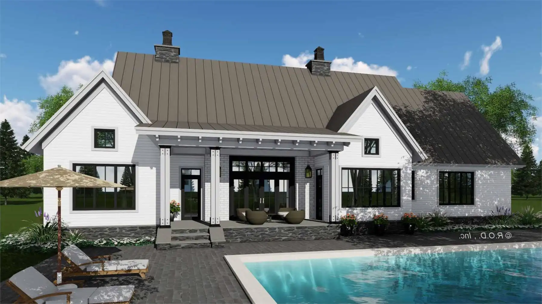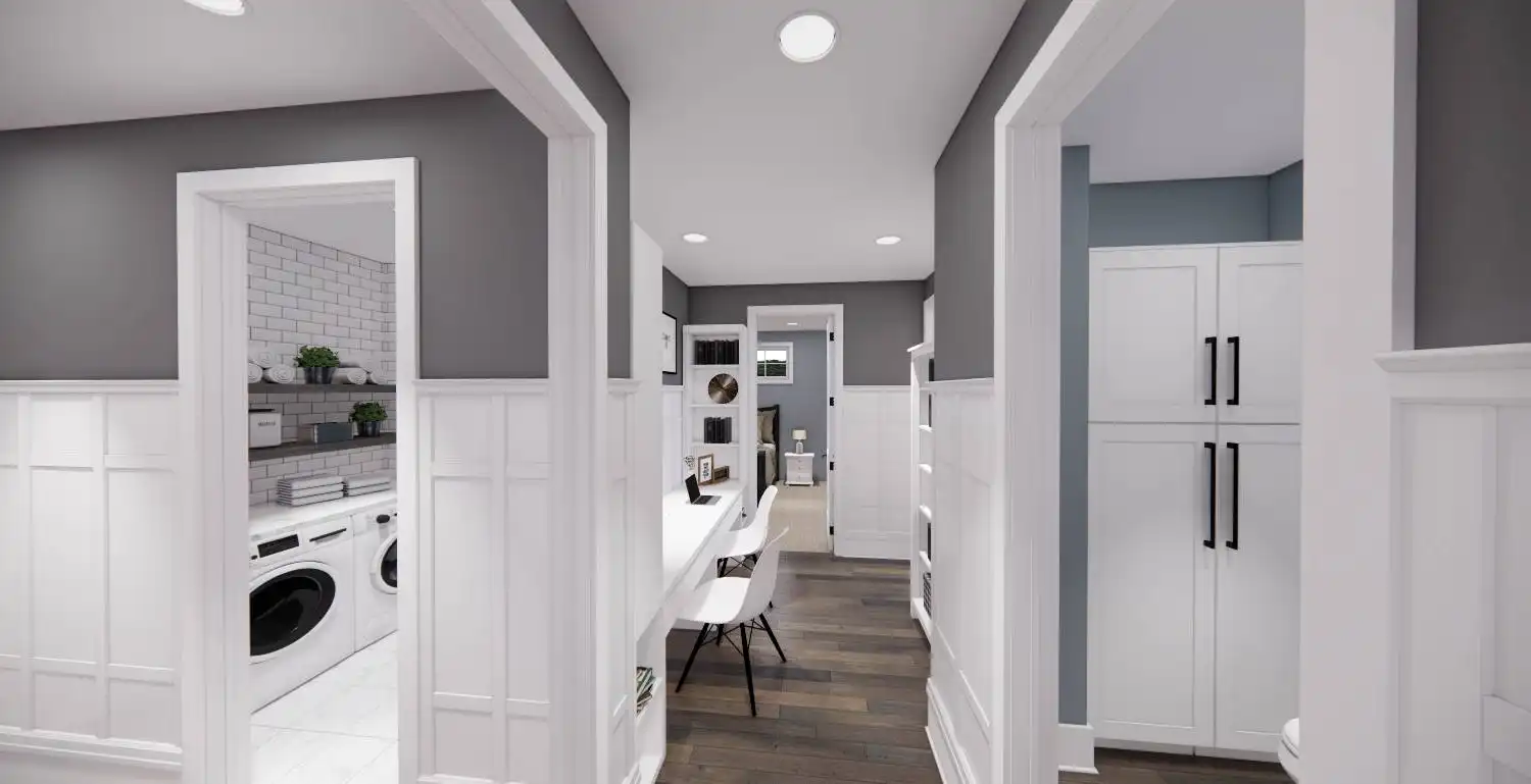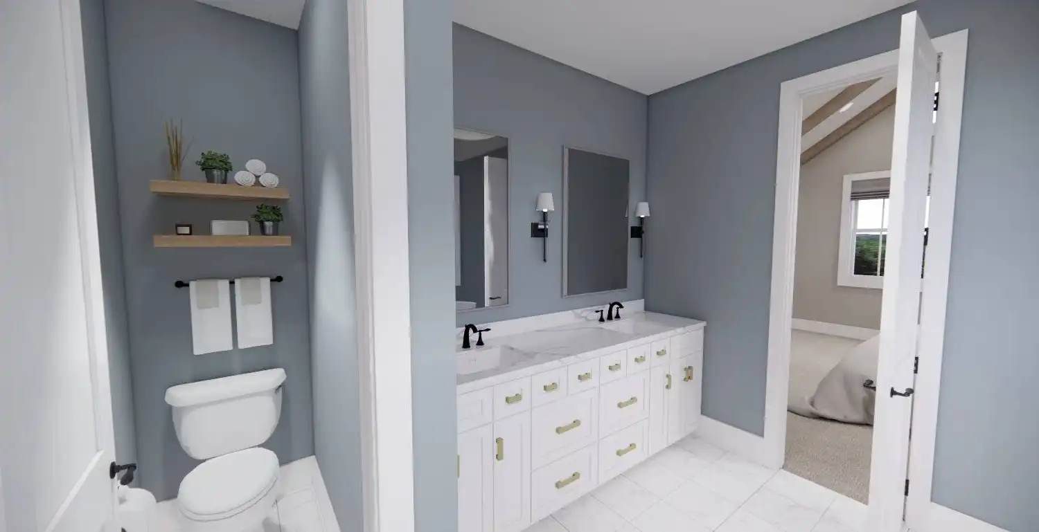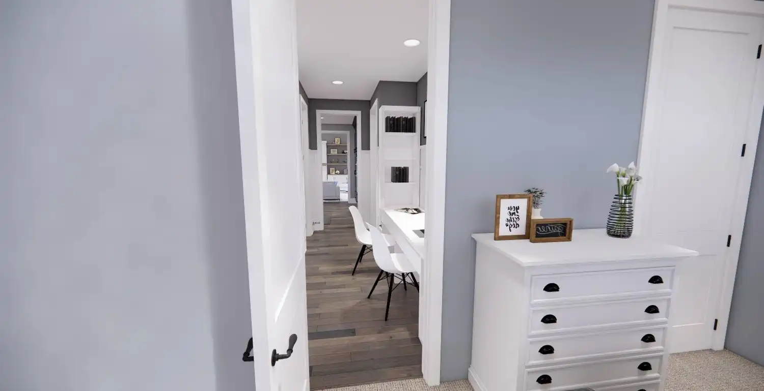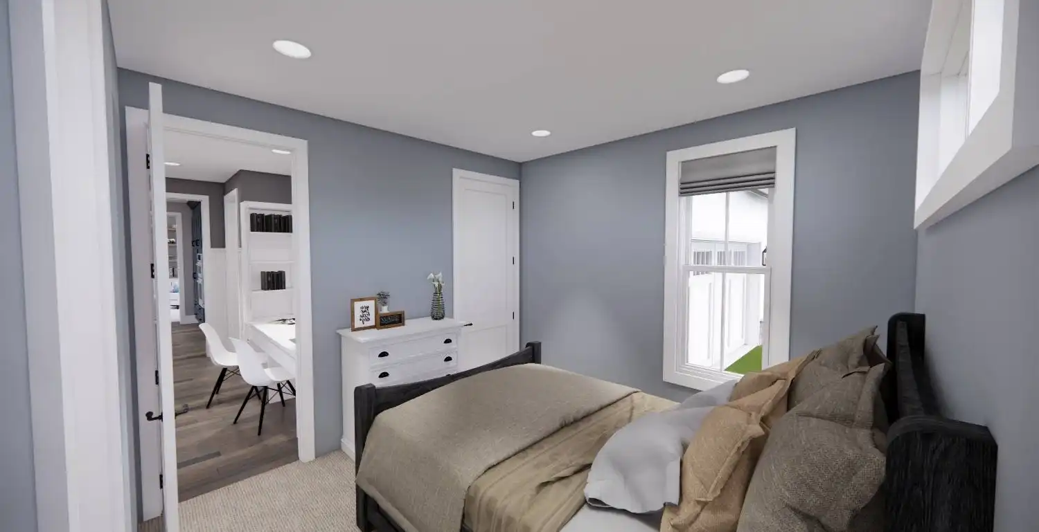 Welcome to House Plan 6713, an enchanting modern farmhouse designed to redefine your living experience. Spanning 2,125 square feet, this home seamlessly blends contemporary style with practical functionality. Upon entering, you're greeted by an open floor plan that effortlessly connects the expansive living room, dining area, and a modern kitchen adorned with sleek appliances and granite countertops. Natural light floods the space, enhancing the warm and inviting atmosphere. The main floor boasts a versatile bedroom, ideal for guests or a home office, and the luxurious master suite, complete with a spa-like bathroom featuring a soaking tub and walk-in shower. Two additional bedrooms provide ample space for family or guests. House Plan 6713 extends its allure outdoors with a covered porch, enticing you to unwind and soak in the scenic views.