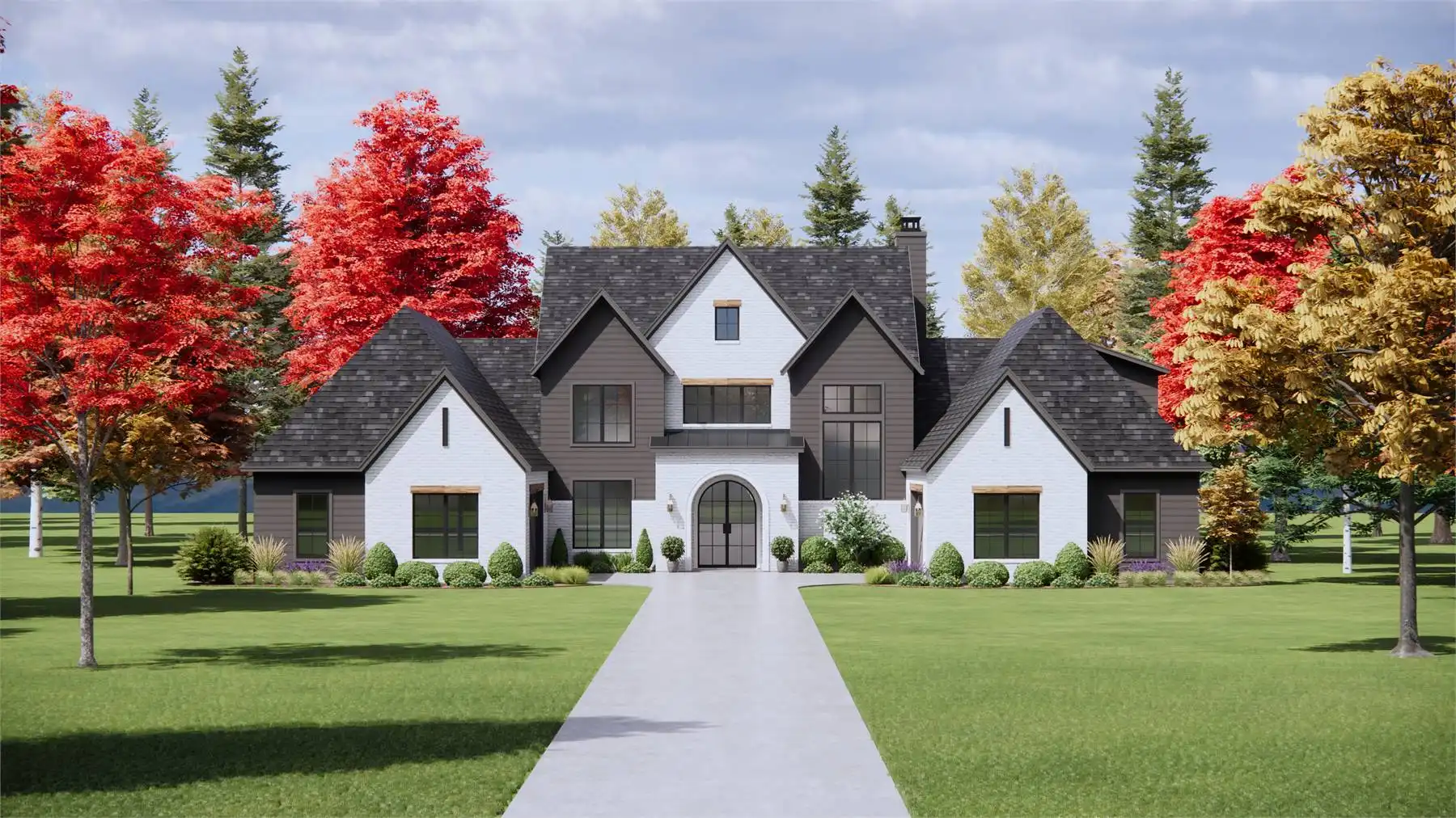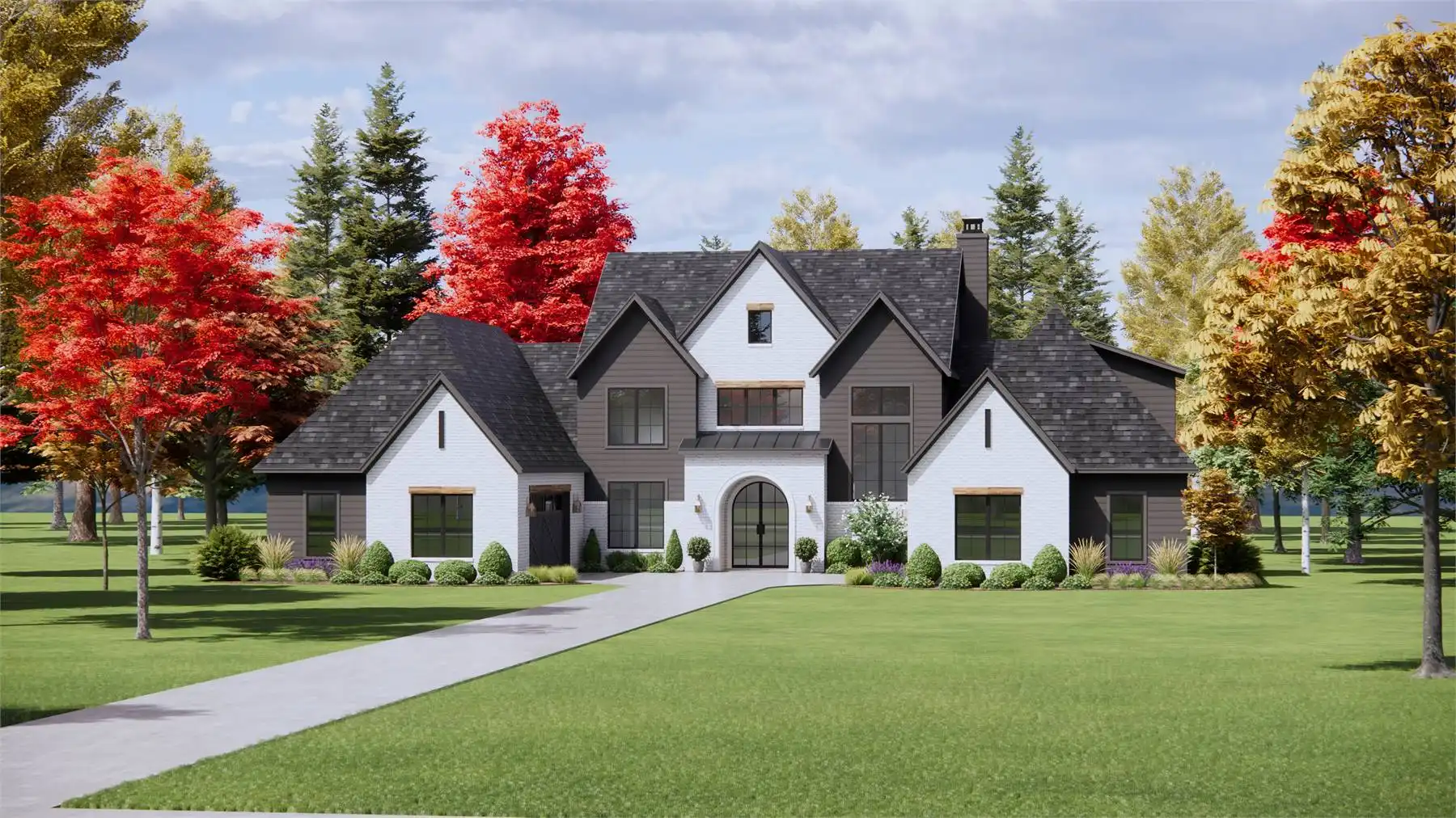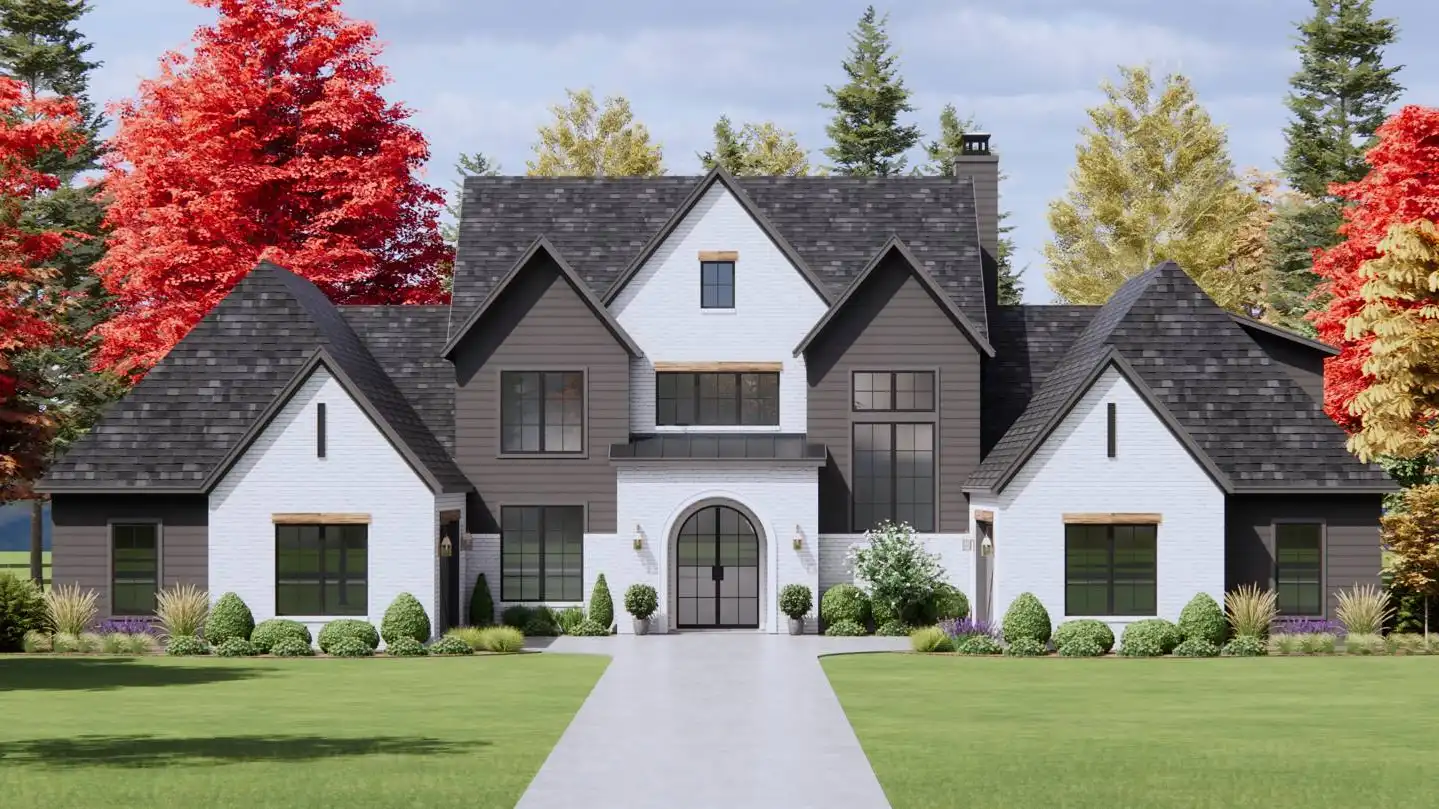 Stop and imagine the possibilities of House Plan 6715, an amazing luxury European home that stands out on the street thanks to its motor court! Enter through the centered front door or one of the two family foyers coming in from the garages and you'll be wowed by this 4,146-square-foot interior. The main level includes two-story ceilings in the foyer and family room, an L-shaped kitchen with tons of storage, an office, a five-piece primary suite, and a smaller three-piece suite. The catwalk upstairs overlooks the foyer and family room and connects the final two bedroom suites to the bonus room. What a great layout for a modern family wrapped up in traditional style!