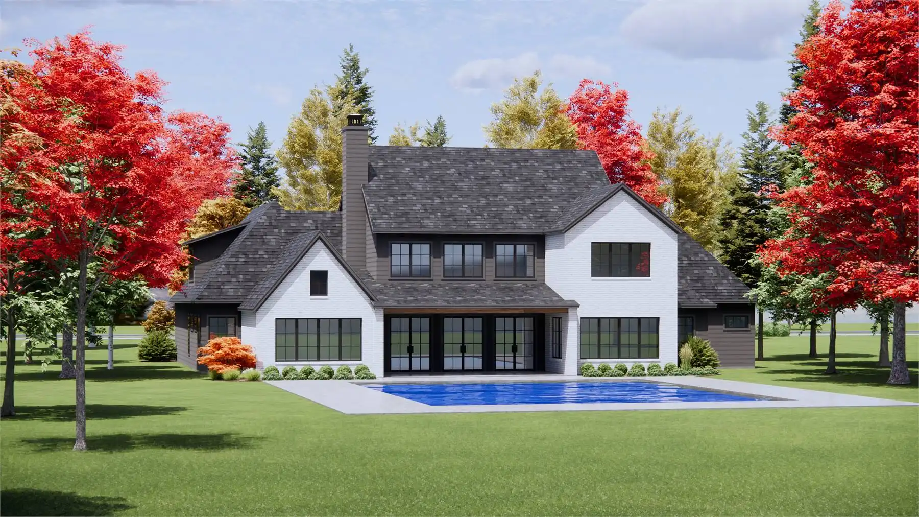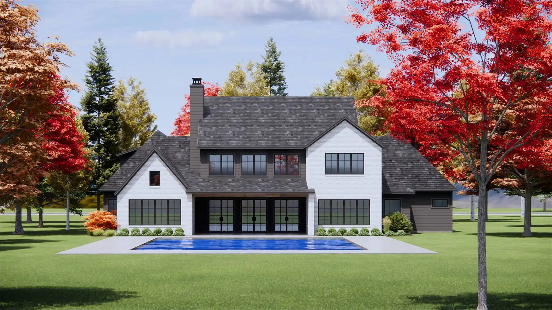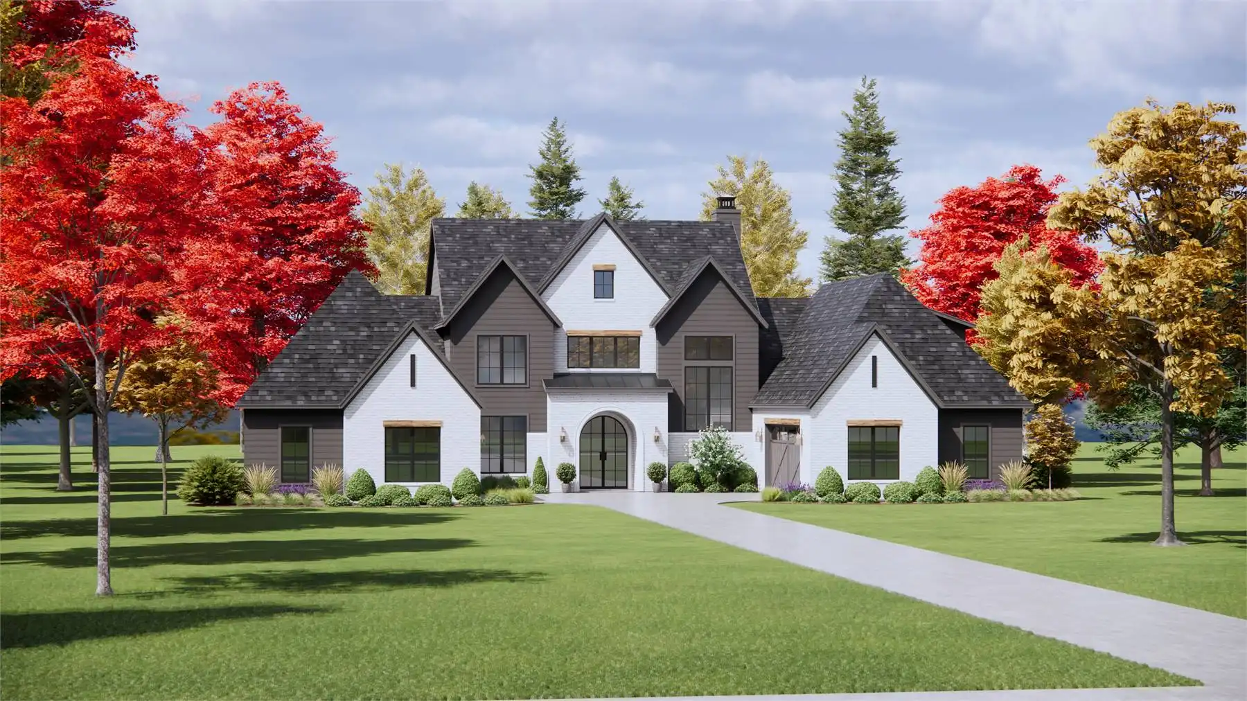 Stop and imagine the possibilities of House Plan 6715, an amazing luxury European home that stands out on the street thanks to its motor court! Enter through the centered front door or one of the two family foyers coming in from the garages and you'll be wowed by this 4,146-square-foot interior. The main level includes two-story ceilings in the foyer and family room, an L-shaped kitchen with tons of storage, an office, a five-piece primary suite, and a smaller three-piece suite. The catwalk upstairs overlooks the foyer and family room and connects the final two bedroom suites to the bonus room. What a great layout for a modern family wrapped up in traditional style!