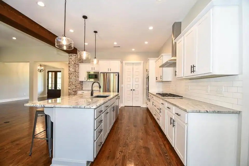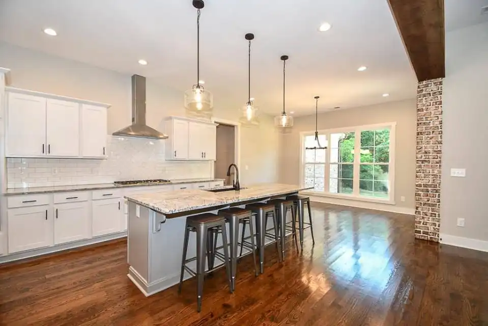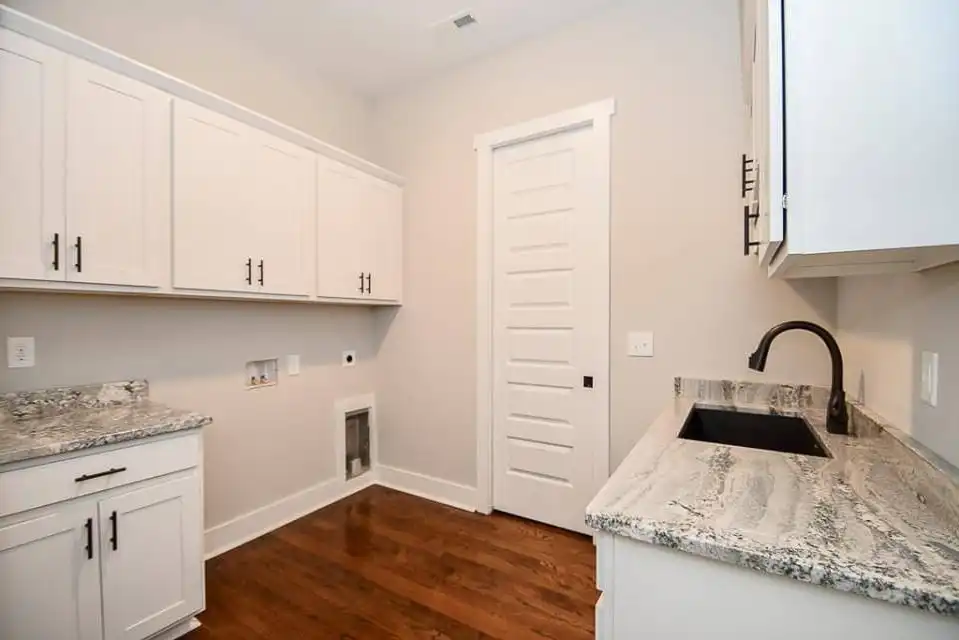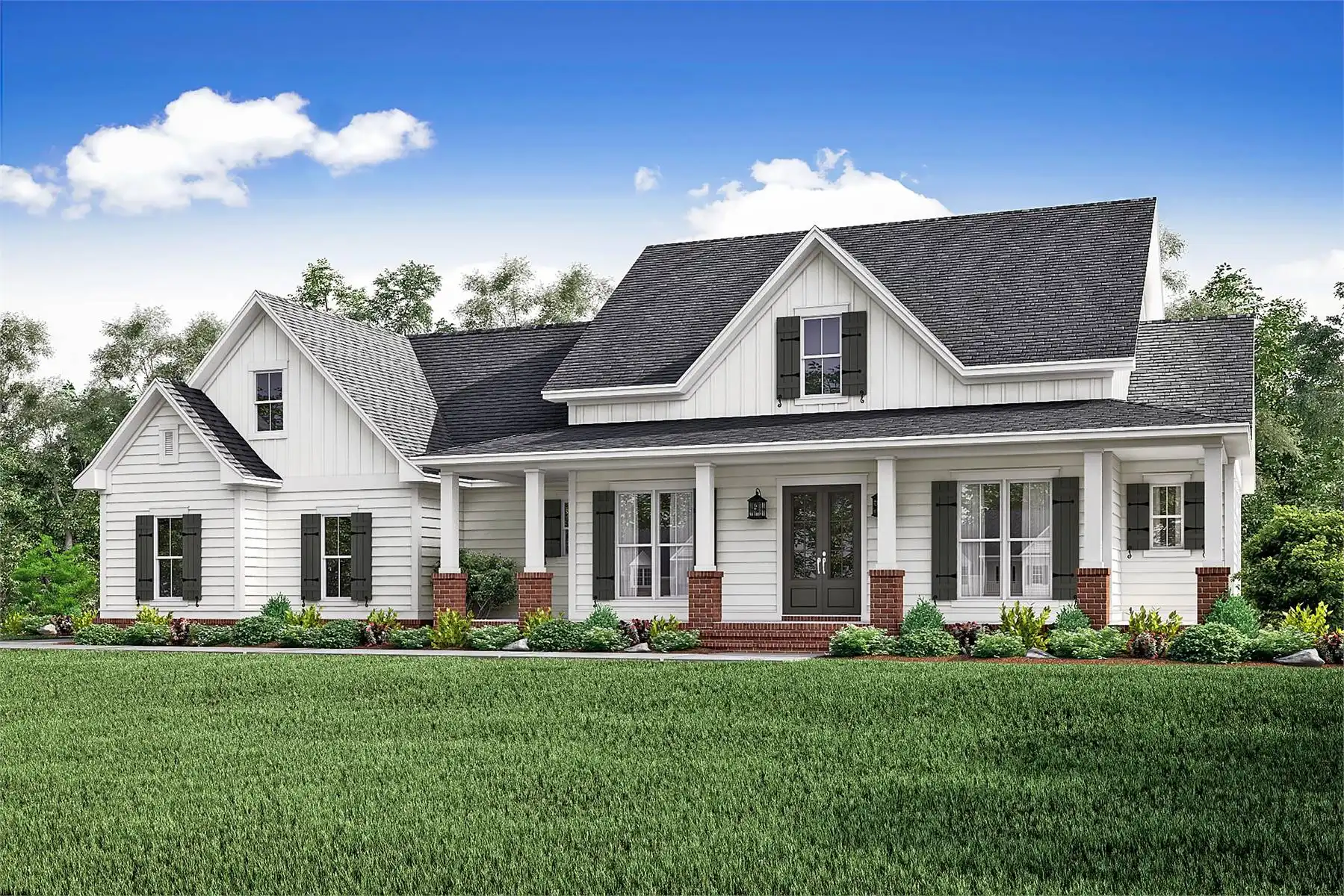 Explore this charming 2,469-square-foot modern farmhouse with an appealing board and batten exterior. Your entrance unfolds on a wraparound-covered front porch, guiding you into the home through a welcoming foyer. The well-appointed kitchen is designed with ample prep space, a large walk-in pantry, and a convenient breakfast nook, seamlessly connecting to the dining room for cohesive family time spent. The thoughtfully designed split-bedroom layout places two bedrooms on the left side of the house, accompanied by a full bathroom and a flex space, while the master suite graces the right side with a beautifully appointed spa-like ensuite bathroom. Finally, a two-car garage with a side entry positioned at the front of the house adds both convenience and a touch of architectural appeal.
