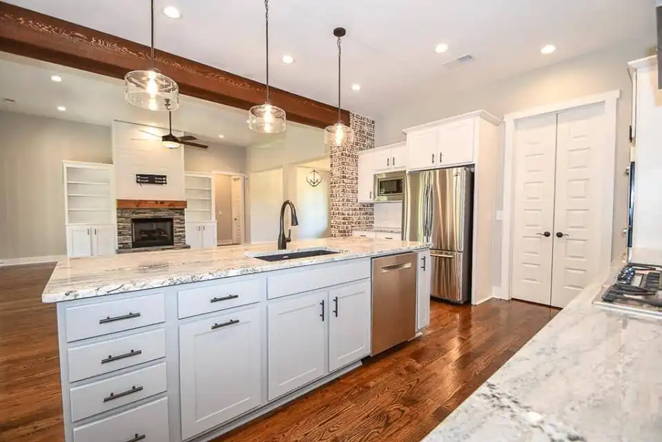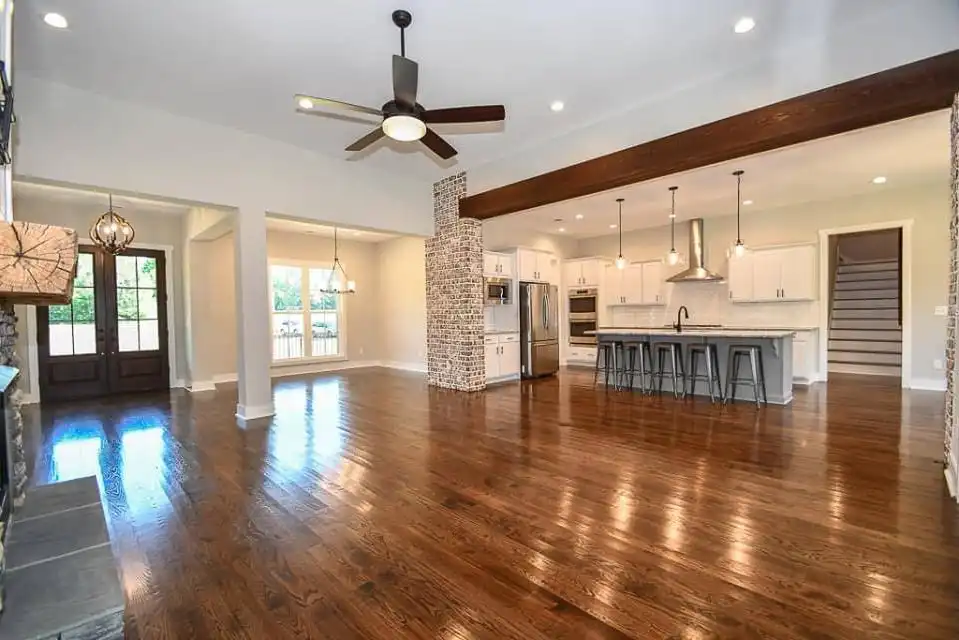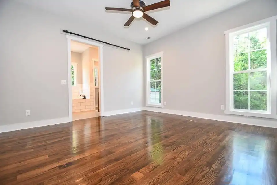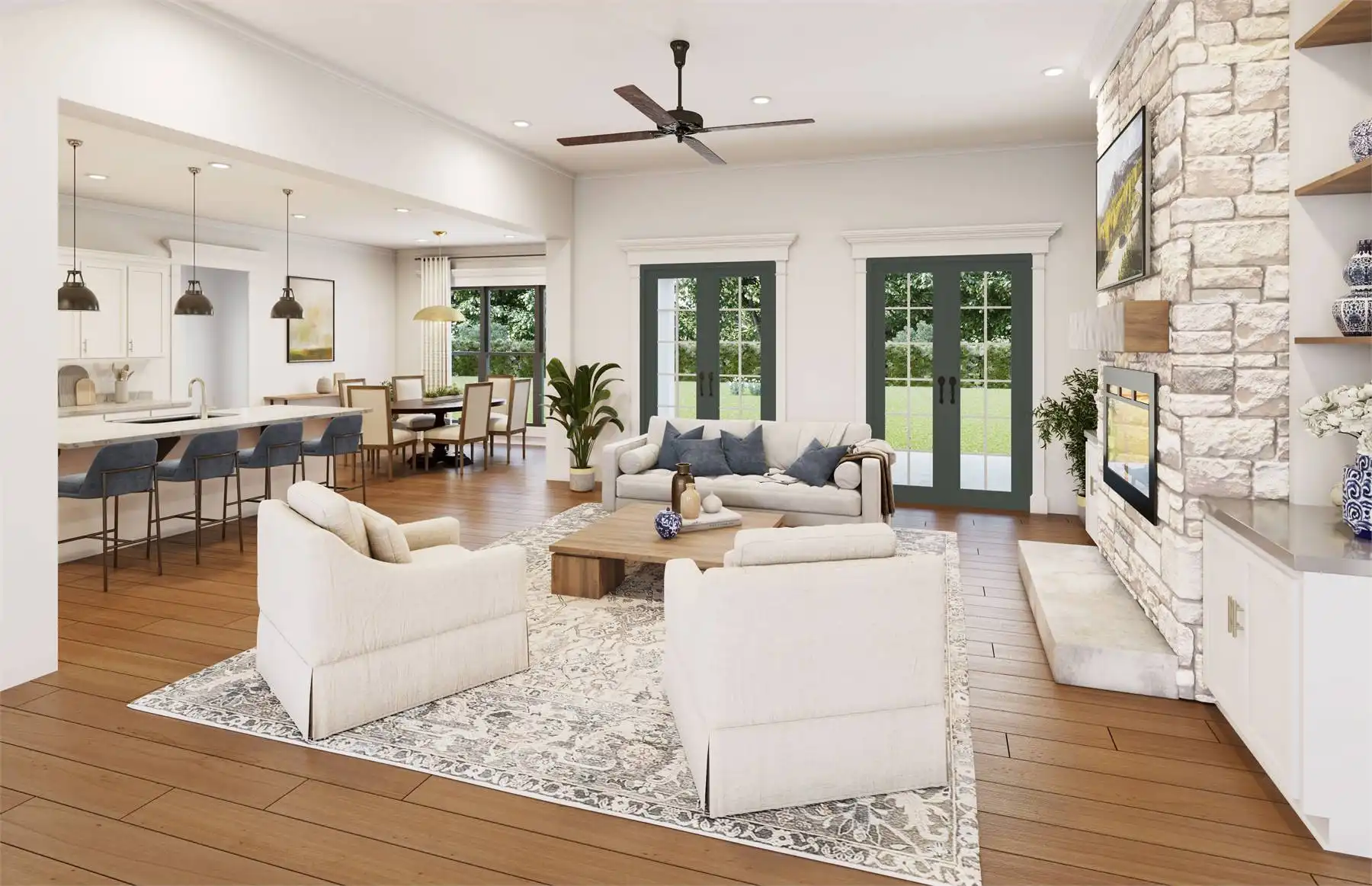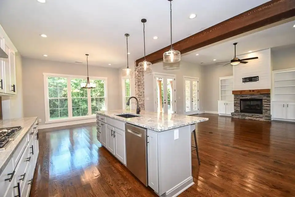 Explore this charming 2,469-square-foot modern farmhouse with an appealing board and batten exterior. Your entrance unfolds on a wraparound-covered front porch, guiding you into the home through a welcoming foyer. The well-appointed kitchen is designed with ample prep space, a large walk-in pantry, and a convenient breakfast nook, seamlessly connecting to the dining room for cohesive family time spent. The thoughtfully designed split-bedroom layout places two bedrooms on the left side of the house, accompanied by a full bathroom and a flex space, while the master suite graces the right side with a beautifully appointed spa-like ensuite bathroom. Finally, a two-car garage with a side entry positioned at the front of the house adds both convenience and a touch of architectural appeal.
