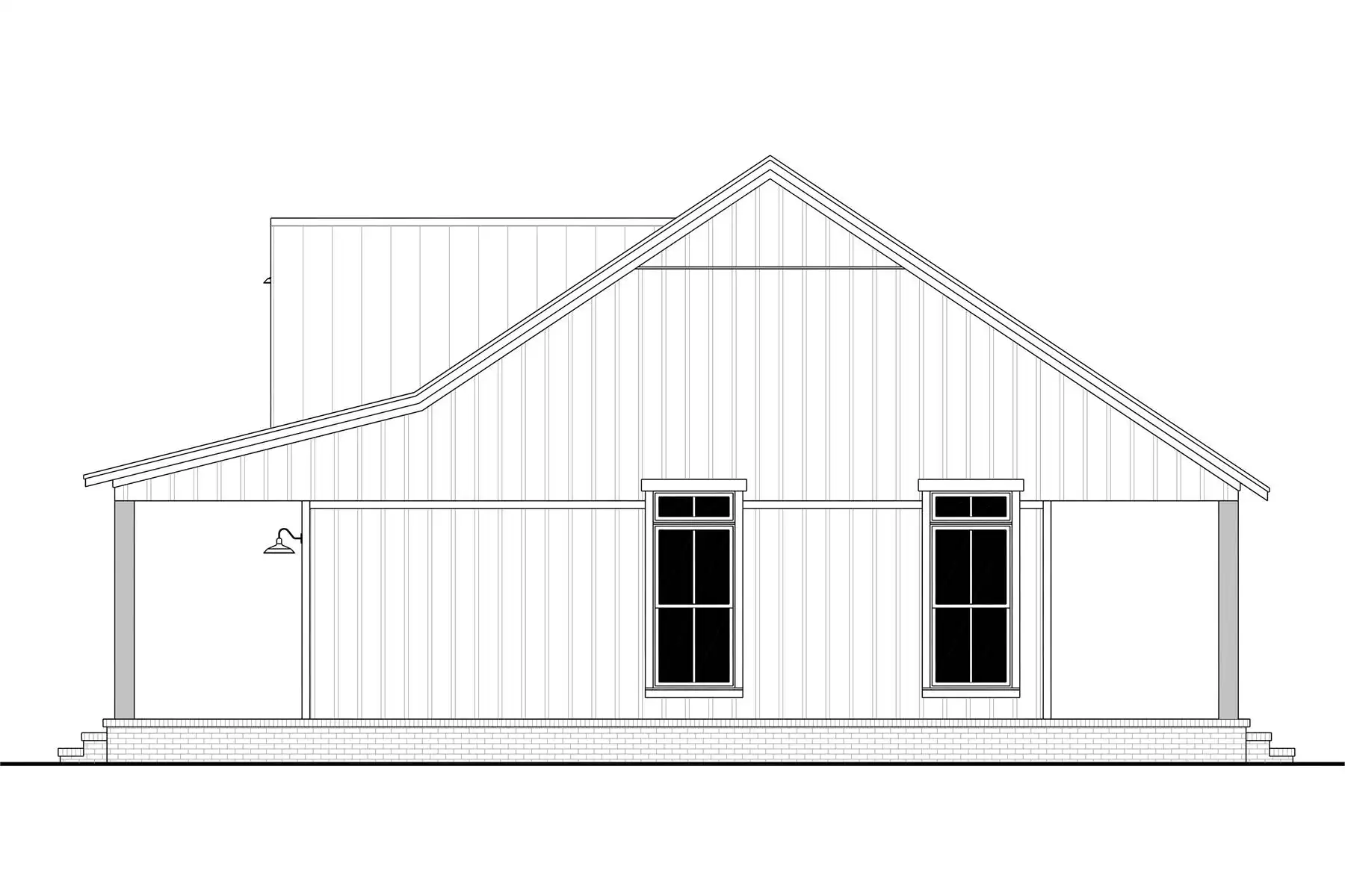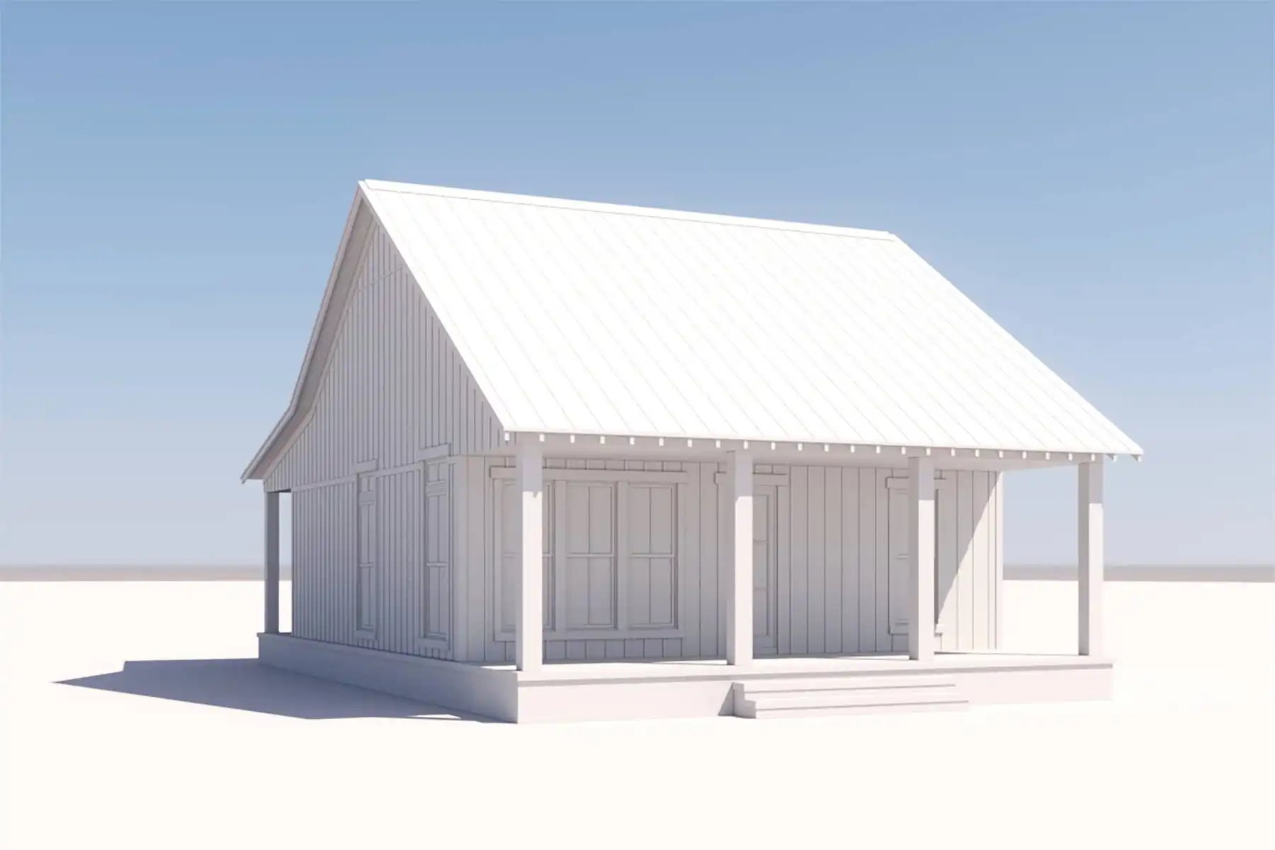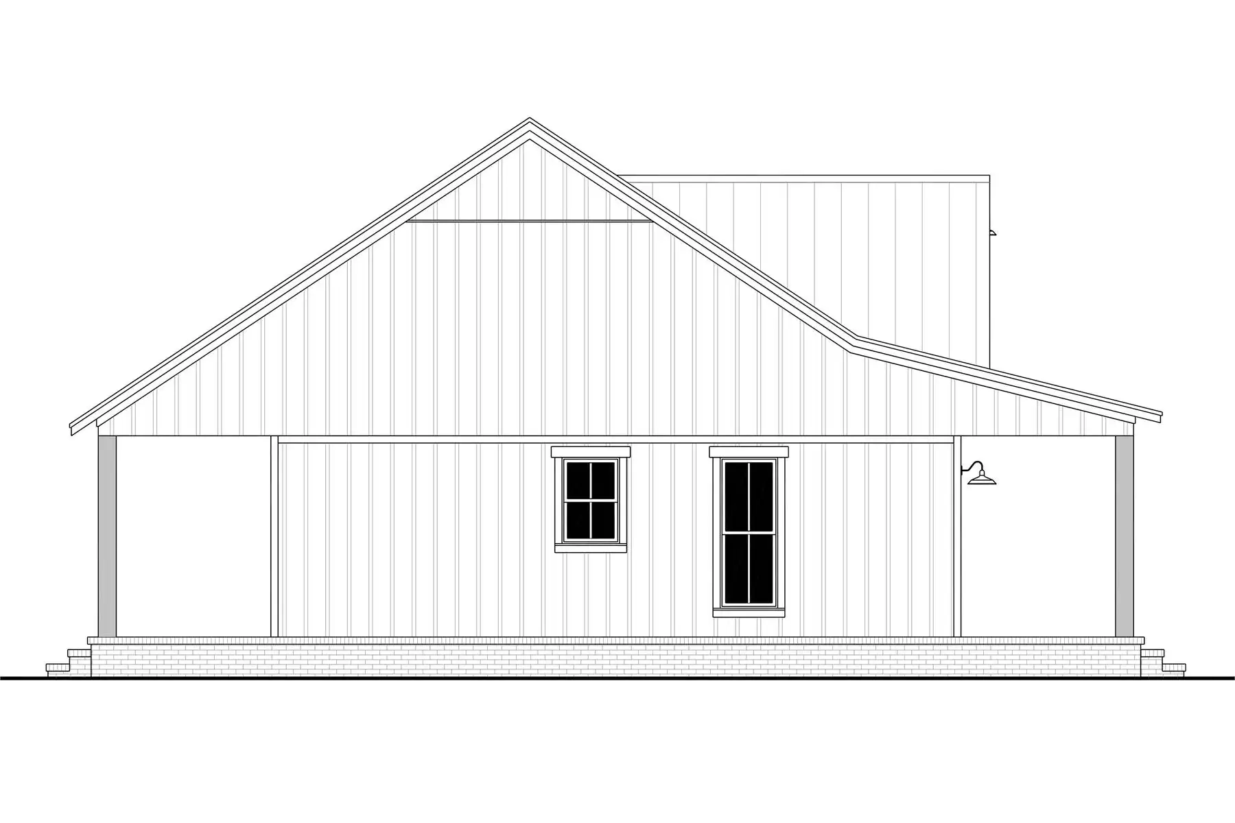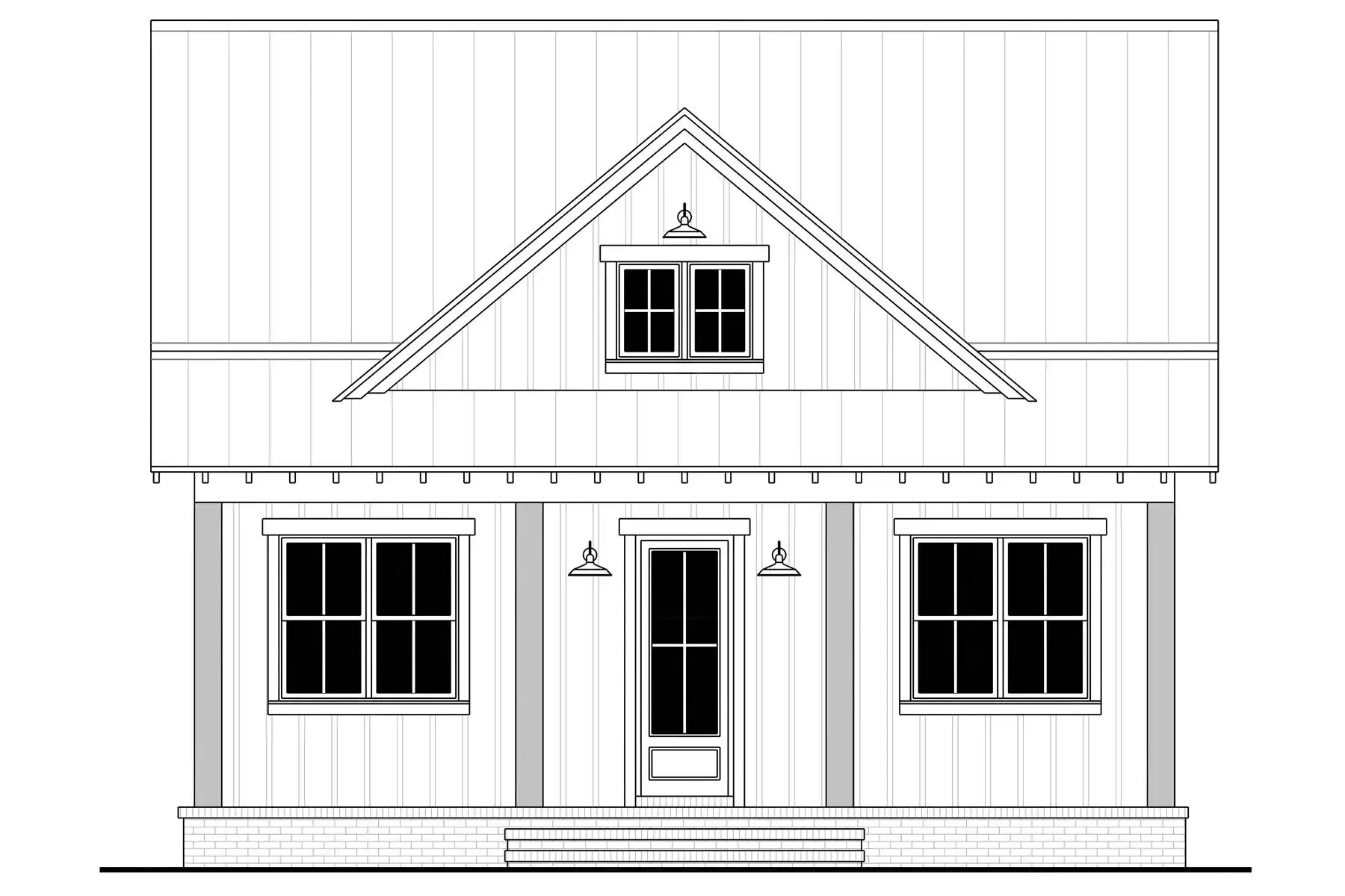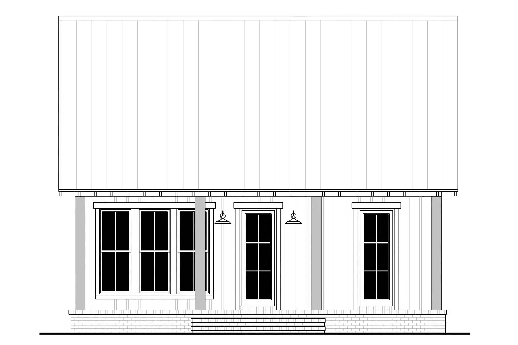 With its perfectly rectangular footprint and modest design with two bedrooms and one bathroom, House Plan 6735 makes a wonderful budget-friendly home for first-time buyers, empty nesters, or anybody looking for a vacation property. It offers 960 square feet inside and 480 square feet between the front and back porches. You'll love the beamed great room from the island kitchen in front to the vaulted living in back, complete with a fireplace. Both bedrooms are located in the side hallway, separated by the bathroom and closet with stacked laundry. This simple, super functional layout is sure to please!