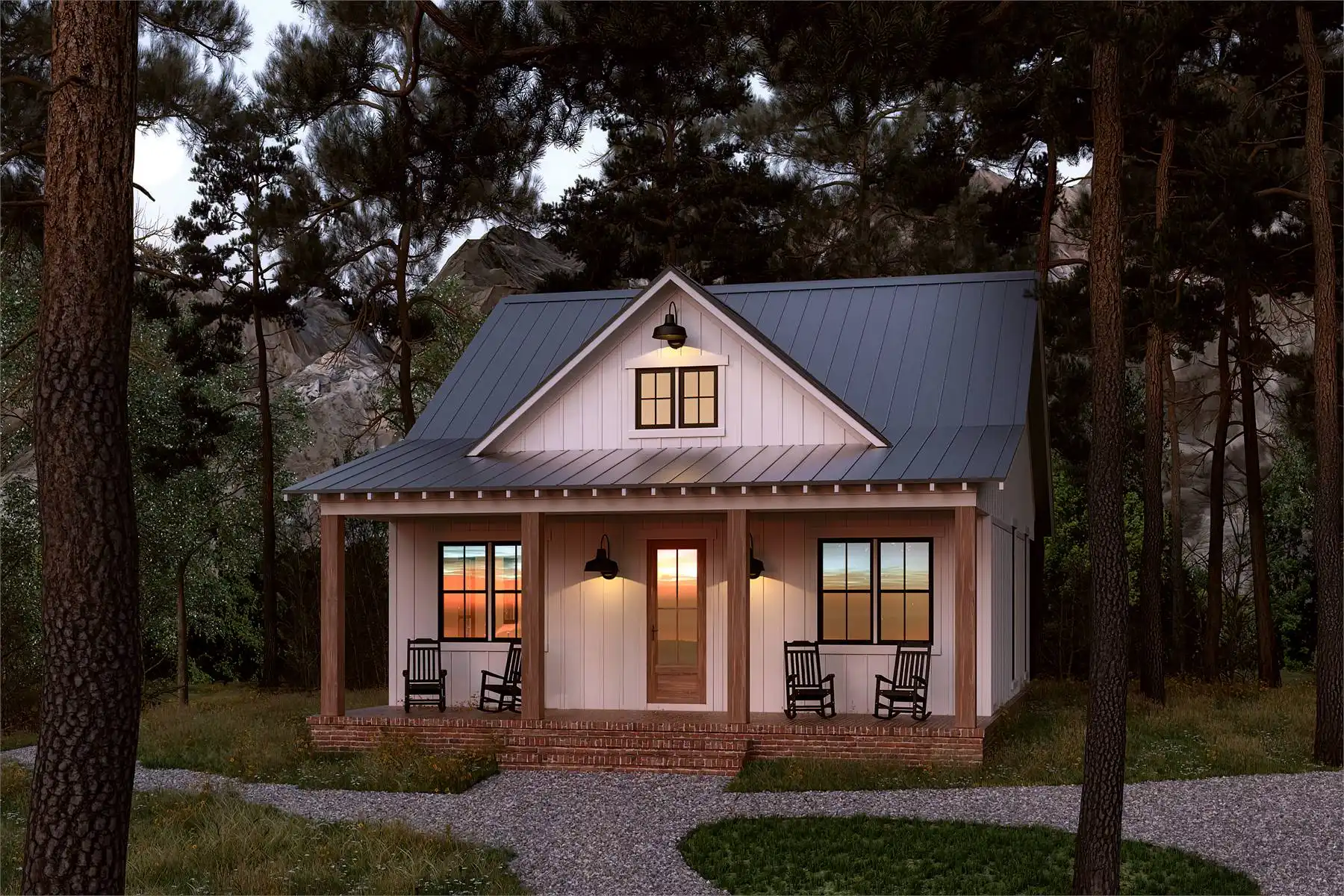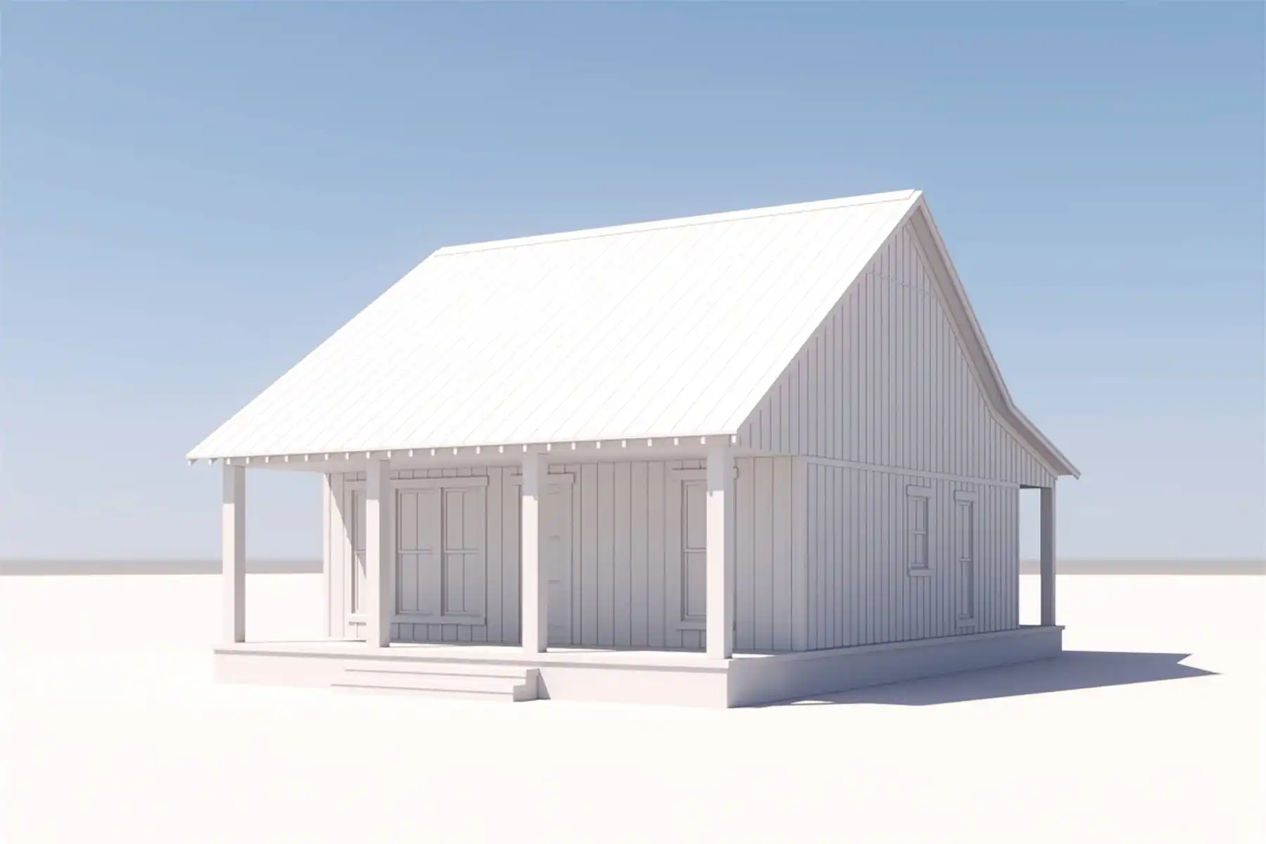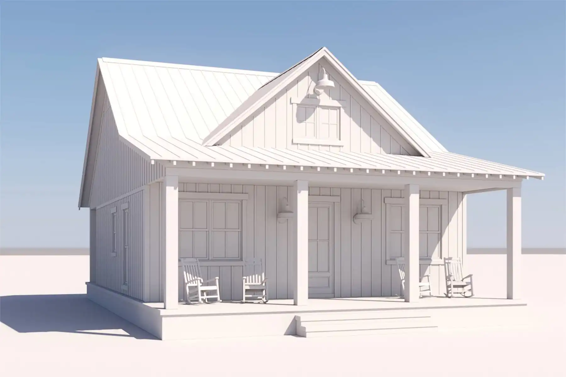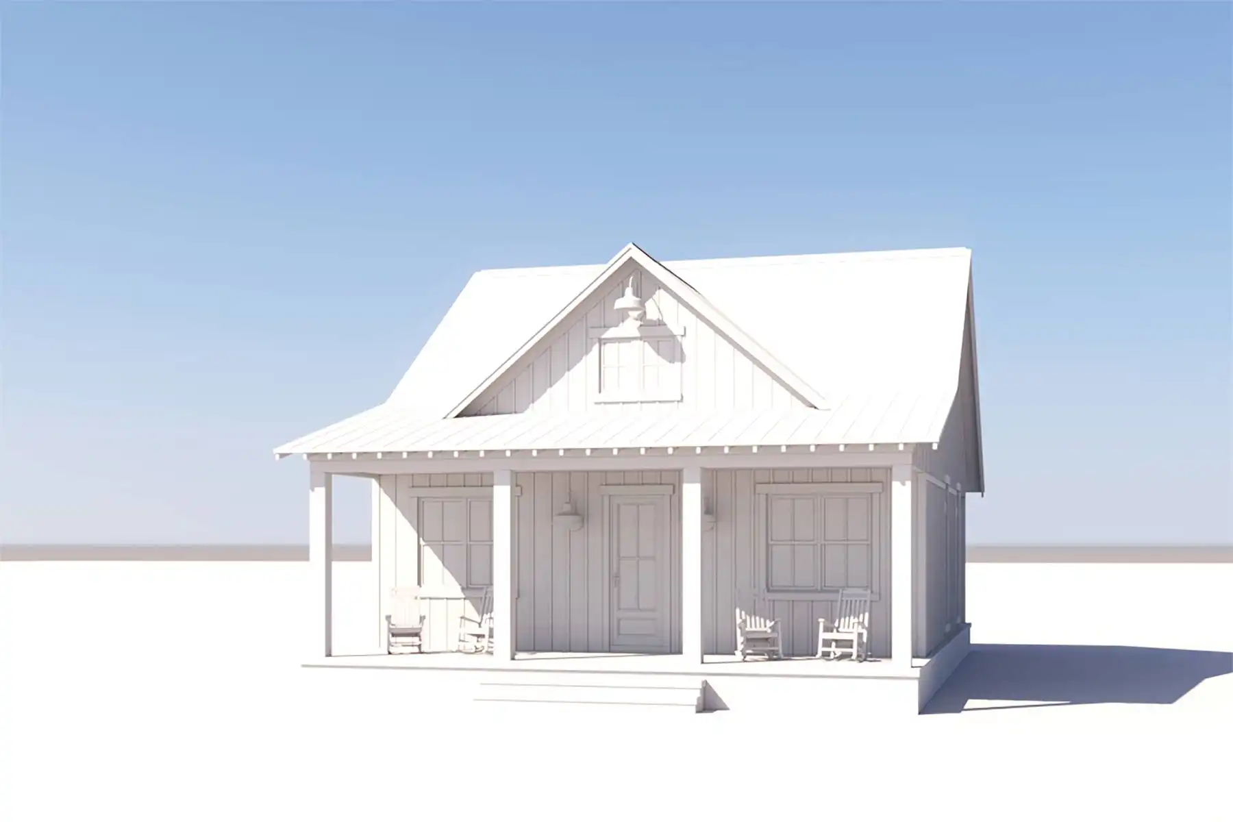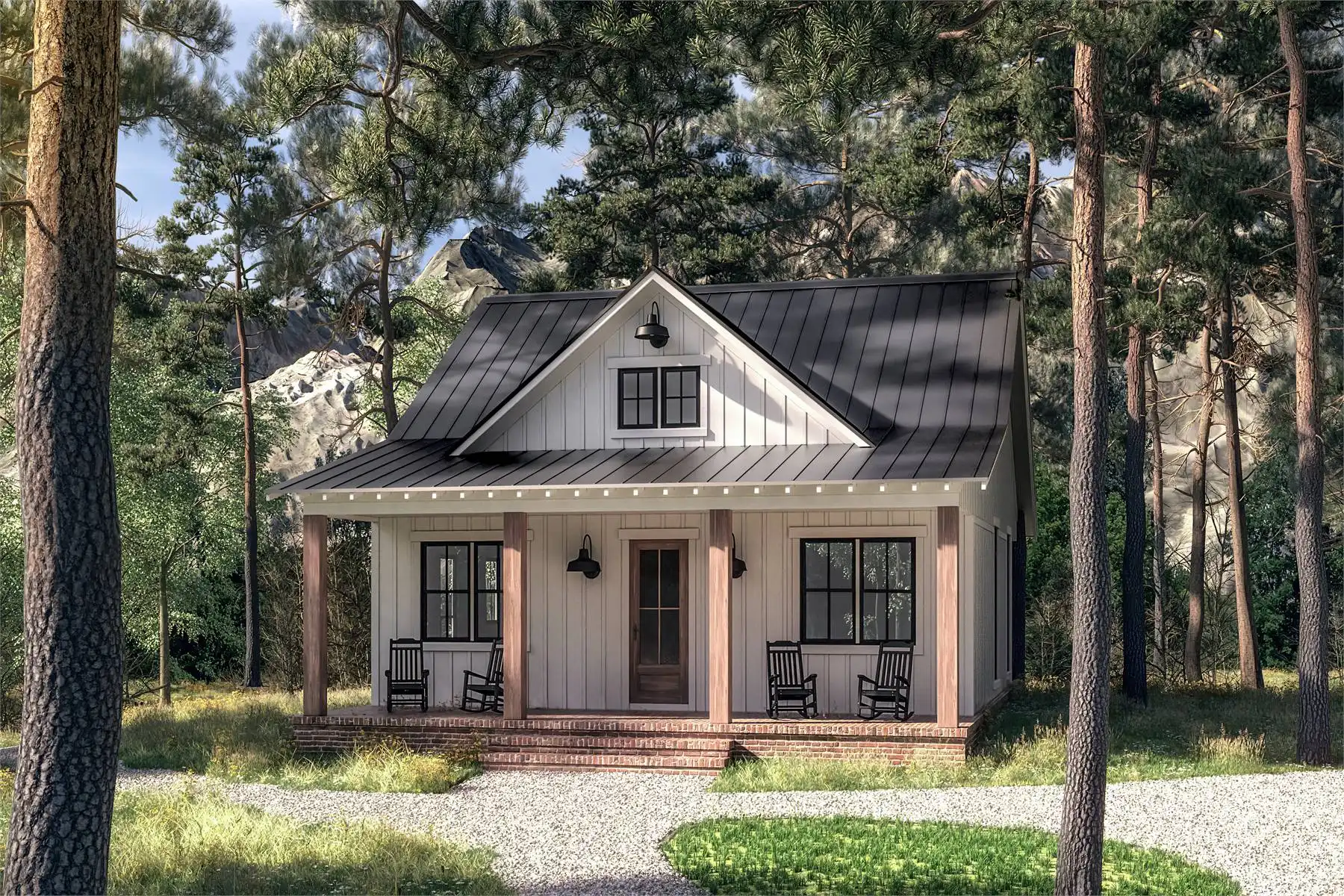 With its perfectly rectangular footprint and modest design with two bedrooms and one bathroom, House Plan 6735 makes a wonderful budget-friendly home for first-time buyers, empty nesters, or anybody looking for a vacation property. It offers 960 square feet inside and 480 square feet between the front and back porches. You'll love the beamed great room from the island kitchen in front to the vaulted living in back, complete with a fireplace. Both bedrooms are located in the side hallway, separated by the bathroom and closet with stacked laundry. This simple, super functional layout is sure to please!