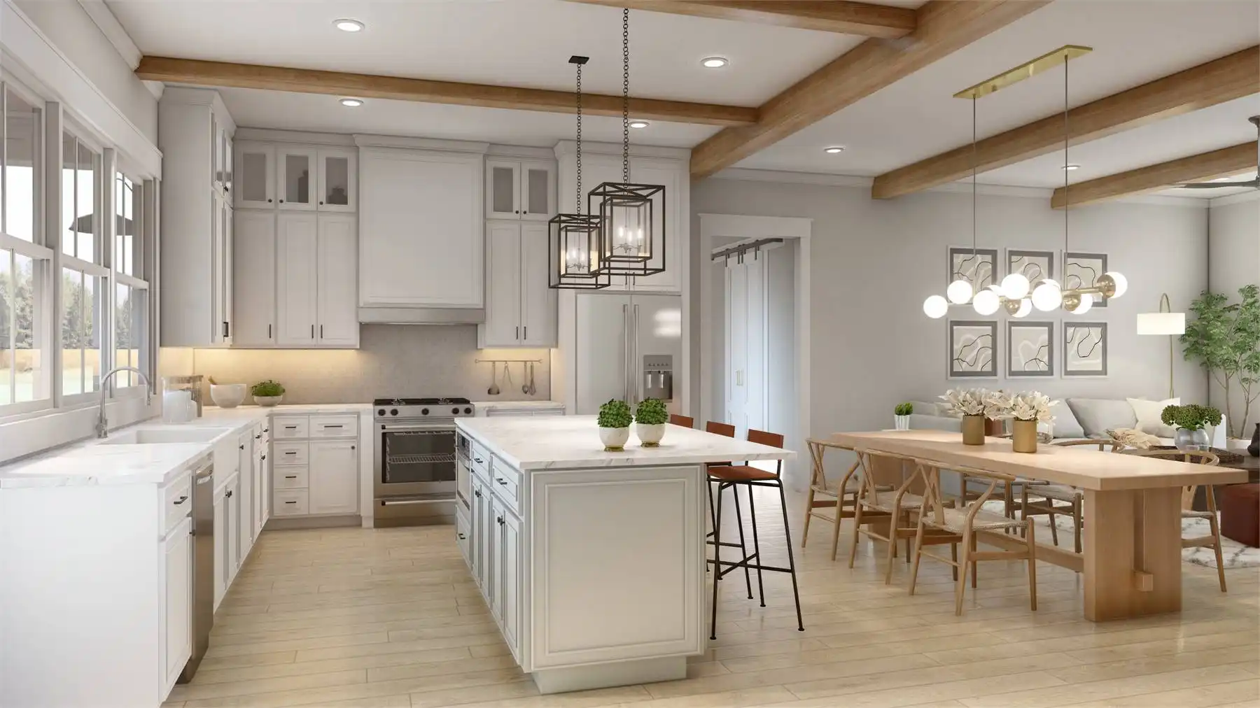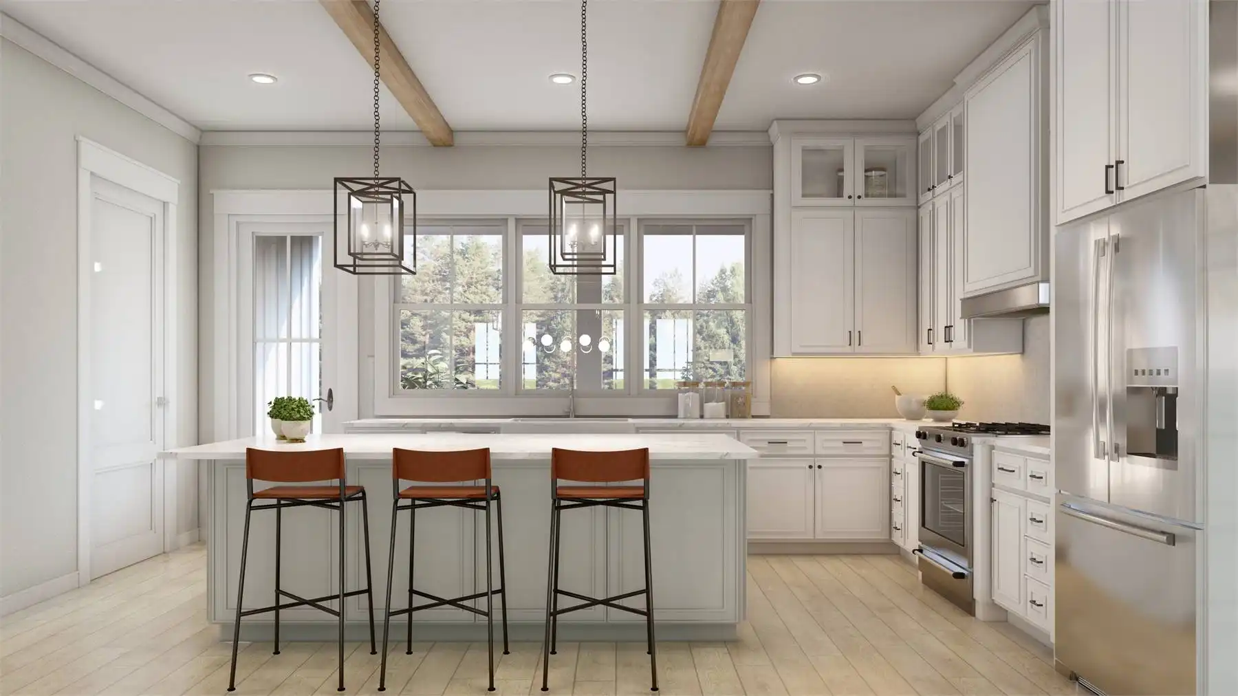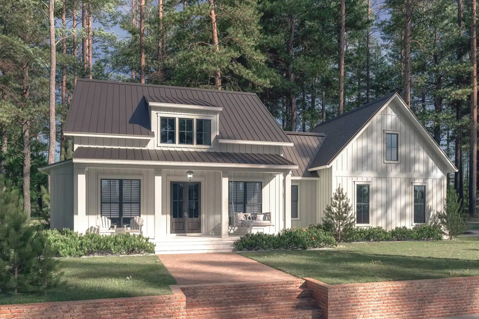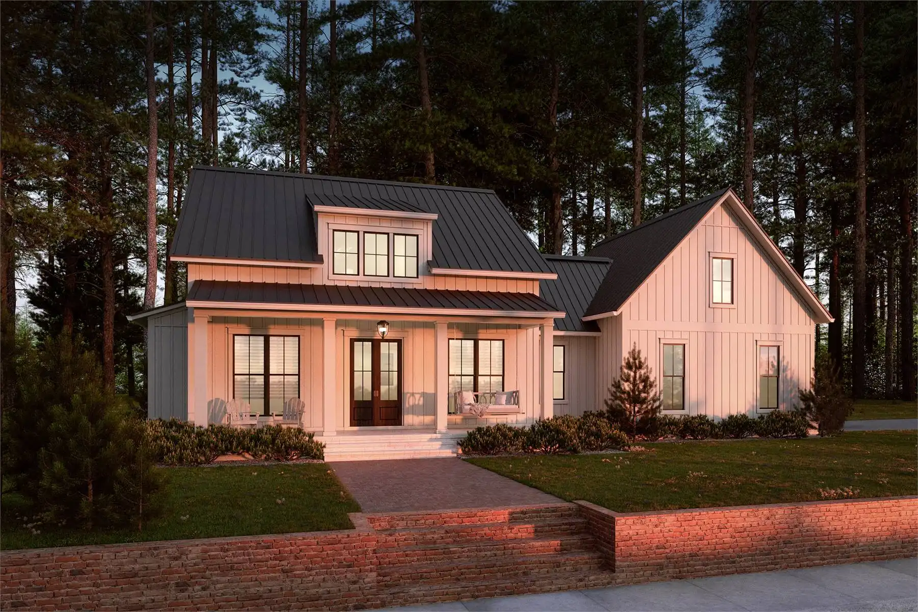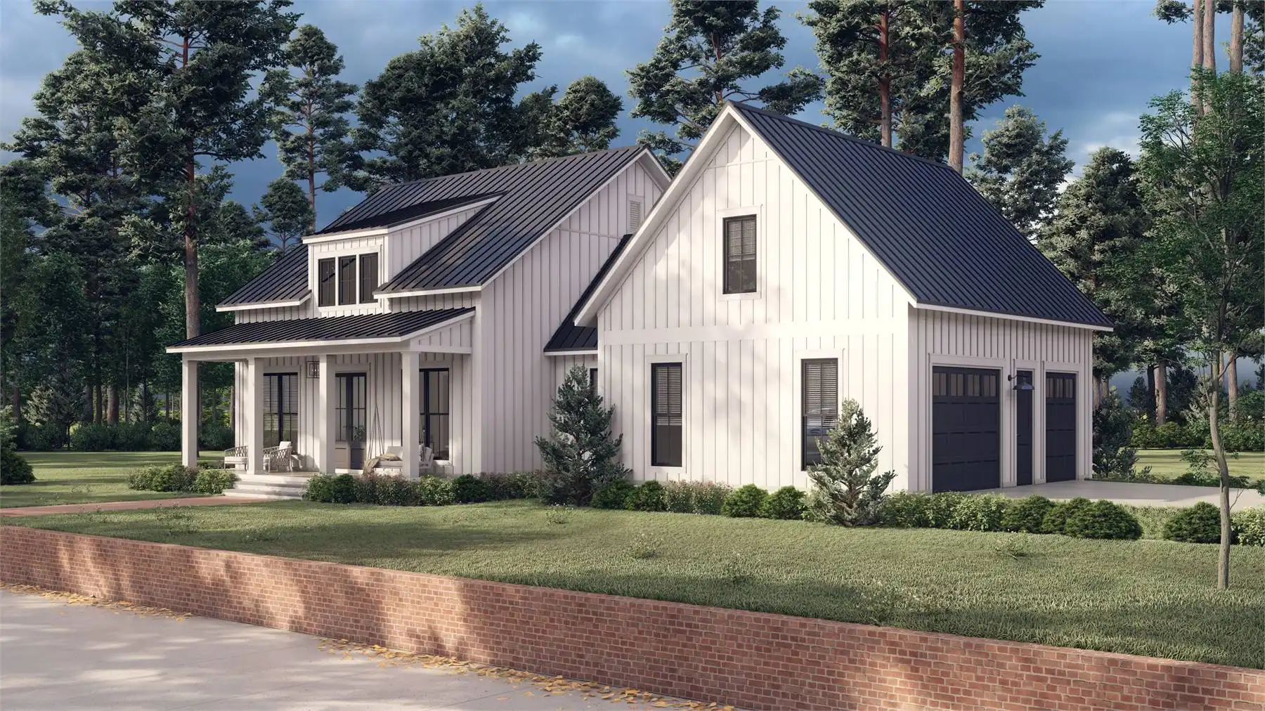 Between its beautiful country design and modest yet flexible interior offerings, House Plan 6741 could be the perfect home for families of all ages. It offers 1,448 square feet with two bedrooms and two baths on the main level, but there's also a bonus over the garage with another bath that broadens the possibilities. The open great room sits beneath a beamed ceiling for extra rustic charm. The bedrooms are located on one side, but are separated by the bathrooms and pantry so they have unique entrances and privacy. The hallway to the garage is on the other side of the house and includes the laundry room and stairs up to the bonus. House Plan 6741 would look great in a neighborhood or out on land, so consider it no matter where you plan to build!