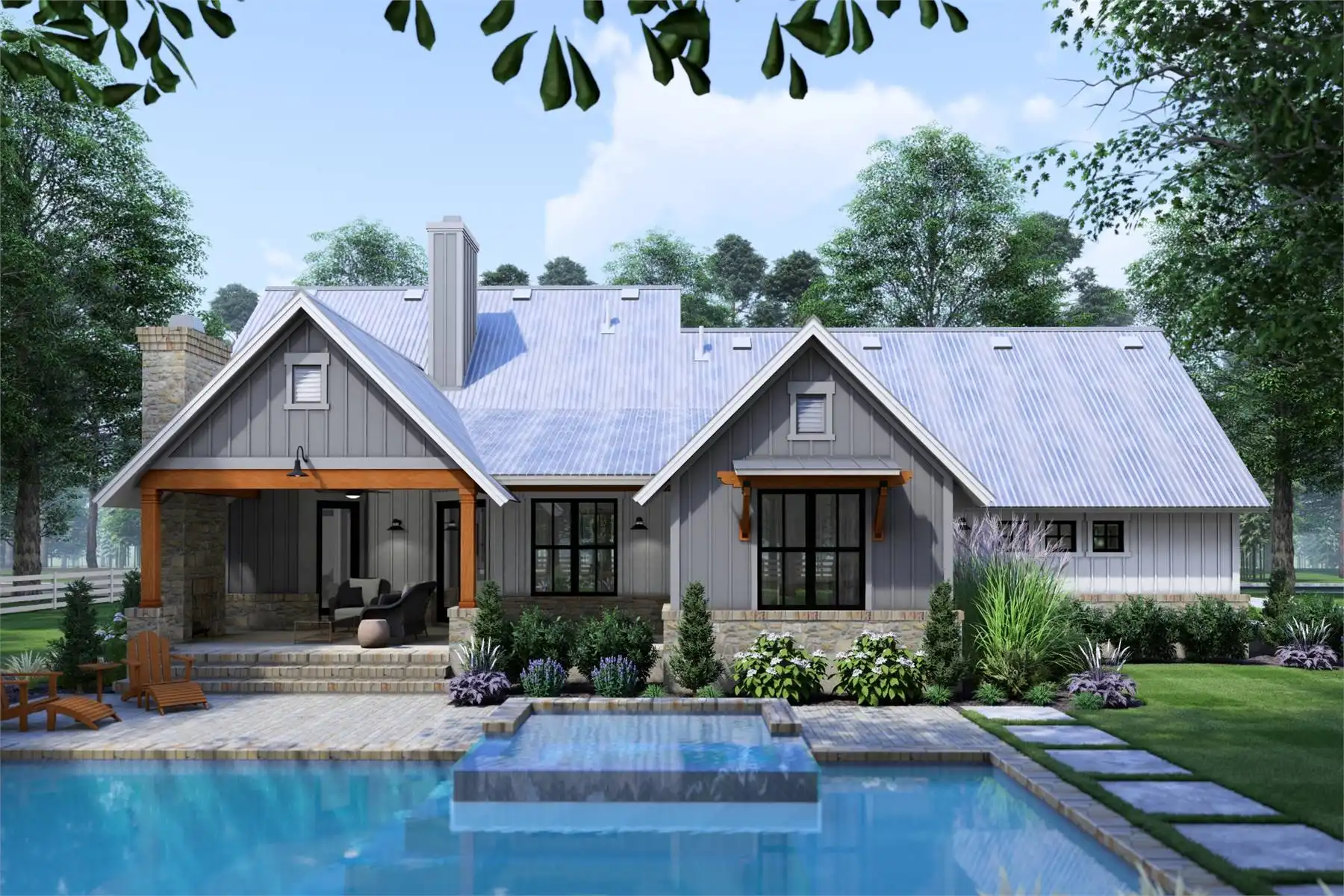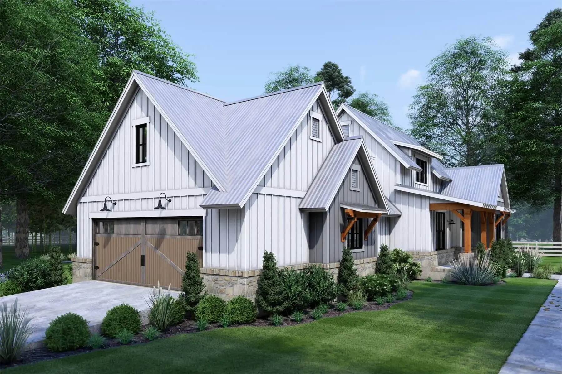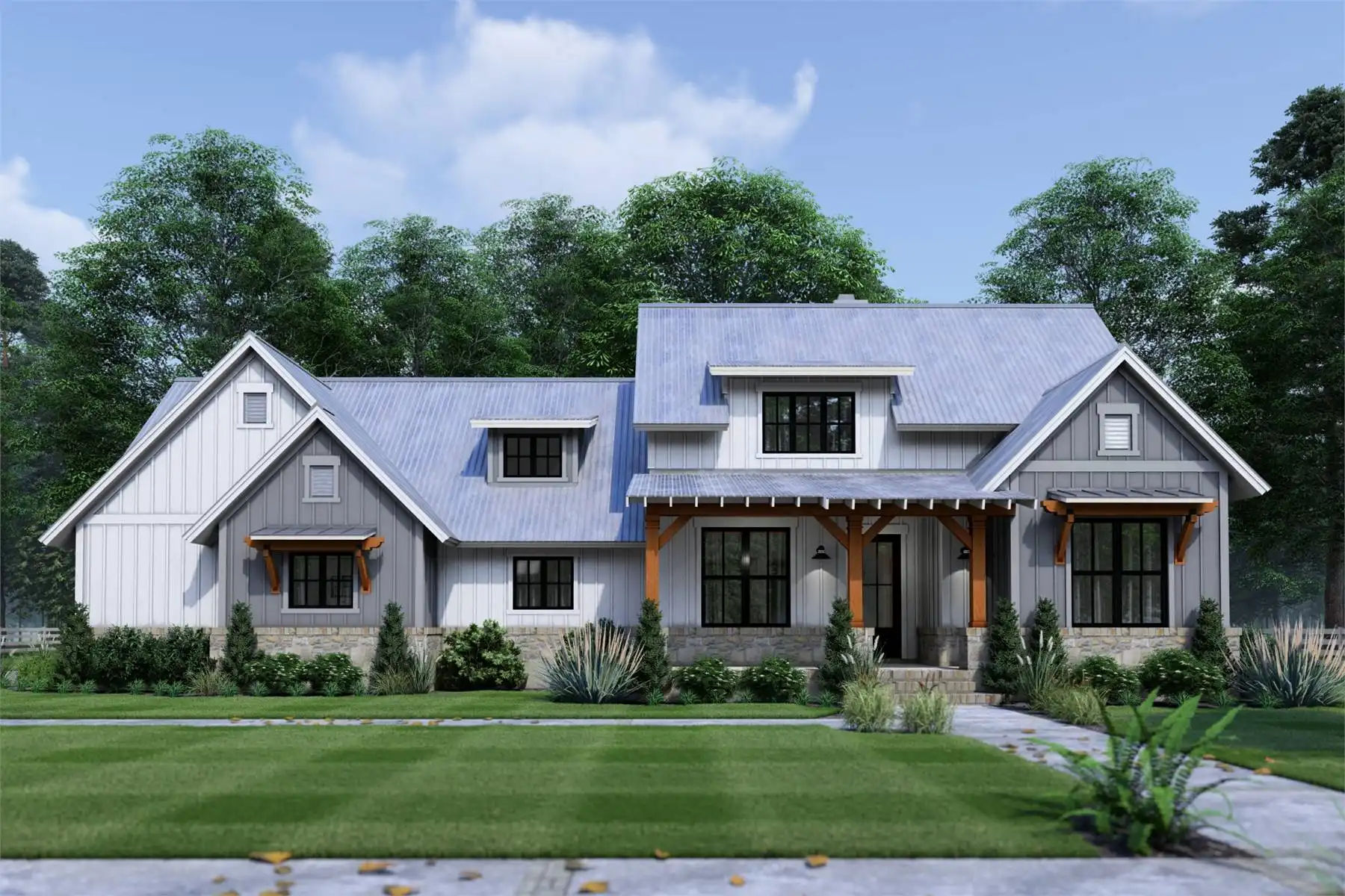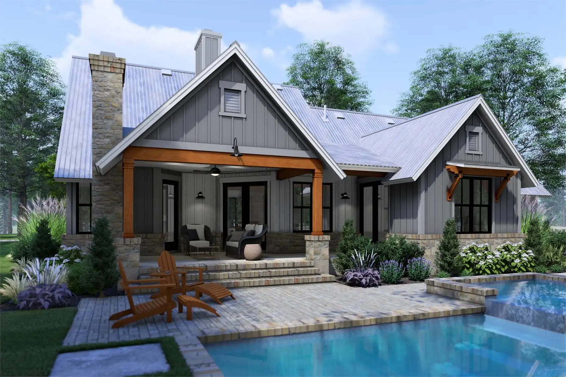 Welcome to House Plan 6747, your cottage retreat! This meticulously designed floor plan showcases a charming split-bedroom layout with 3 beds, 2 baths, and 1,477 square feet of enchanting living space. Step through the delightful front covered porch into a welcoming foyer that seamlessly flows into an open floor plan. The heart of your home, the family room, centers around a beautiful fireplace, creating a perfect space for cherished moments. The generous kitchen island caters to culinary needs, and the adjacent dining room sets the stage for delightful dinners. Experience privacy with the master bedroom and ensuite discreetly situated away from the two additional rooms. Upstairs, the optional bonus room offers flexibility for personalized expansion. Embrace the outdoors on the spacious covered rear porch, measuring 15 feet deep and 17 feet wide, complete with an outdoor fireplace for intimate gatherings.