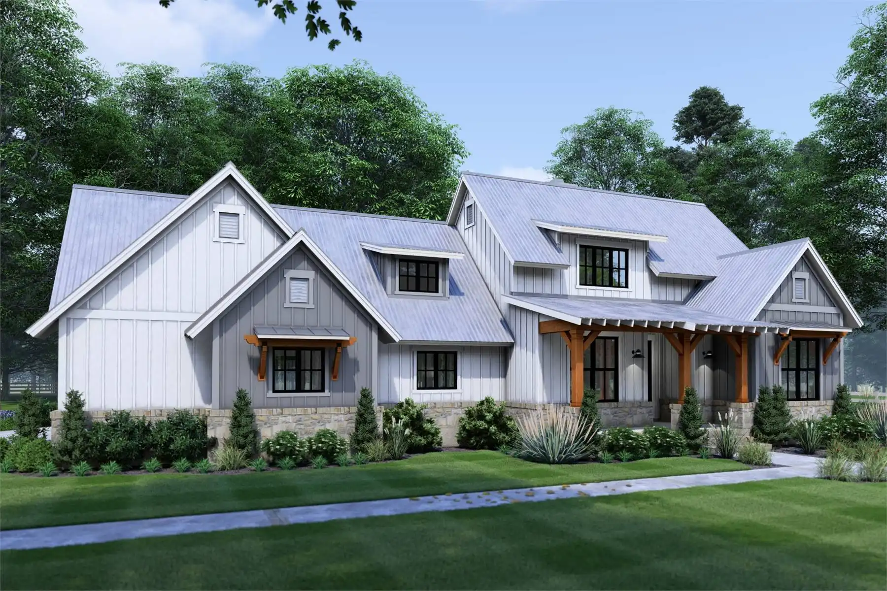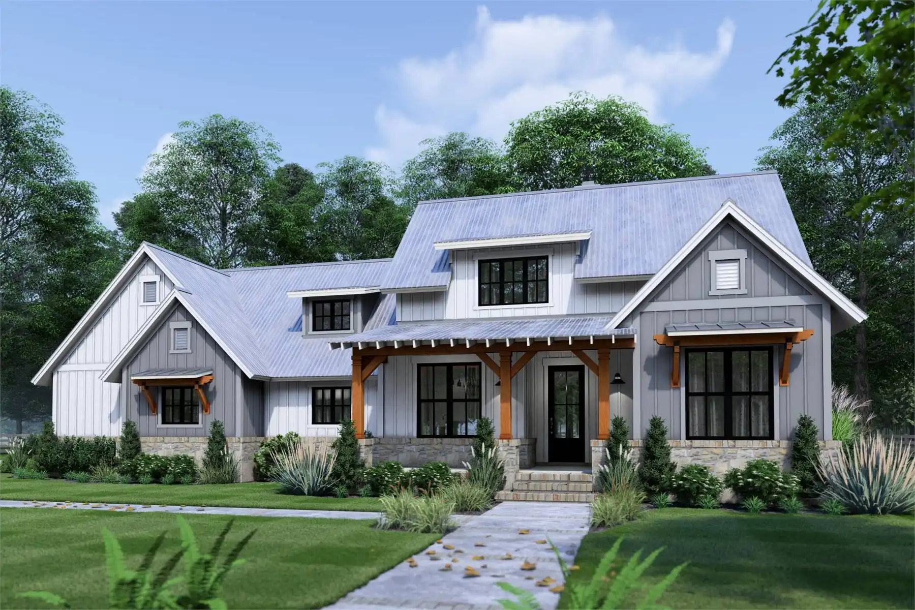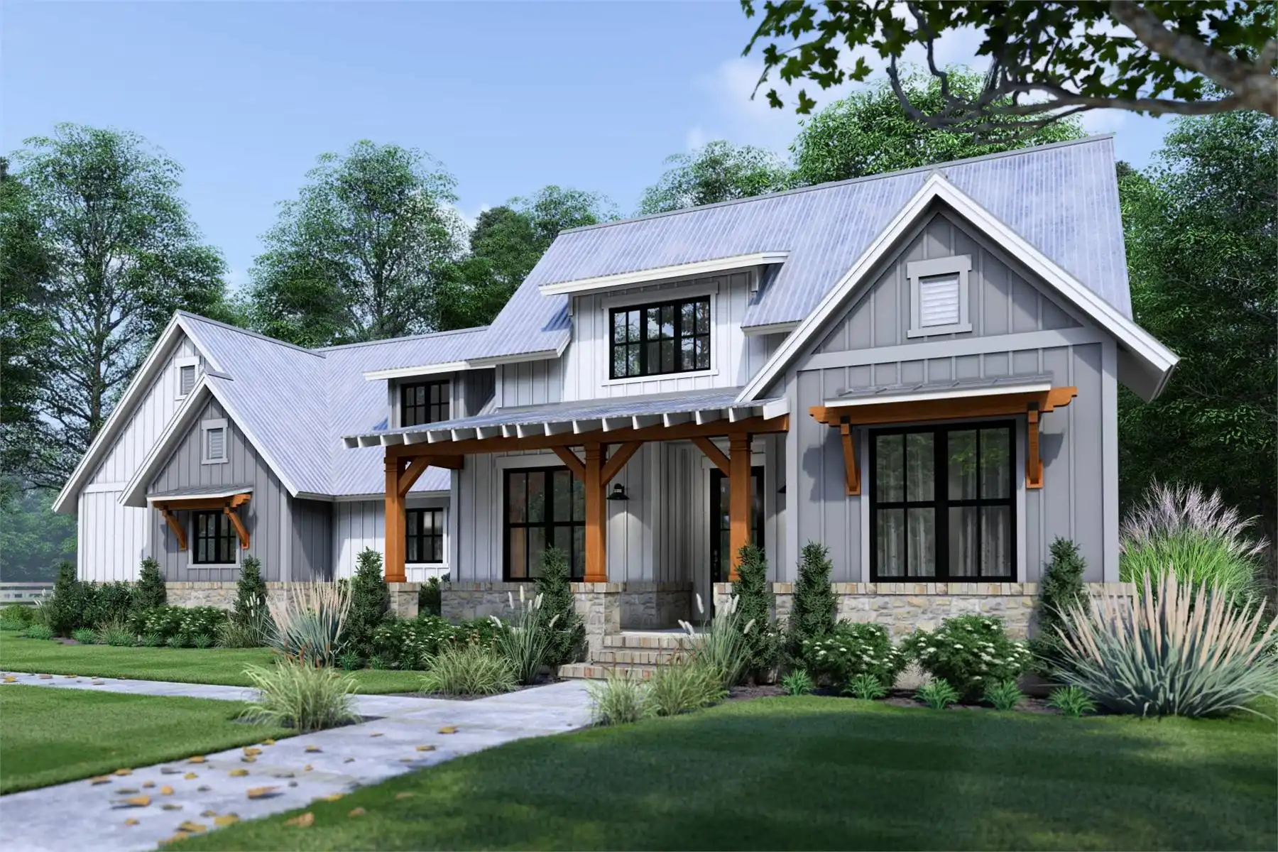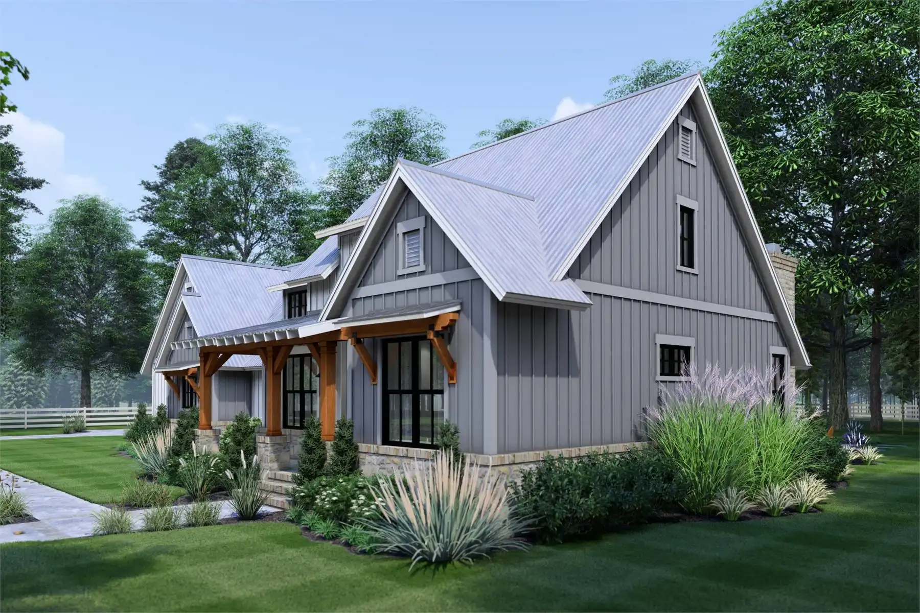 Welcome to House Plan 6747, your cottage retreat! This meticulously designed floor plan showcases a charming split-bedroom layout with 3 beds, 2 baths, and 1,477 square feet of enchanting living space. Step through the delightful front covered porch into a welcoming foyer that seamlessly flows into an open floor plan. The heart of your home, the family room, centers around a beautiful fireplace, creating a perfect space for cherished moments. The generous kitchen island caters to culinary needs, and the adjacent dining room sets the stage for delightful dinners. Experience privacy with the master bedroom and ensuite discreetly situated away from the two additional rooms. Upstairs, the optional bonus room offers flexibility for personalized expansion. Embrace the outdoors on the spacious covered rear porch, measuring 15 feet deep and 17 feet wide, complete with an outdoor fireplace for intimate gatherings.