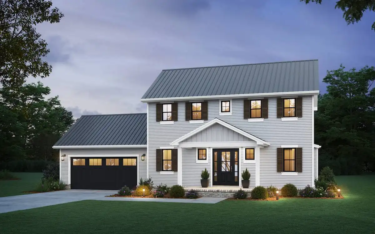 House Plan 6752 offers 1,807 square feet in a very affordable package perfect for today's families! The simple shape from the foundation to the roof helps minimize building costs without skimping on a great interior. The thoughtful two-story layout places the completely open living and a private office on the main floor while all three bedrooms are upstairs. The master suite has a private four-piece bath while the secondary bedrooms share a three-piece hall bath. The laundry is also placed upstairs for convenience. This home really checks the boxes without breaking the bank!