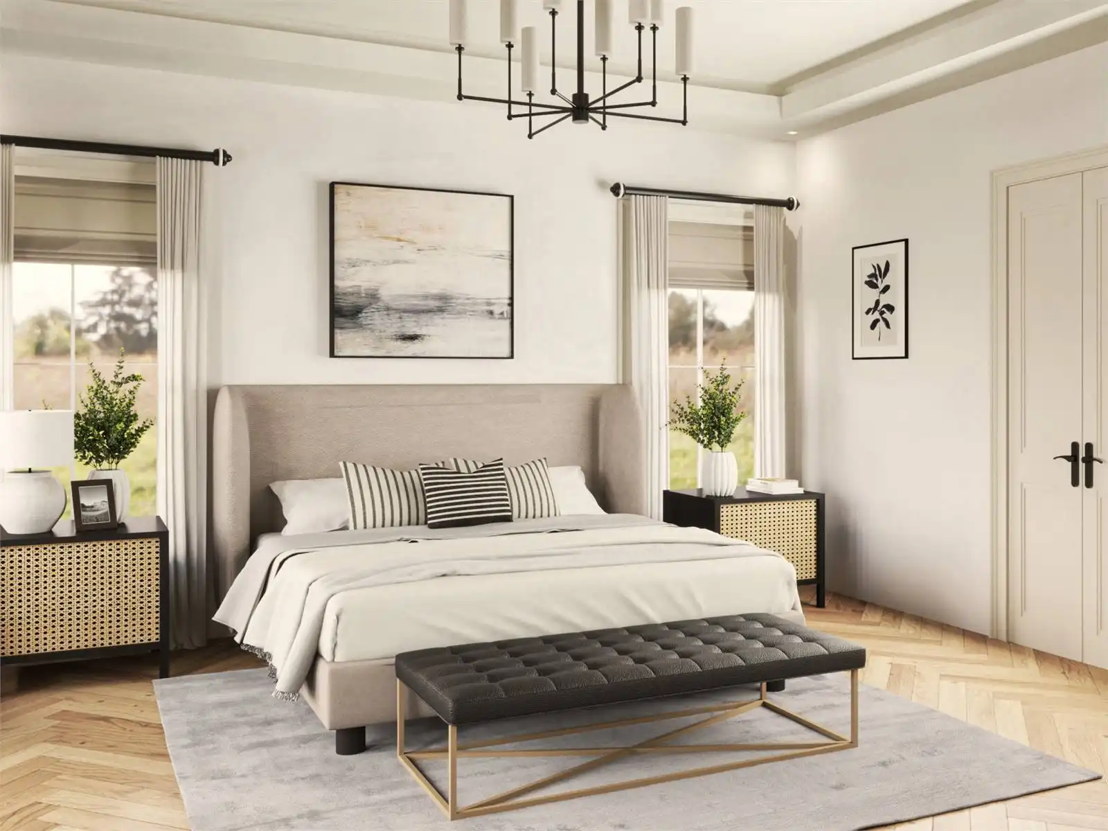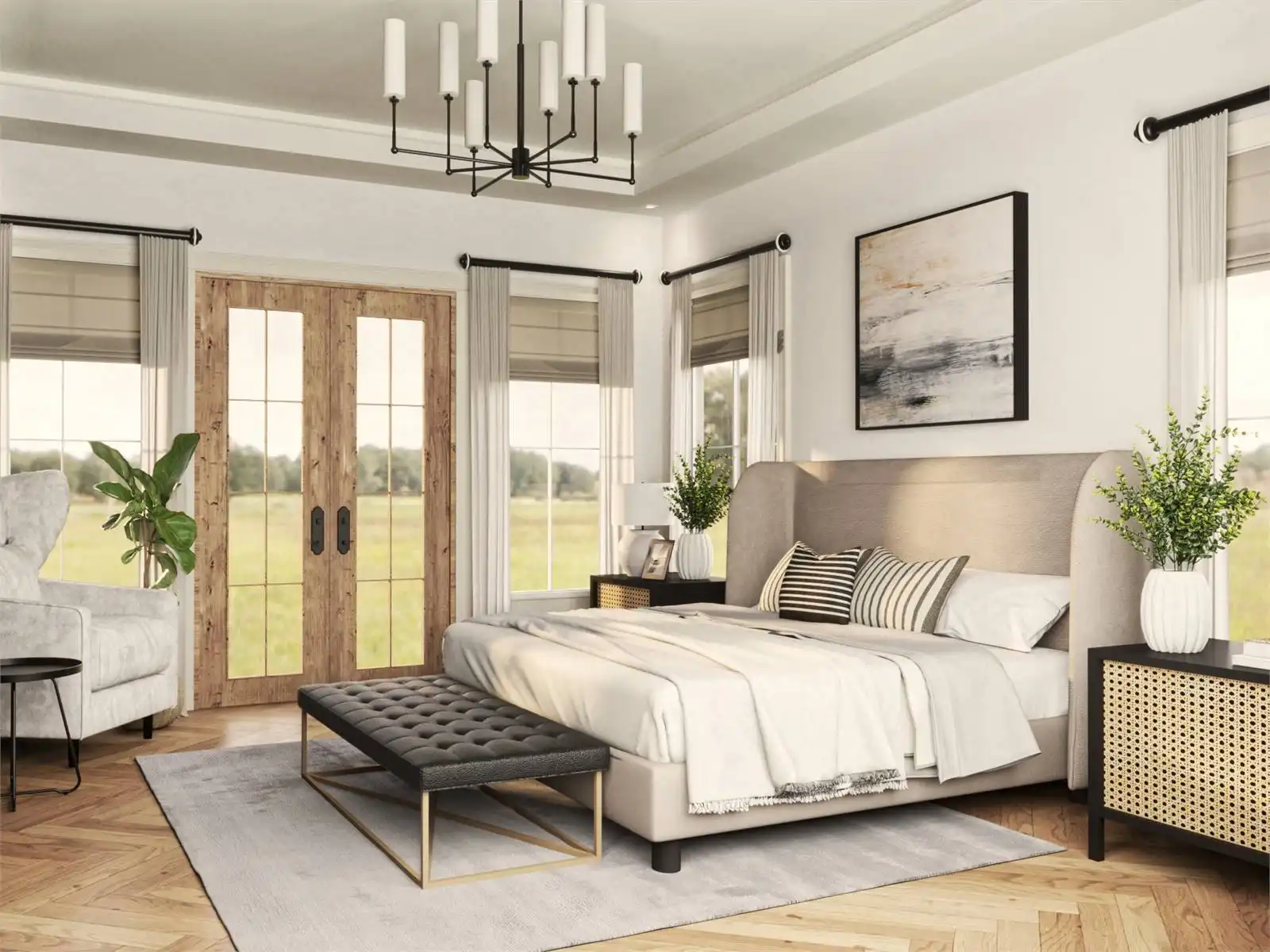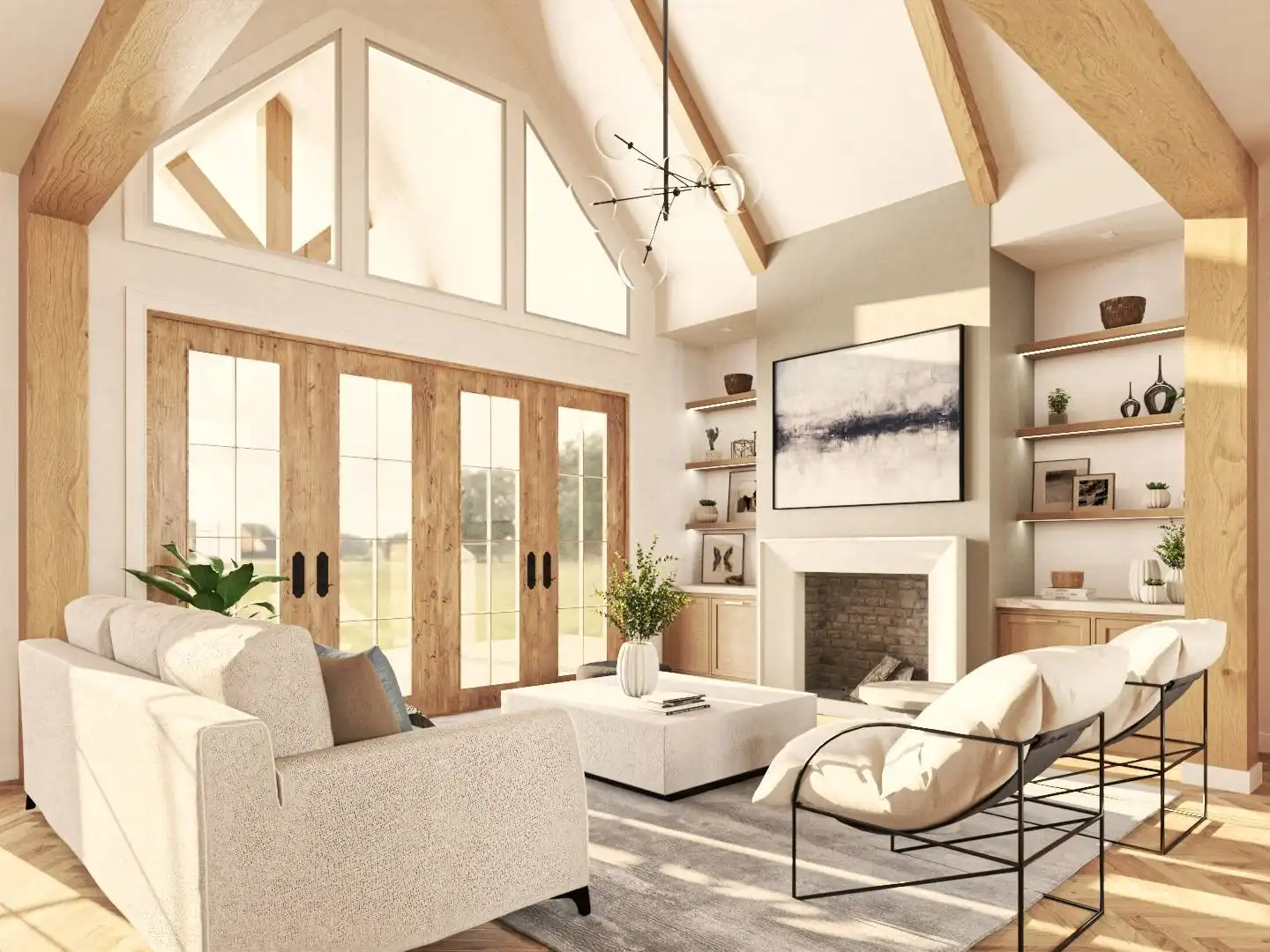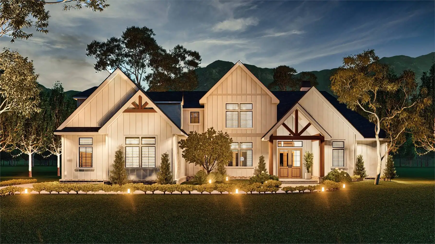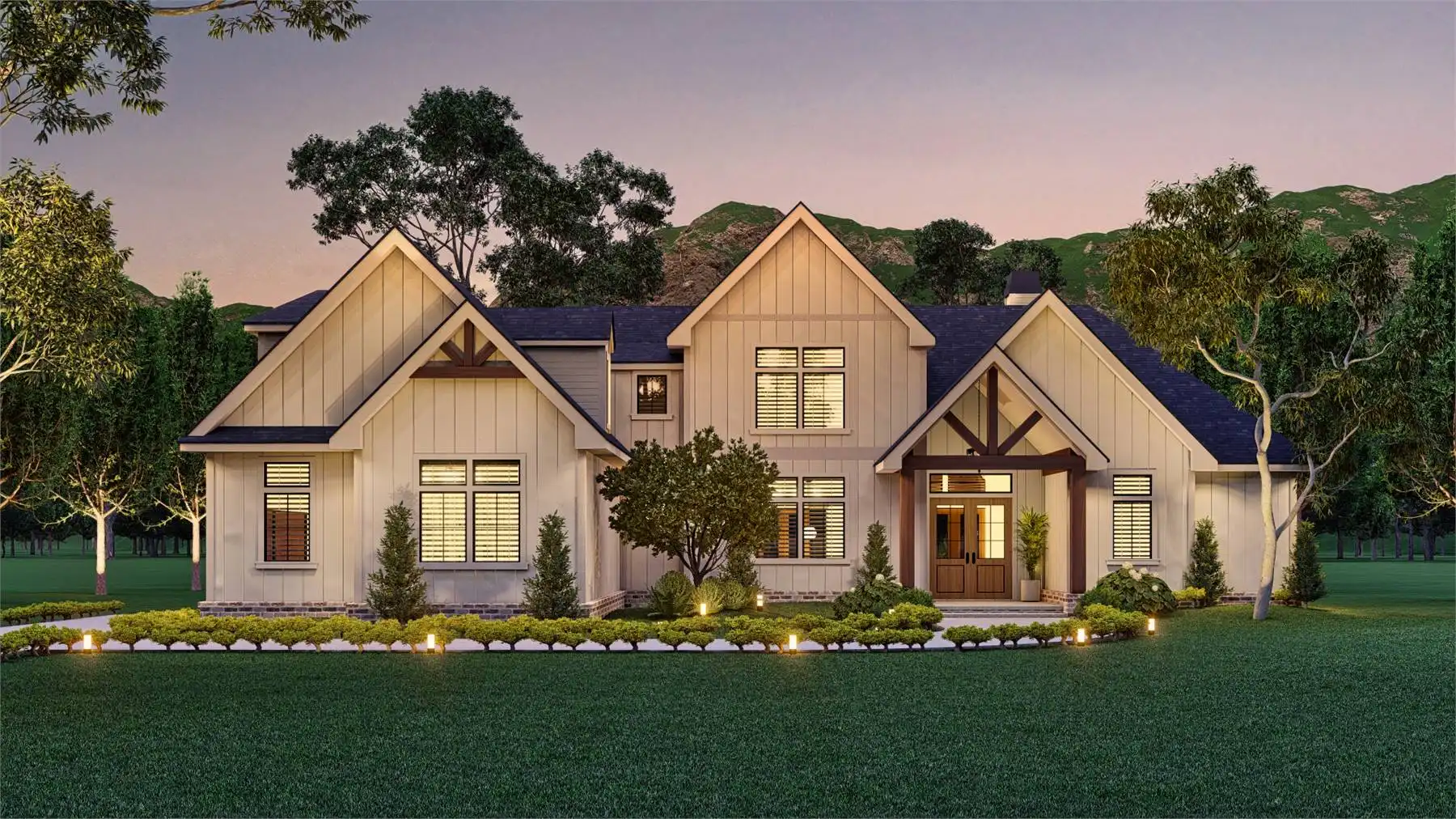 Welcome to a charming 2,091-square-foot board-and-batten farmhouse, a single-story haven that effortlessly marries rustic elegance with contemporary design. As you step through the front door, a vaulted ceiling foyer sets the tone, inviting you into the expansive open floor concept. The great room, adorned with a fireplace, seamlessly flows into the dining room and U-shaped kitchen with an island and a convenient butler pantry. The thoughtful split-bedroom layout positions the owner's bedroom on the left side, creating a private retreat complete with an ensuite and a walk-in closet. The remaining two bedrooms find their place on the opposite side of the house, ensuring optimal privacy. A magnificent outdoor patio in the rear and a covered porch beckon, providing perfect spaces to unwind and enjoy the beauty of the surroundings. With three bedrooms, two baths, and a two-car garage, this farmhouse is a harmonious blend of functional design and inviting warmth.