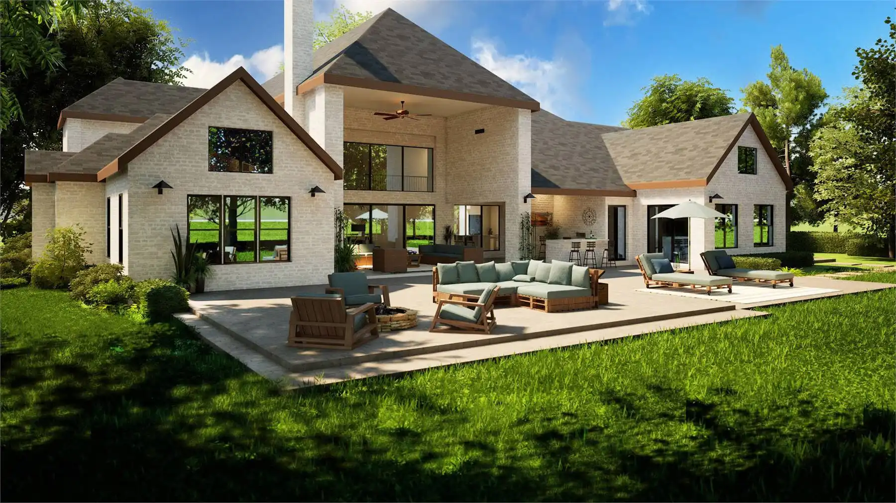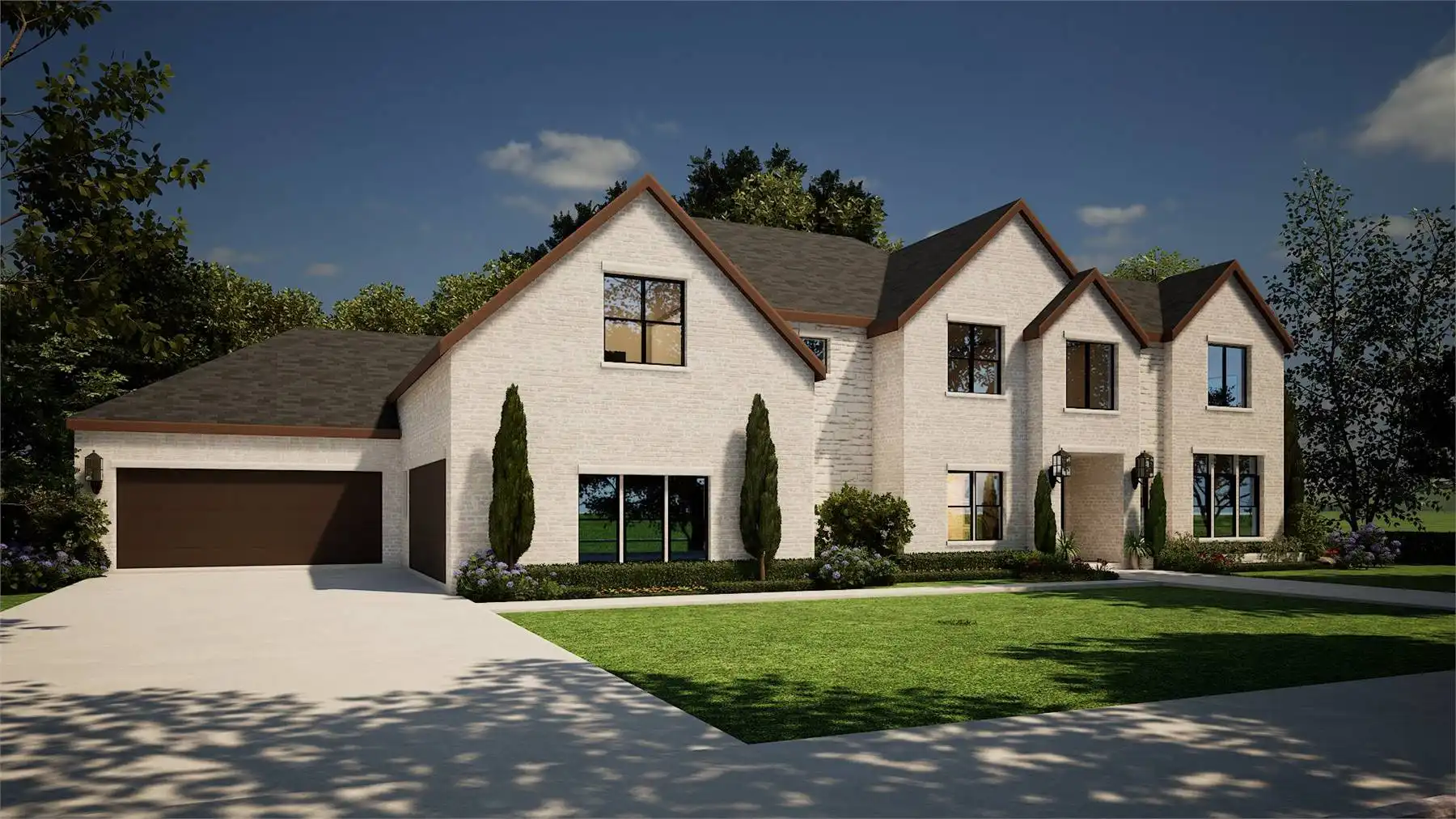 Experience the allure of a 4,575 square foot country home designed to enchant. Upon entering through the foyer, a welcoming sitting area on the left guides you to a conveniently located home office. To the right, discover a secluded guest suite with a private bath, providing a retreat-like experience. Continue your journey into an expansive family room, an ideal space for entertaining guests or gathering with family around the warmth of the fireplace in the lounge. Extend the fun to the game room for additional enjoyment. The open floor plan effortlessly guides you through the dining area and a beautiful U-shaped kitchen, featuring an island and a practical walk-in pantry. On the left side of the house, explore the luxurious owner suite with a walk-in closet and a spa-inspired bathroom, creating a haven for relaxation. Ascend the stairs to find two bedrooms and a full bath, offering additional private spaces. To conclude the tour, the garage accommodates four vehicles, providing ample space for your convenience.