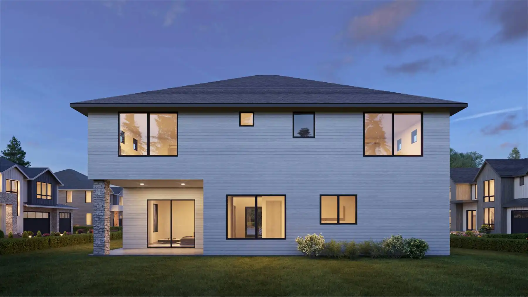 House Plan 6762 is a spacious two-story transitional design ideal for building in a neighborhood thanks to its simple shape and thoughtful layout. Inside, you'll find 3,539 square feet, four bedrooms, and four bathrooms to serve a family well. There's a den and a full bath placed off the foyer while the common areas including the great room and island kitchen spread out in the back of the house. Head up the stairs to find all four bedrooms. Each one is placed in a corner, and none share a direct wall thanks to the positions of the bathrooms, laundry, and hall space! The master suite has a five-piece bath while the Jack-and-Jill bedrooms share a four-piece bath and the final bedroom sits beside a three-piece bath. Just imagine how you could make House Plan 6762 your own!
