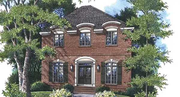 The formal facade of this narrow lot plan gives way to all the modern amenities expected in today's home. Traditional rooms in front, but the WOW factor as you enter the rear of the home from either direction. The foyer opens to a soaring two story family room and open staircase, while the rear entry boasts a 2nd floor dormer over the staircase that leads to the private suite over the garage.