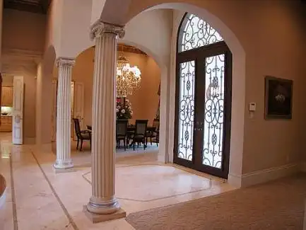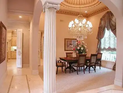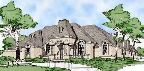 This dream home Estate you'll notice the 15' ceiling porch and foyer, feeling right at home. Large decorative pillars define the perimeters of the music, dining and living rooms. To the left of the foyer is the formal living room with a view to one of the verandas, and to the right is the elegant dining room with entry to the kitchen through the butlery, as well as the utility room. The kitchen has a large breakfast bar to share with the breakfast area and family room as well as a free-standing center island for extra counter space. The circular breakfast room with cozy fireplace offers access to the backyard and the patio. The light filled family room is the ultimate family gathering area featuring the fireplace and floor to ceiling windows allowing for a perfect view of the concept pool. Past the family room is a family bedroom with walk-in closet and a full bath. A three-car garage and private den with storage, refrigerator, a fireplace, patio access, and a powder room is locate at the rear of the house. A serene study with warming fireplace and coffered ceiling is located just off the gallery between the living and music rooms. A front family bedroom offers a walk-in closet and a full bath. The luxurious master suite offers a circular sitting area, warming fireplace, French doors to the stoop and a lavish master bath with his and hers vanities, separate shower, garden tub and his and hers wardrobes. The second level offers a large guest suite with private stairs, a walk-in closet, a full bath, and a walk-out to the private second story balcony. A media room located next to the guest suite completes this luxury mansion house plan.
