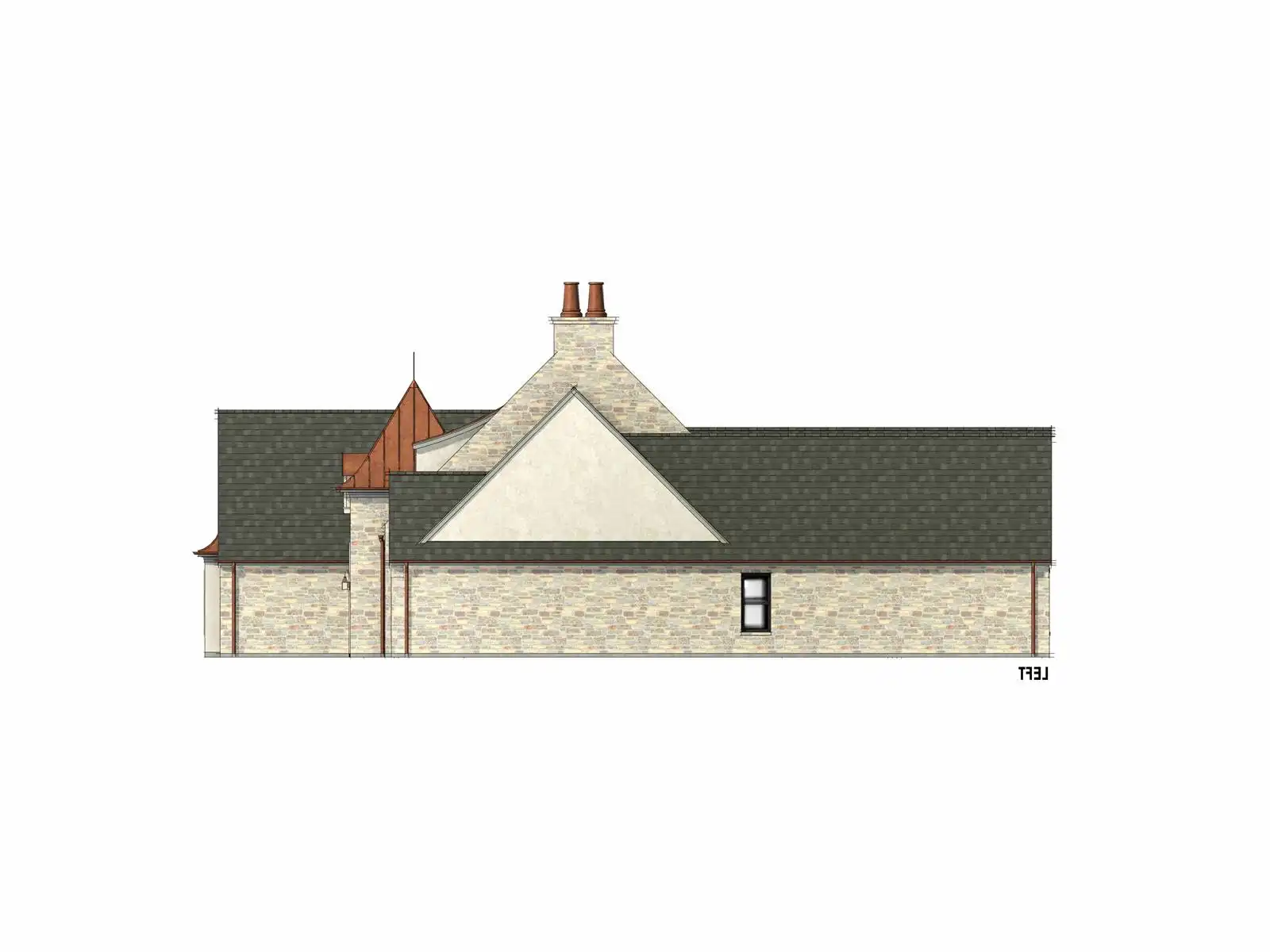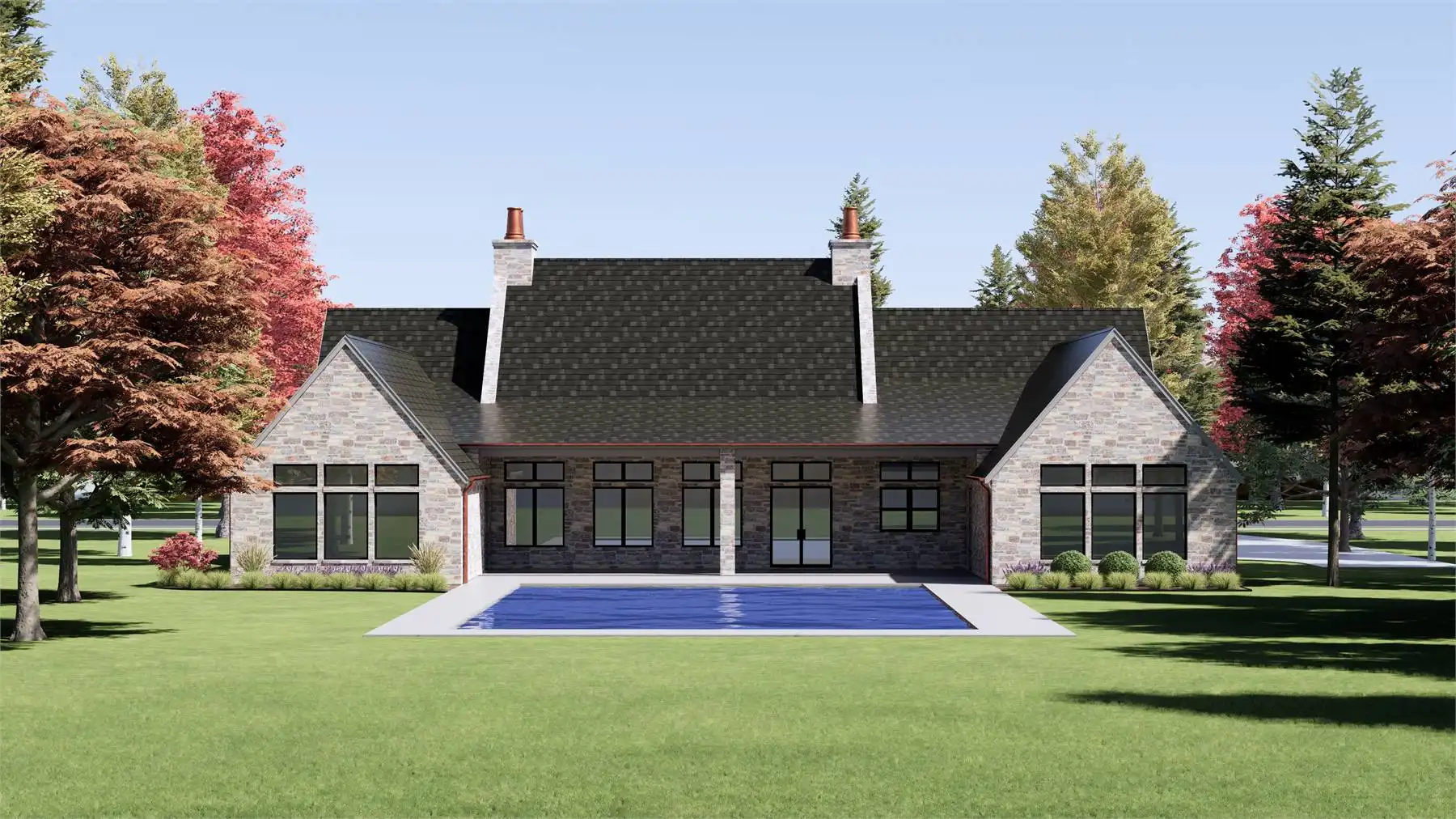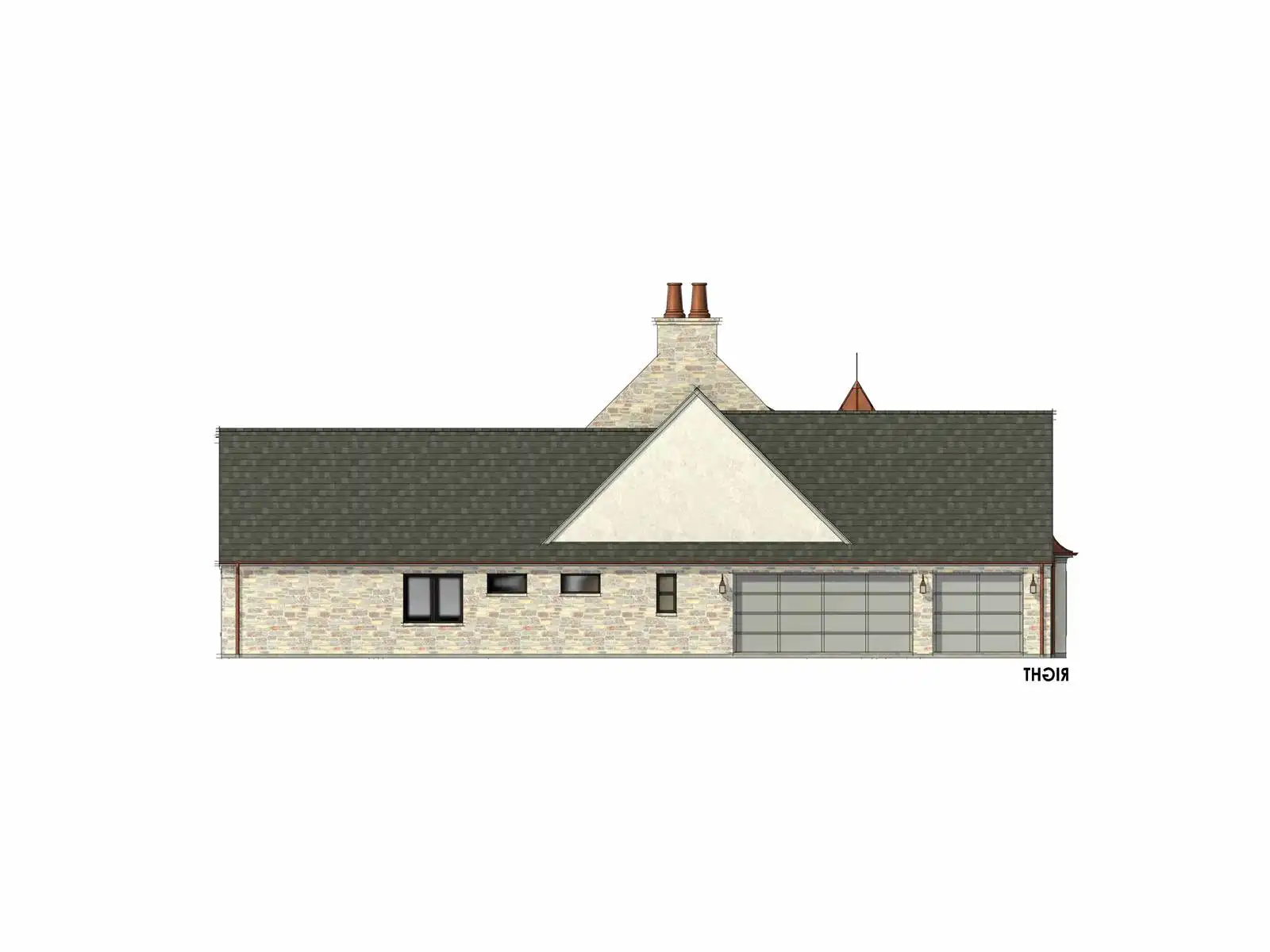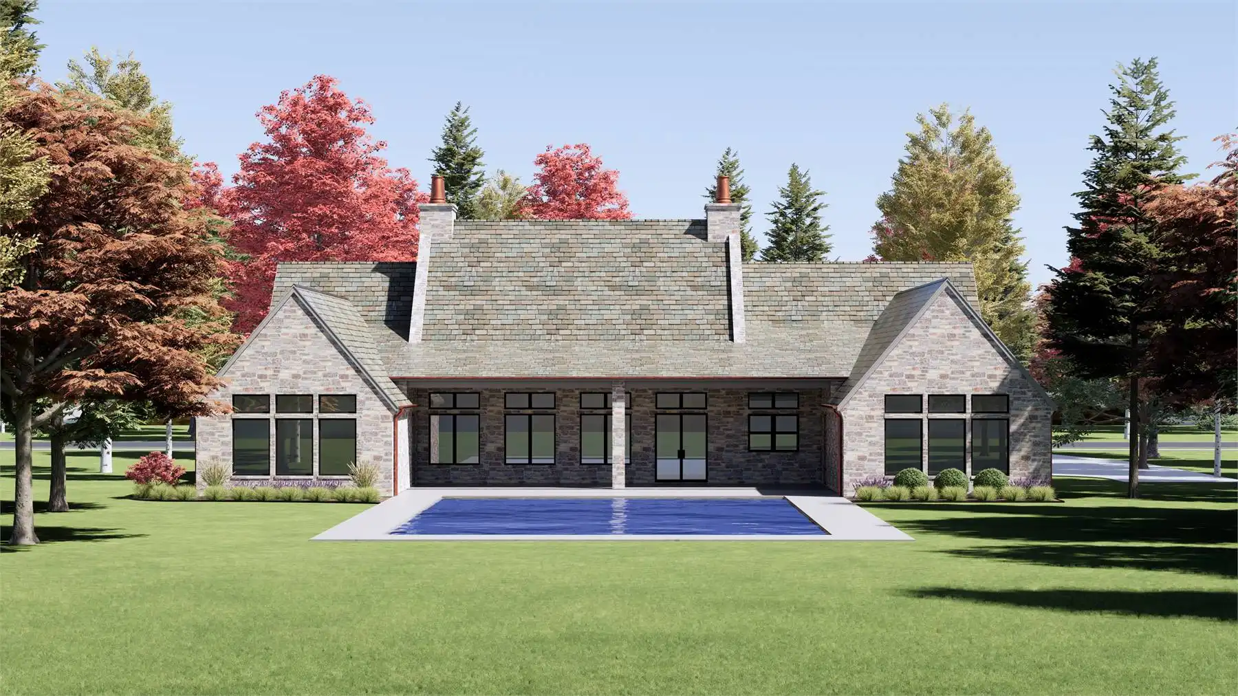 Stop and take a look at House Plan 6787 if you want a grand European ranch of French country inspiration! This 4,001-square-foot home boasts four bedrooms and four-and-a-half bathrooms across its spacious floor plan. The center of the layout is comprised of the office off the foyer and the open great room with a U-shaped island kitchen on one side that overlooks the vaulted dining and living areas. On one side, you'll find three bedroom suites and a vaulted game room. On the other, the primary suite has its privacy. It has a vaulted bedroom and five-piece bath, of course. All this comes wrapped up in beautiful old-world style including stone siding and copper roof highlights!
