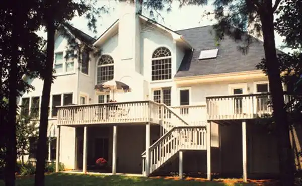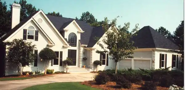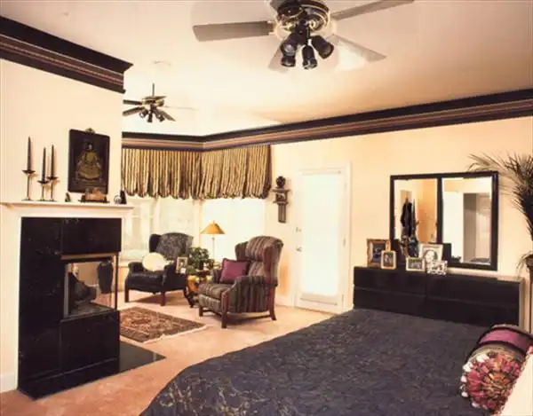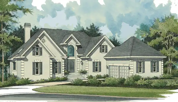 This European style home with its graceful lines features a dormered entry, flooding it with light from the full radius window above the front door. The balcony overlooks the two story living area with its dramatic Palladium windows mirroring the foyer entry.