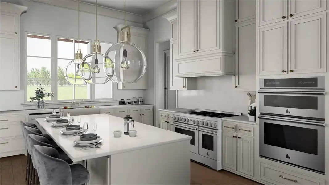 A stunning amount of style is present throughout this European plan. Modeled after the finest of French chateaus, this 4 bedroom, 3,273 square foot home is sure to impress. This is especially evident in the astounding master suite, a relaxing retreat which features a massive bath and dual walk-in closets. Check out just how big the walk-in closet for her is! You'll also enjoy this home's entertainment capabilities, as the large living room and kitchen join together before spilling out onto the outdoor living area, complete with a full grilling station and dining area! Notice the other great additions such as a private office and formal dining room, along with a side-entry 3-car garage, full of parking and storage options throughout.