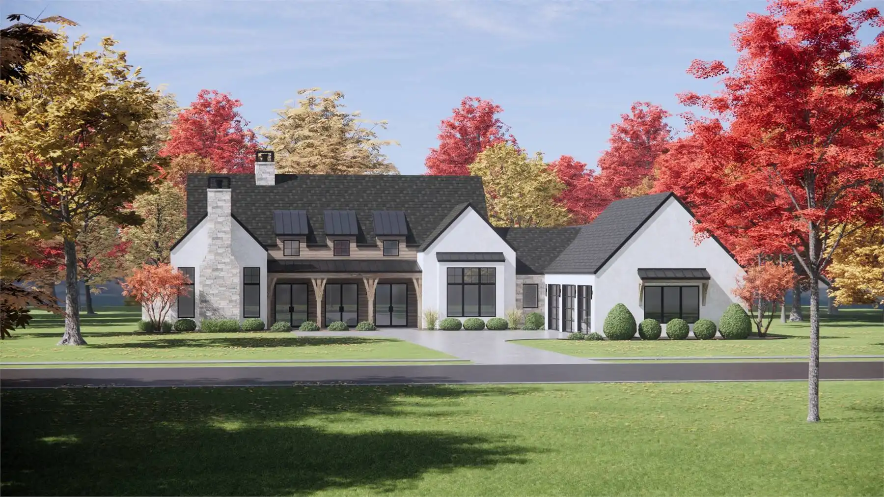 Thoughtfully designed for spacious living, this home features 3,872 square feet of heated space with 4 bedrooms and 4.5 baths. A vaulted foyer leads into the great room, where soaring ceilings and a fireplace create a dramatic yet comfortable gathering space. The kitchen is both functional and elegant, offering a large island, walk-in pantry, and butler’s pantry that support effortless entertaining. An open floor plan connects the main living areas while maintaining a natural flow throughout the home. The primary suite on the main level serves as a private retreat with vaulted ceilings, a walk-in closet, and a bath with a separate tub and shower. Additional highlights include a dedicated home office, rec room, mud room, and convenient first-floor laundry. With expansive covered porches at the front and rear, this home blends generous interior space with inviting outdoor living for a well-rounded lifestyle.