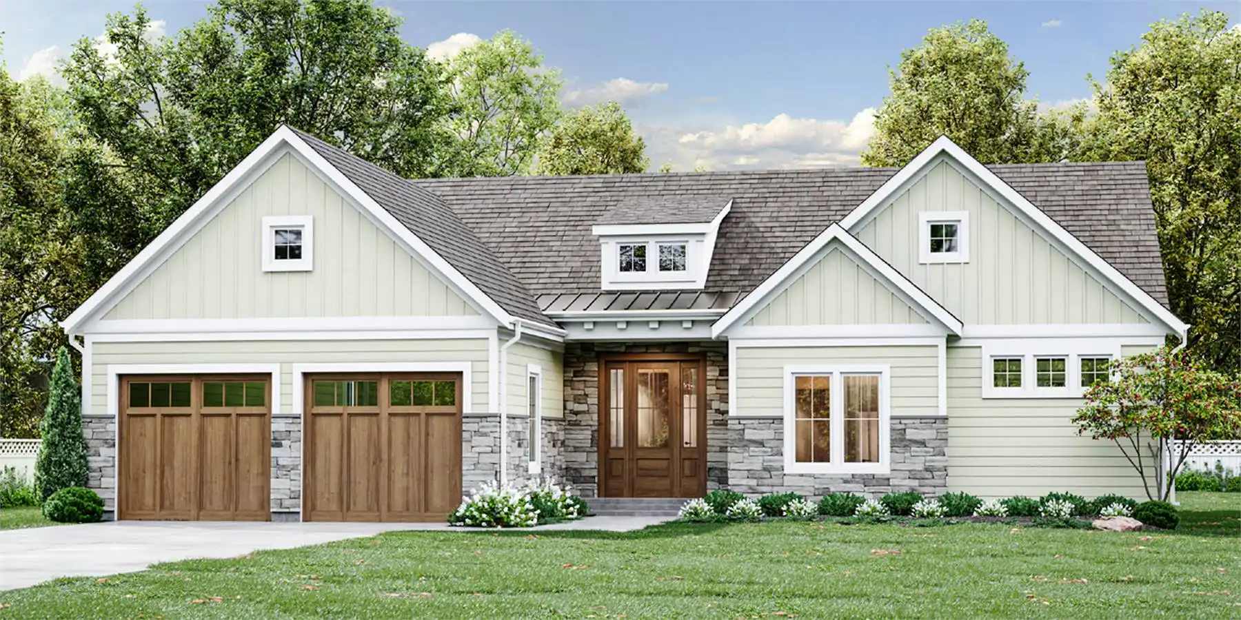 Check out House Plan 6885 if you need a great one-story home that won't break the bank! Behind that lovely Craftsman ranch curb appeal, you'll find 1,885 square feet, three bedrooms, and two bathrooms. The layout includes a foyer and the garage in front while the open-concept living spaces spread out across the back, and the bedrooms are split into opposite hallways. The four-piece primary suite has its privacy behind the garage while the other bedrooms are off to the other side in the front hallway. A mudroom, laundry room, and covered back porch round out this home!
