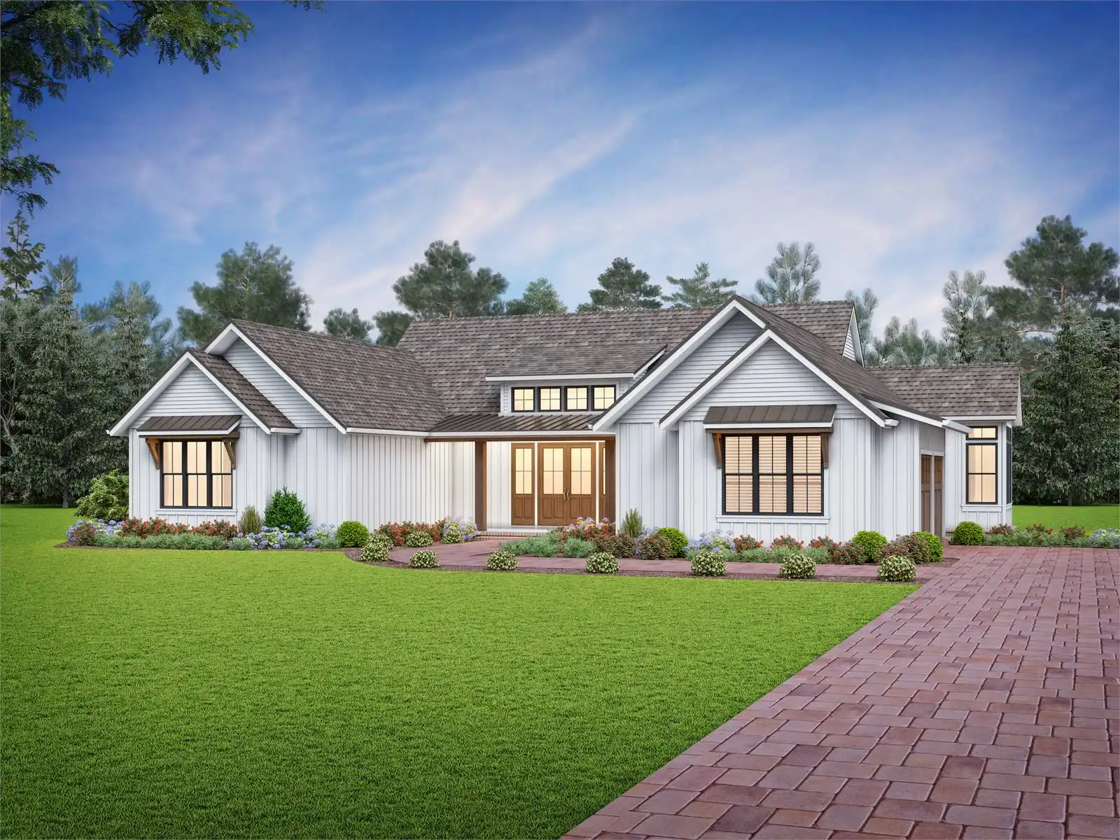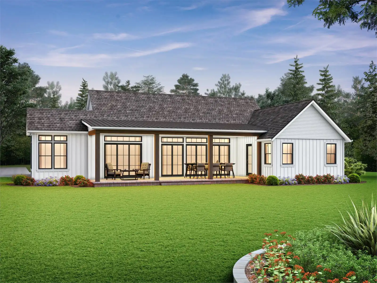 House Plan 6894 offers a wonderful living experience with 2,662 square feet, three bedrooms, and three-and-a-half bathrooms on one level. First, the common areas get plenty of natural light through the patio doors and transom windows across the back wall, and there's even a separate sunroom, if you'd like to take in some rays privately. You'll enjoy the convenience of the mudroom/pantry that connects the garage to the island kitchen, and of the centrally located laundry room accessible through the master suite's walk-in closet and the front hallway where the other two bedroom suites are placed. The master suite boasts a five-piece bath while the other bedrooms have ample three-piece ensuites. House Plan 6894 makes an amazing home for today's families looking for a touch of luxury in a modest size!