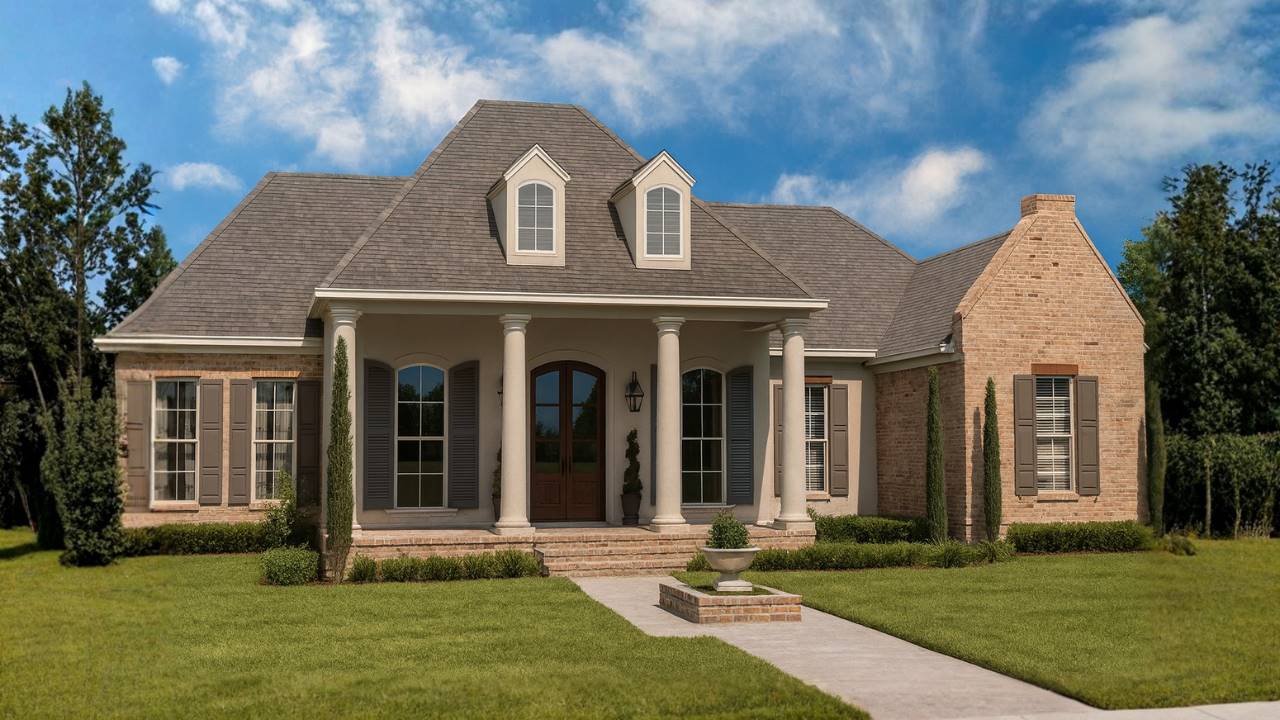 Arches and shutters lend a French country feel to this stately house plan, with four bedrooms, three full baths, two half-baths and a luxury 3,001 square feet of living area. Welcome guests on the front porch of the home plan, and then show them into the spacious family room, to relax in front of a crackling fire. Expand any gathering to the sizable rear verandah with its handy summer kitchen. The wide-open main kitchen offers island snack space for four. Note the convenient pantry and the adjacent dining room. Retire to the peaceful master suite at day's end. The private bath boasts a focal-point tub, a walk-through shower and two vanities. Note the walk-in closet and the important safe room for storm protection. Two more bedrooms have personal baths. A workout room, which could accommodate overnight guests, lies near a pet domain. Our customers love the large workshop at the rear of the home design.