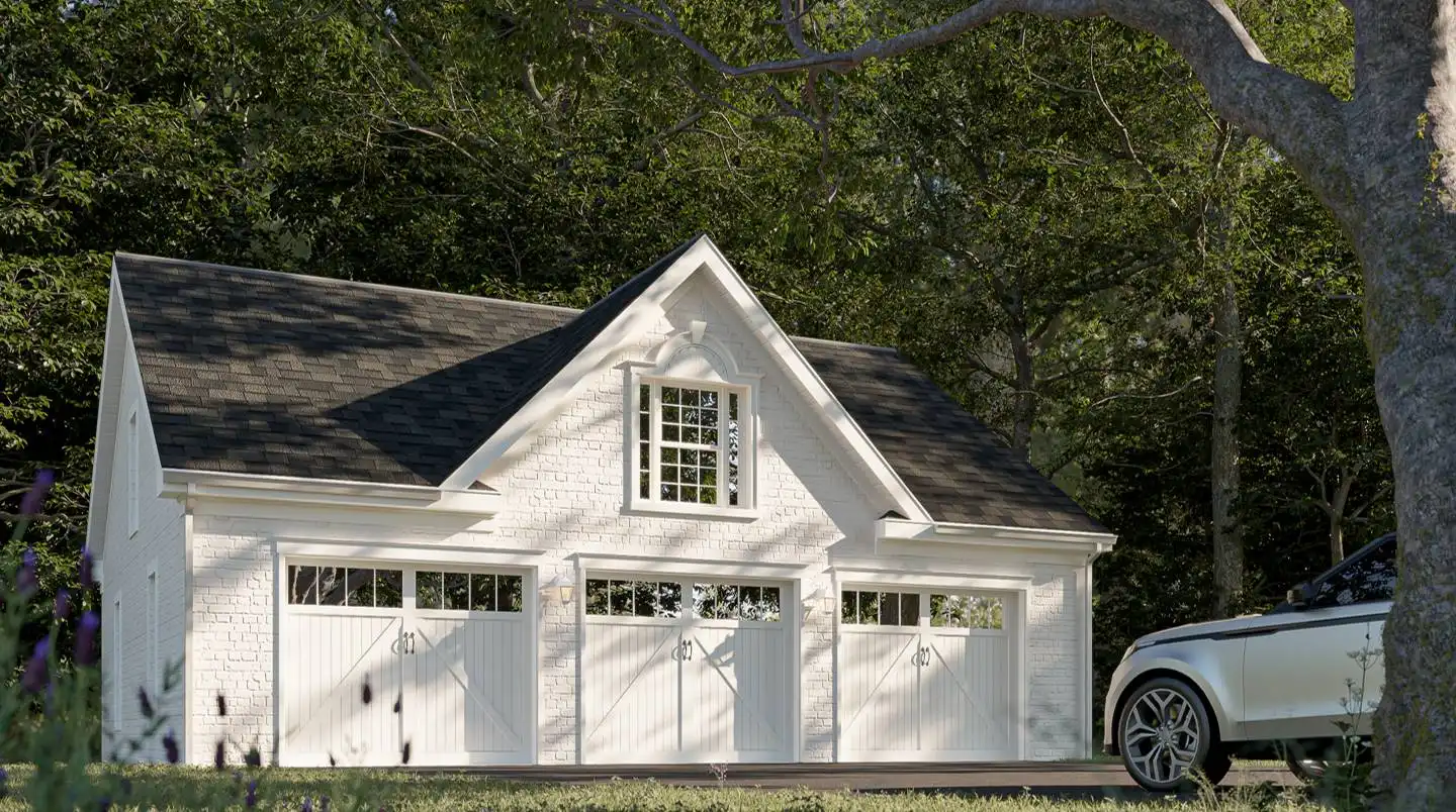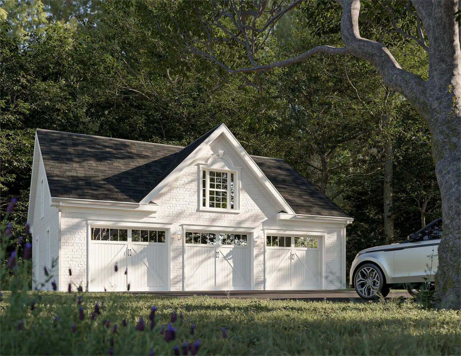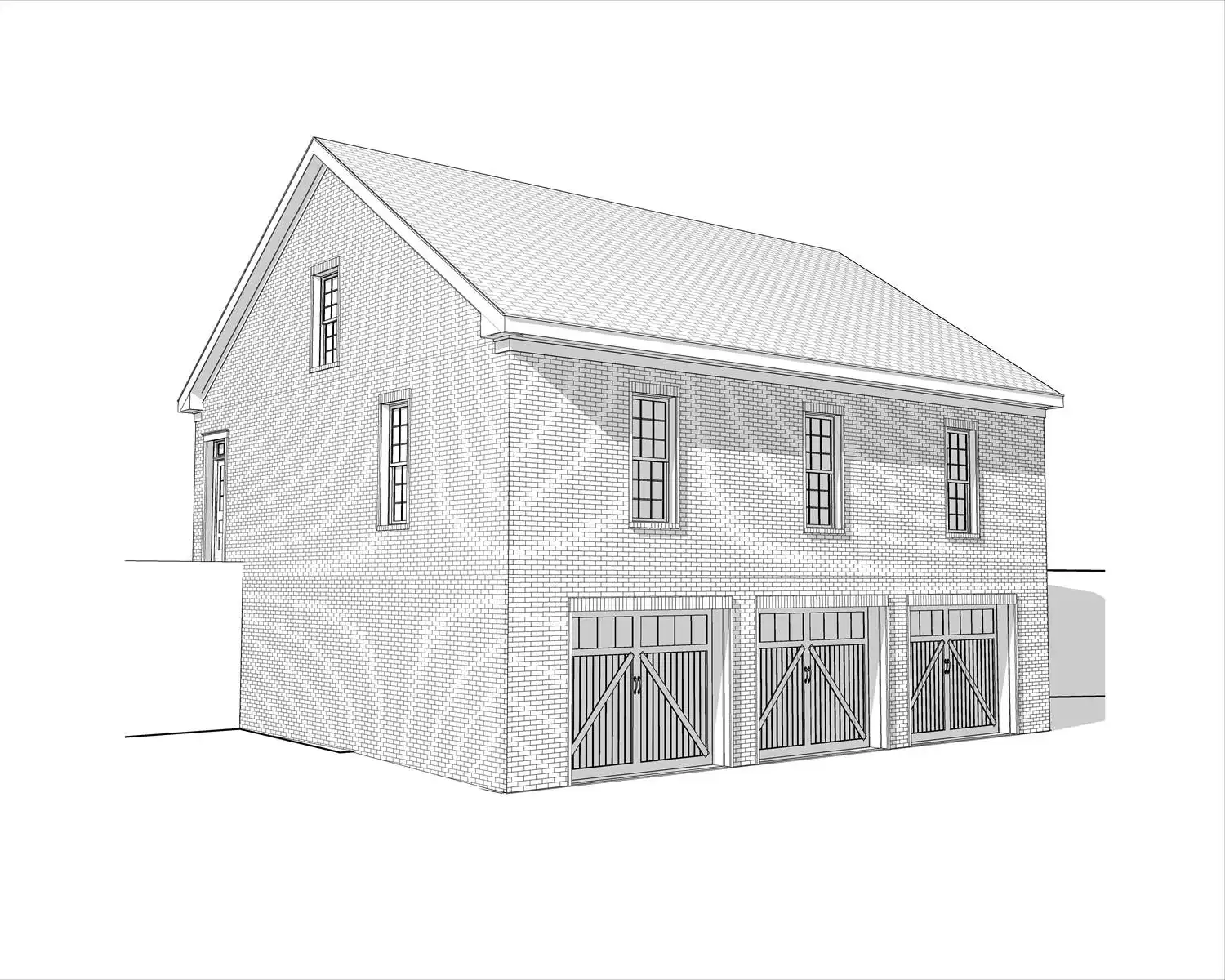 This garage offers awesome parking potential in a compact shape! It has parking for six in total, with three main-level front-entry bays and three rear-entry bays in the lower level. So, if you need a garage for a sloped lot, look no further!