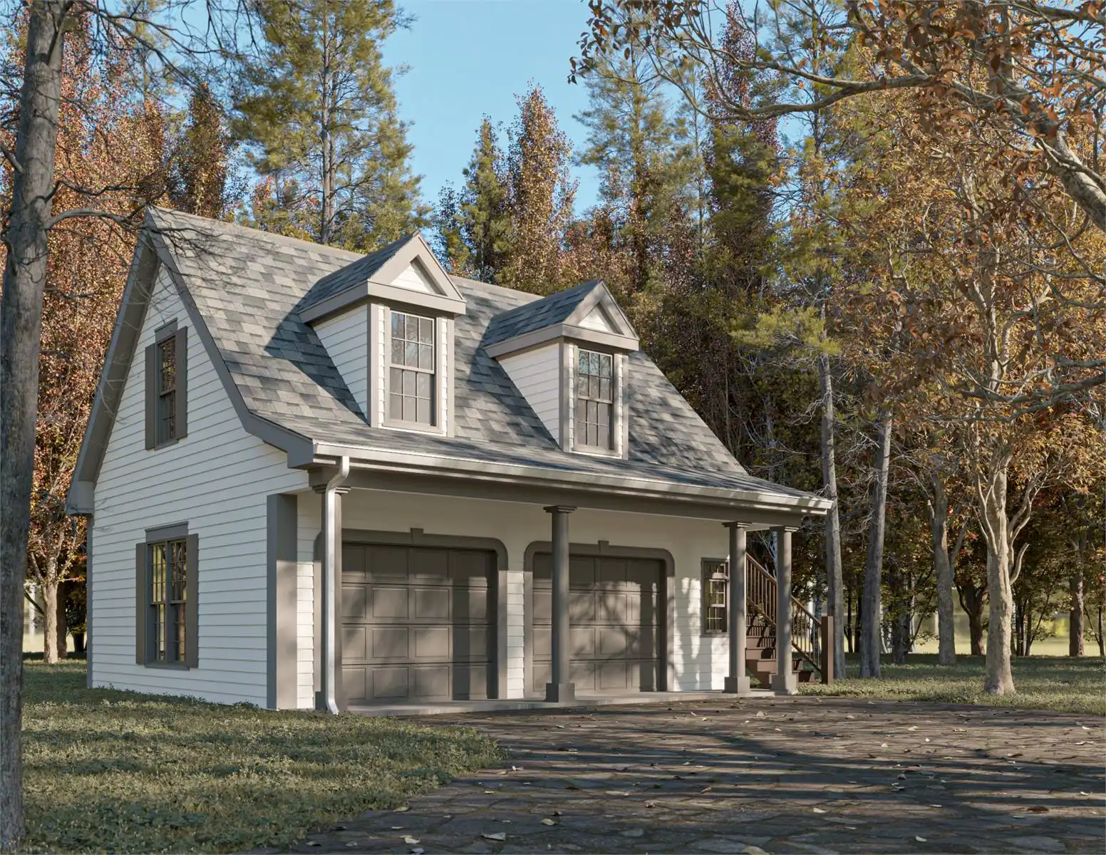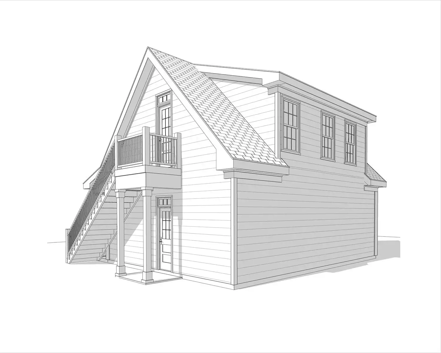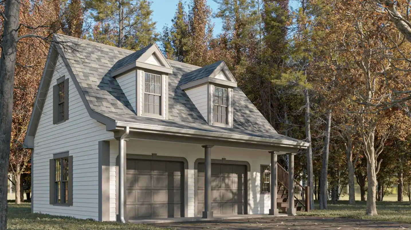 Need a garage with some extra living space, too? Take a look at House Plan 6946! This design has a two-car garage with a sink on the main level and a 528-square-foot apartment above, complete with open living, a kitchenette, and a bedroom suite. It's perfect for an ADU you can rent out, because the staircase is on the exterior!