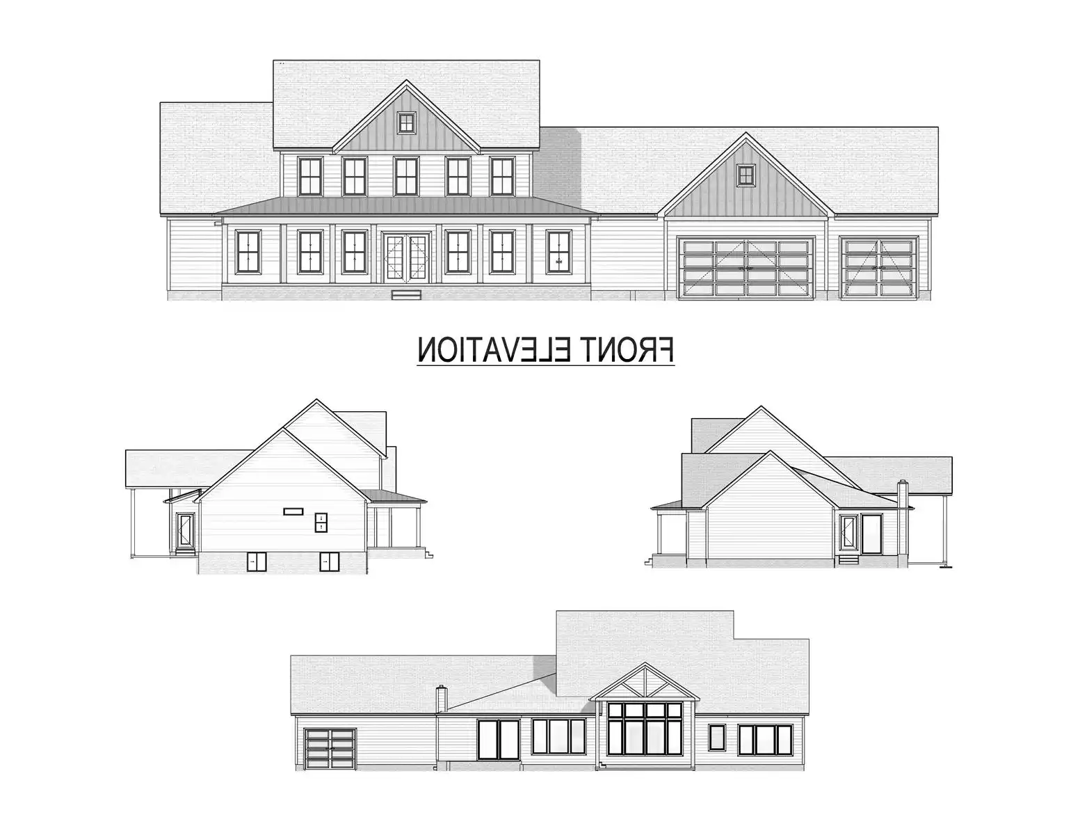 Reverse house plans with readable text and dimensions