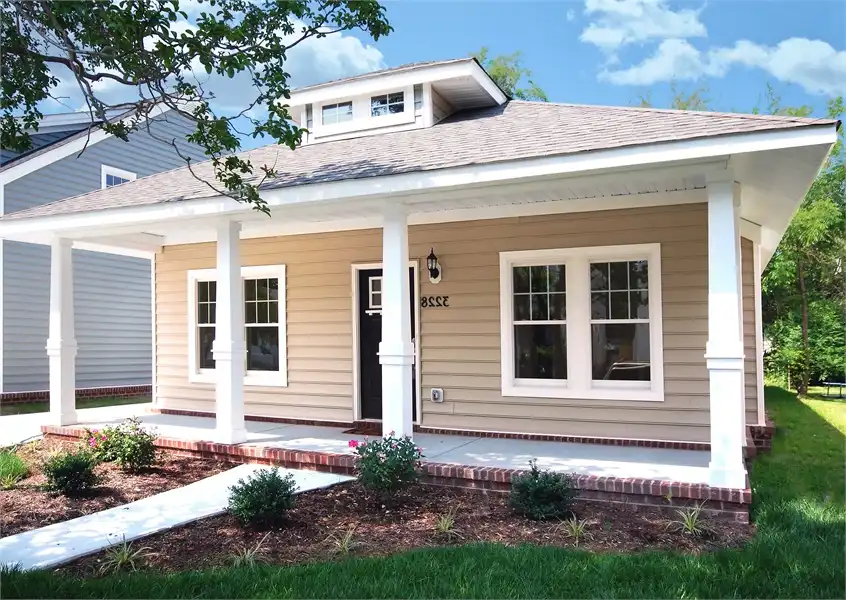 Welcome to a cozy 3 bedroom, 2 1/2 bath bungalow which features 1,538 square feet , a columned front porch and symmetrical windows on either side of the entry. The the large, open concept family room, dining room and kitchen with peninsula provides plenty of room for the entire family. Imagine snacks and homework being done at the kitchen counter, family and friends gathering at the dining room table for sumptuous feasts and holidays and fun family game nights being held in the large family room. Off the kitchen you'll find the 1/2 bath and mud/laundry room which leads to the rear stoop taking you outside. The hallway off the family room leads to the large secondary bedrooms as well as the master suite which includes a large walk in closet and ensuite bath. This home provides lots of privacy and room to grow.