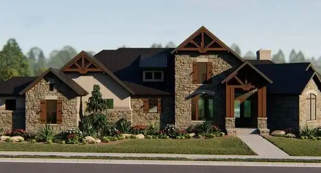 House Plan 6978 is a luxury Tuscan residence designed for refined indoor-outdoor living. The foyer leads into a spectacular cathedral-ceiling great room, framed by stone and beams, and open to a curved kitchen layout that encourages gathering. The primary bedroom suite sits in its own wing for privacy and includes a spacious bath and dressing area. Bedrooms 3 and 4 share a Jack-and-Jill layout, while a private guest suite near the front of the home enhances flexibility. Outdoor living shines with multiple covered patios, a grill zone, fire pit seating, and a layout tailored for a pool courtyard. The second floor provides a play room, exercise room, powder room, and walk-in storage. With 4 garage bays and a thoughtful mudroom drop zone, this home blends Tuscan charm with modern function.