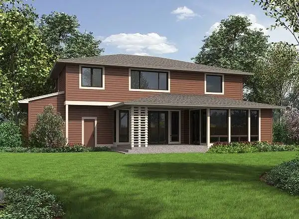 House Plan 6986 is an amazing contemporary home with room for the whole family! It offers 3,714 square feet with five bedrooms, three-and-a-half bathrooms, and plenty of other spaces to enjoy. The main level features a den off the foyer, a guest bedroom suite off the mudroom, and wide-open living with an island kitchen overlooking the great room and dining area. The second story hosts the primary bedroom suite, three more bedrooms, a hall bath, the laundry, and a bonus room. Worried about parking? That may look like a two-car garage, but it actually parks four in a tandem layout. What a thoughtful design for families looking for more from their homes!