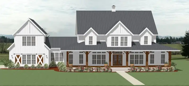 Combining country charm and modern amenities, this large farmhouse is the perfect family home. The sprawling covered porches create a welcoming entrance into the foyer that’s flanked by a private study. The open and thoughtful floor plan includes a large vaulted family room that will be a favorite gathering space with a cozy fireplace and French doors leading out to the porch. A large country kitchen offers a large island a cooktop range and seating for six, a sunny sink area overlooking the back yard, plenty of cabinets and counter space, double ovens, a walk in pantry and extra storage hidden behind two stylish sliding barn doors. A formal dining room is provided, perfect for entertaining. There are two main level family bedrooms, each with walk in closets and sharing a hall bath. The main level master enjoys porch access as well as a soaking tub with a separate shower, dual vanities and an oversized walk in closet. There’s a pet kennel/grooming station leading out into the 3-car garage which offers a shop, garden storage and stairs up to 2nd level storage or future rec room with a half bath. The second level has a horse shoe layout overlooking the family room below. Two more family bedrooms with walk in closets, two full baths, extra storage and a loft/media room are included.