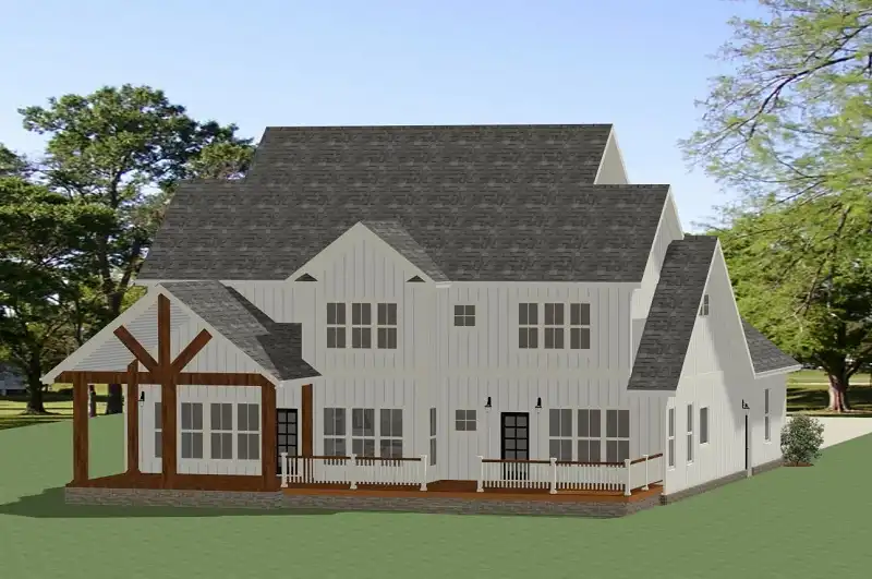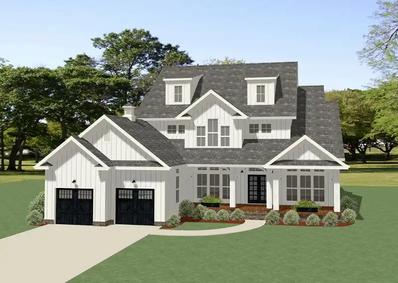 A columned porch is a welcoming entry into this stunning farmhouse. The vaulted family room is large enough to accommodate gatherings of any size and the vaulted porch is the perfect for place for outdoor entertaining. The open floor plan ties the family room into the well-equipped kitchen with a sunny breakfast nook, large island with seating for four, ample cabinets and counter space, a large walk-in pantry along with a butler’s pantry that leads into the formal dining. The 2-car garage leads into a efficient laundry/mudroom with lockers, cabinets, counter space and a sink. The main level master suite provides a tranquil retreat with a soaking tub, separate shower, dual vanities and a large walk in closet. The second floor boasts two family bedrooms, each with a walk in closet, two full baths and an optional bonus room with a convenient espace.