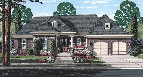 This comfortable one-story home is reminiscent of an English cottage. An island with seating anchors the kitchen and the dining area is nestled in an angular room with full outdoor views. A covered rear porch creates a pleasant outdoor living space and a full basement offers room for expansion.
