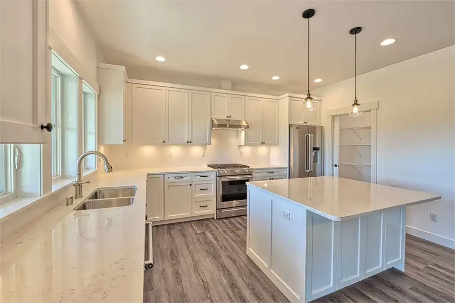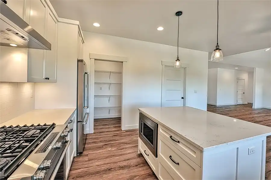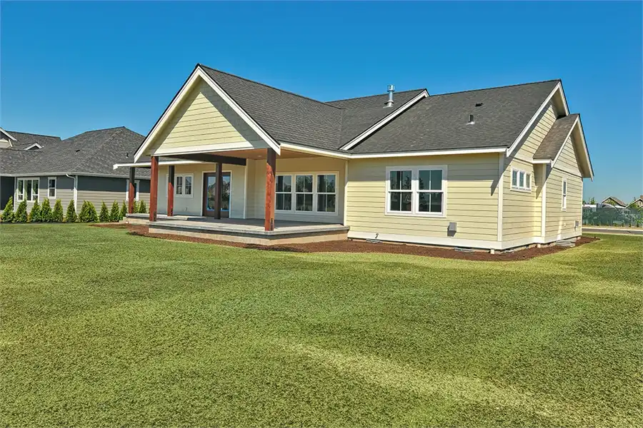 This cottage style plan. Featuring a ranch style floor layout, this home offers 2,245 square feet along with 3 bedrooms and 2 bathrooms. Within the single story of this plan is a 2-car garage and storage room, a sizable master suite, and a large gourmet kitchen and island, with plenty of cabinet space and the open concept that is perfect for entertaining. A great room opens on to the covered patio area, while the left hand side of the plan houses 2 more bedrooms and a bathroom. As an added addition, this plan has the ability to add a bonus room above the garage to give this home even more space.