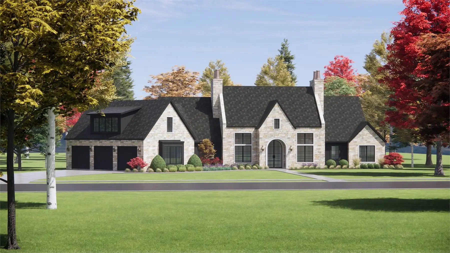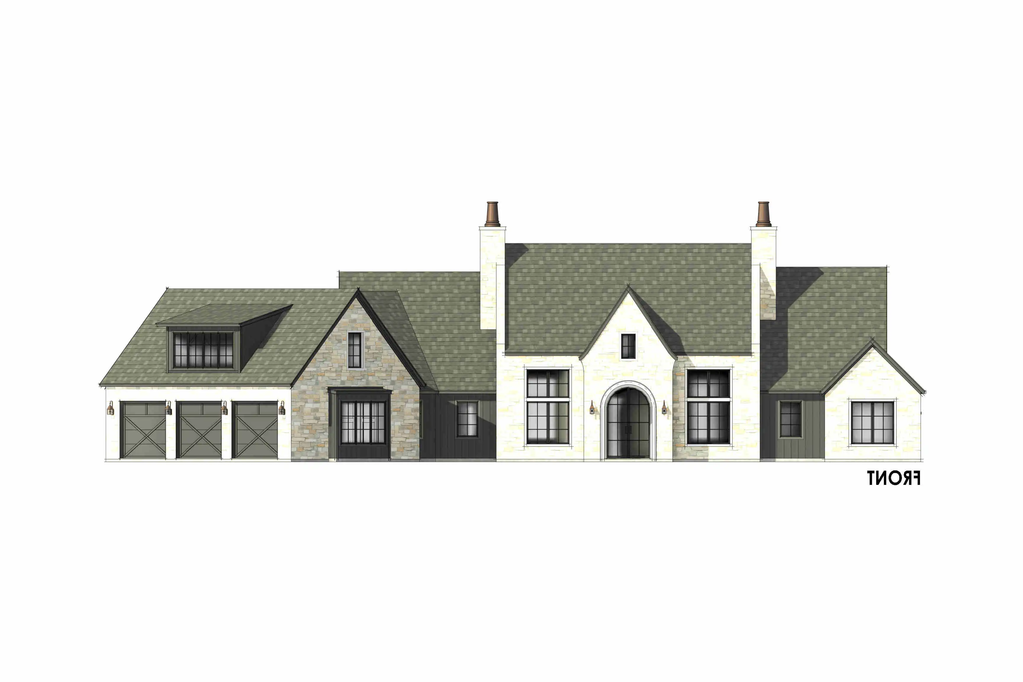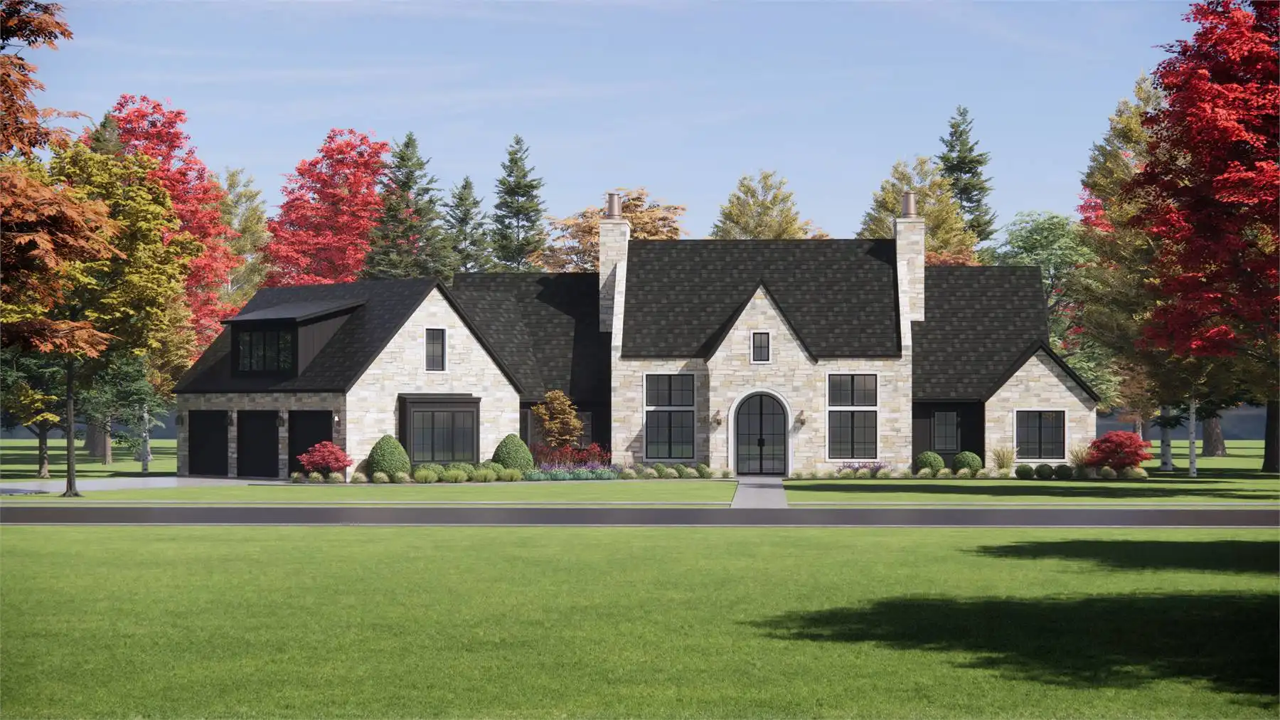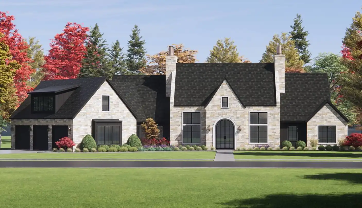 House Plan 3,817 offers plenty of European-inspired curb appeal and beautiful spaces that are sure to impress inside as well! This 3,817-square-foot design includes spacious open-concept living, four split bedroom suites, and additional rooms that increase functionality. First up, there's an office off the foyer. The island kitchen overlooks the dining and living areas for seamless connection, and it has a large walk-in pantry for storage. The hallway behind the kitchen includes the entrance from the three-car garage, the laundry room, the vaulted five-piece primary suite, and the stairs up to the bonus. Three more bedroom suites and a game room/gym round out the opposite side of the house, and there's a covered porch in back for anybody who wants to spend more time in the fresh air!