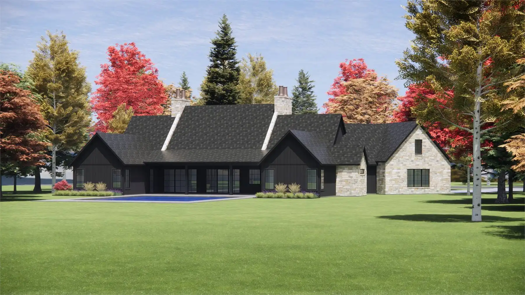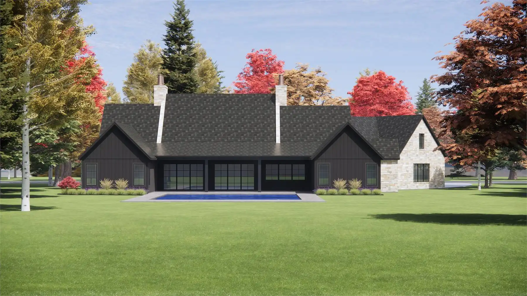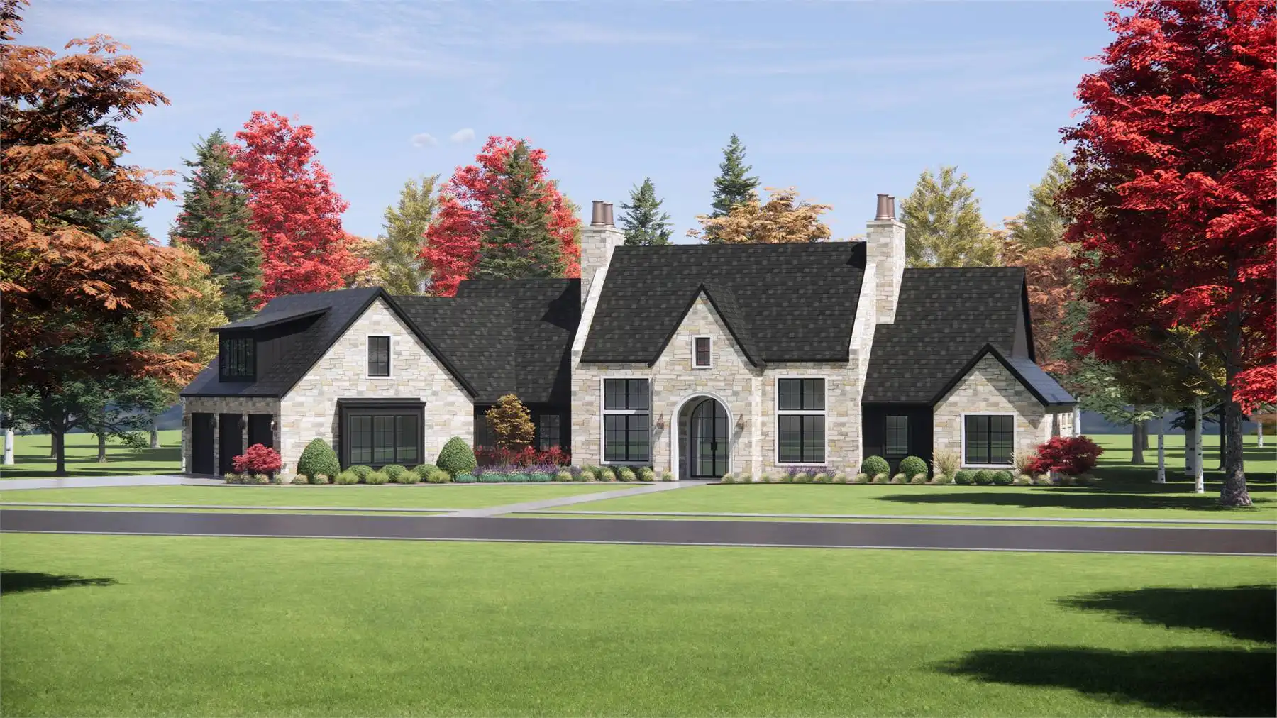 House Plan 3,817 offers plenty of European-inspired curb appeal and beautiful spaces that are sure to impress inside as well! This 3,817-square-foot design includes spacious open-concept living, four split bedroom suites, and additional rooms that increase functionality. First up, there's an office off the foyer. The island kitchen overlooks the dining and living areas for seamless connection, and it has a large walk-in pantry for storage. The hallway behind the kitchen includes the entrance from the three-car garage, the laundry room, the vaulted five-piece primary suite, and the stairs up to the bonus. Three more bedroom suites and a game room/gym round out the opposite side of the house, and there's a covered porch in back for anybody who wants to spend more time in the fresh air!