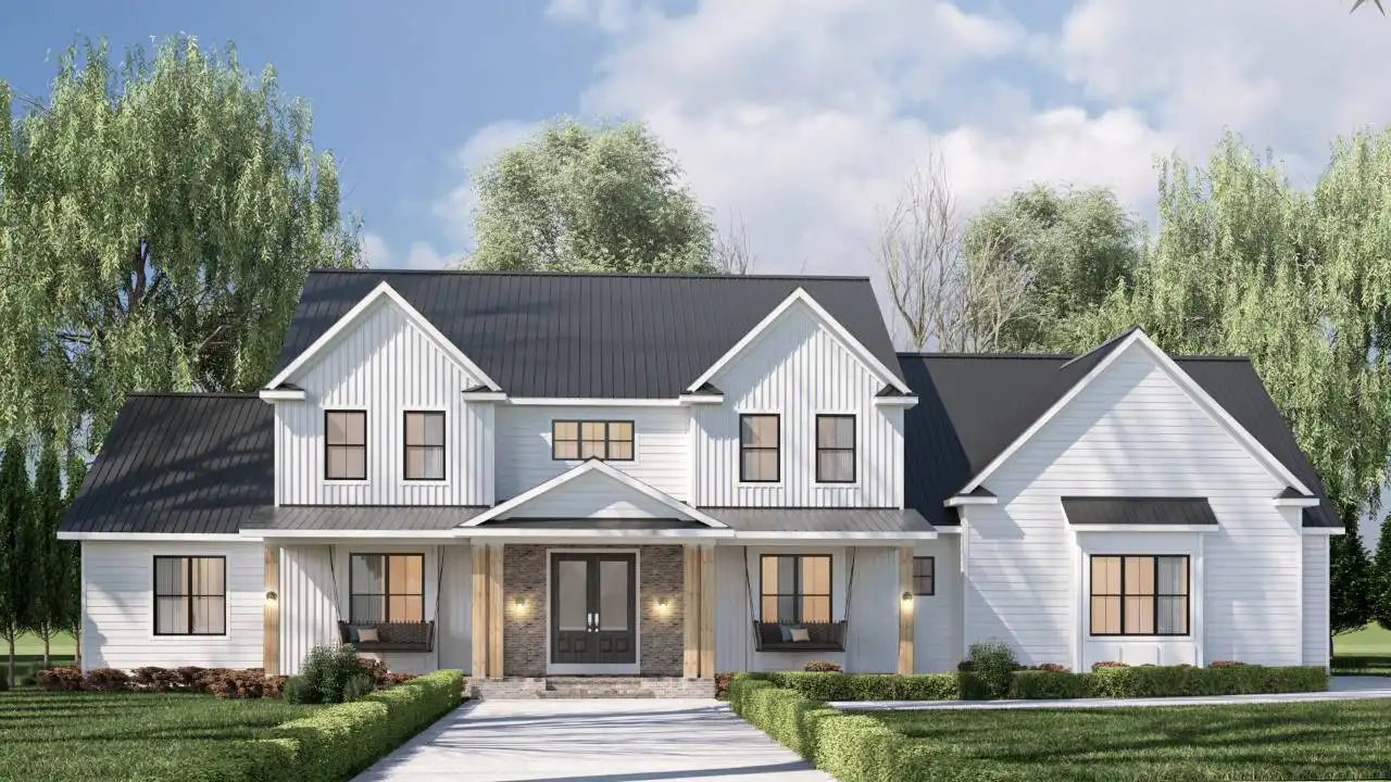 Have a growing family and need a house that can handle them? Give House Plan 7127 a try! This 3,776-square-foot farmhouse has a ton for a family to appreciate across two stories. The main level includes the open-concept living area, with the island kitchen on one side and the great room on the other, as well as the five-piece primary bedroom suite, a study, a huge laundry room, and the mudroom coming in from the three-car garage that features a full bath. Upstairs, you'll find a three-piece bedroom suite, two more bedrooms that share a Jack-and-Jill bath, a loft/playroom, and a large storage room. This home's layout gives every member of the family plenty of space, and you'll love the convenience of where the laundry room and pantry are placed--perfect for corralling dirty clothes and offloading groceries as soon as you get home!